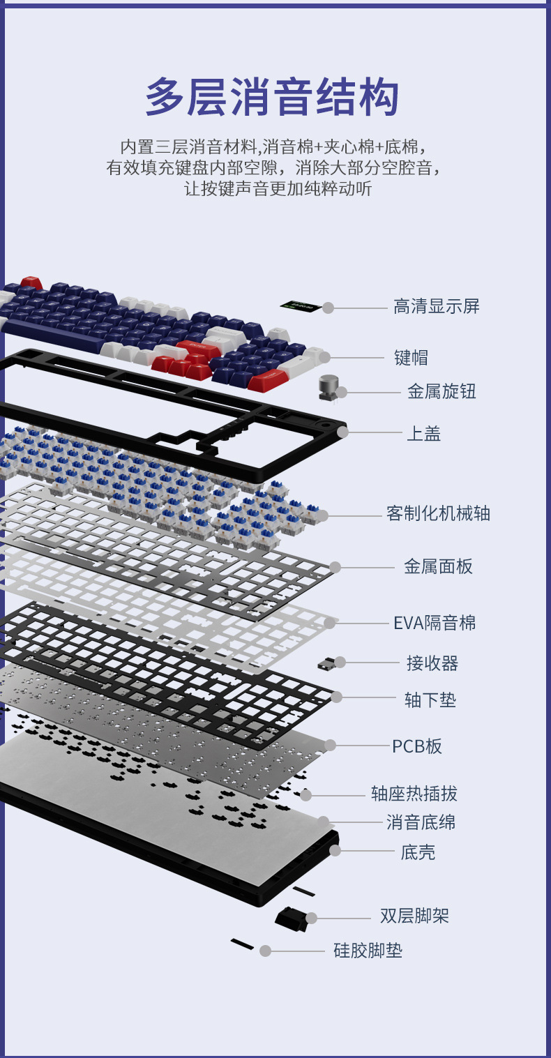 98 키 무선 블루투스 유선 3 모드 기계식 키보드 DIY 사용자 정의 키트 RGB 핫 스왑 가능 디스플레이 노브스토어 가기