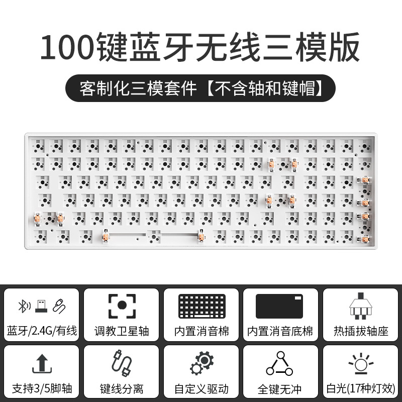 • 100 키 블랙 키트-3 가지 모드-흰색 라이트 액슬 시트 (샤프트 및 키 캡 없음)