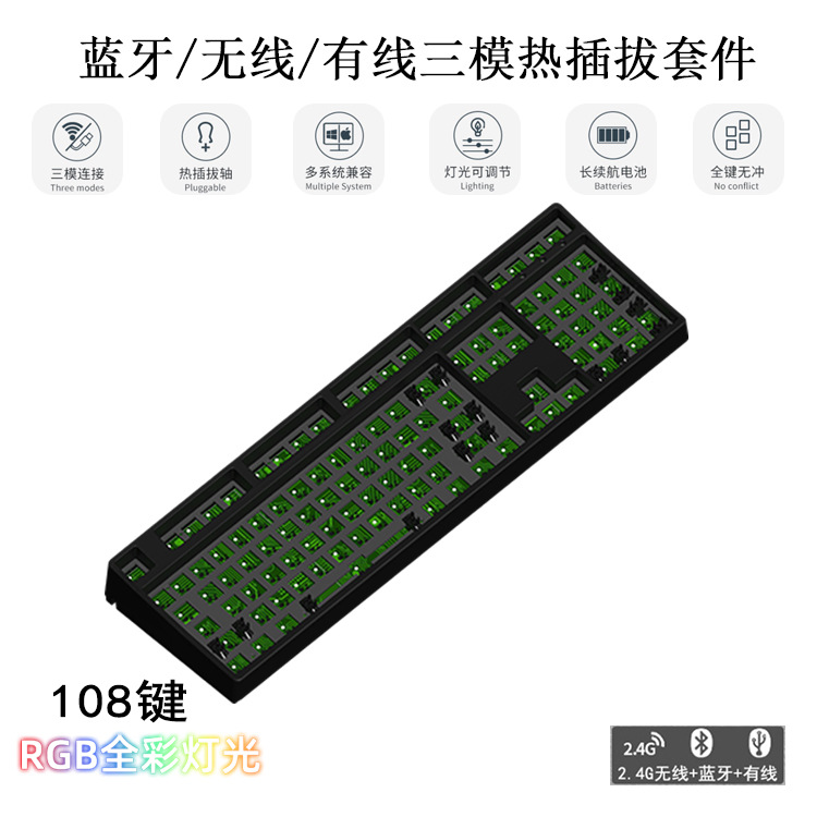 • 108 키 블랙 키트-3 가지 모드-RGB 샤프트 시트 (샤프트 및 키 캡 없음)