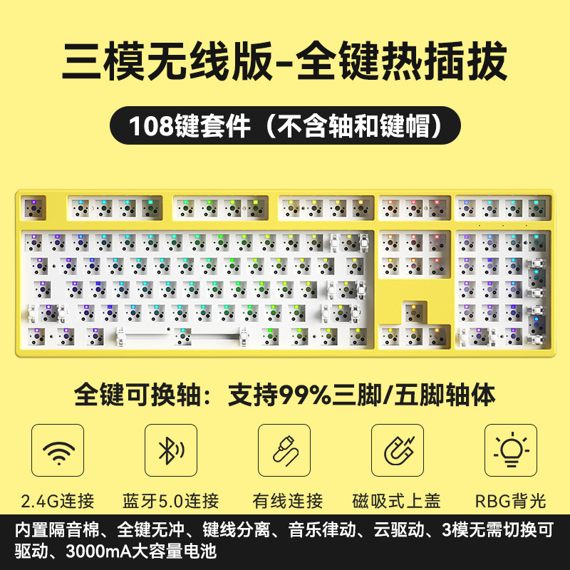 • 108 키 옐로우 키트-세 가지 모드-RGB 샤프트 시트 (샤프트 및 키 캡 제외)