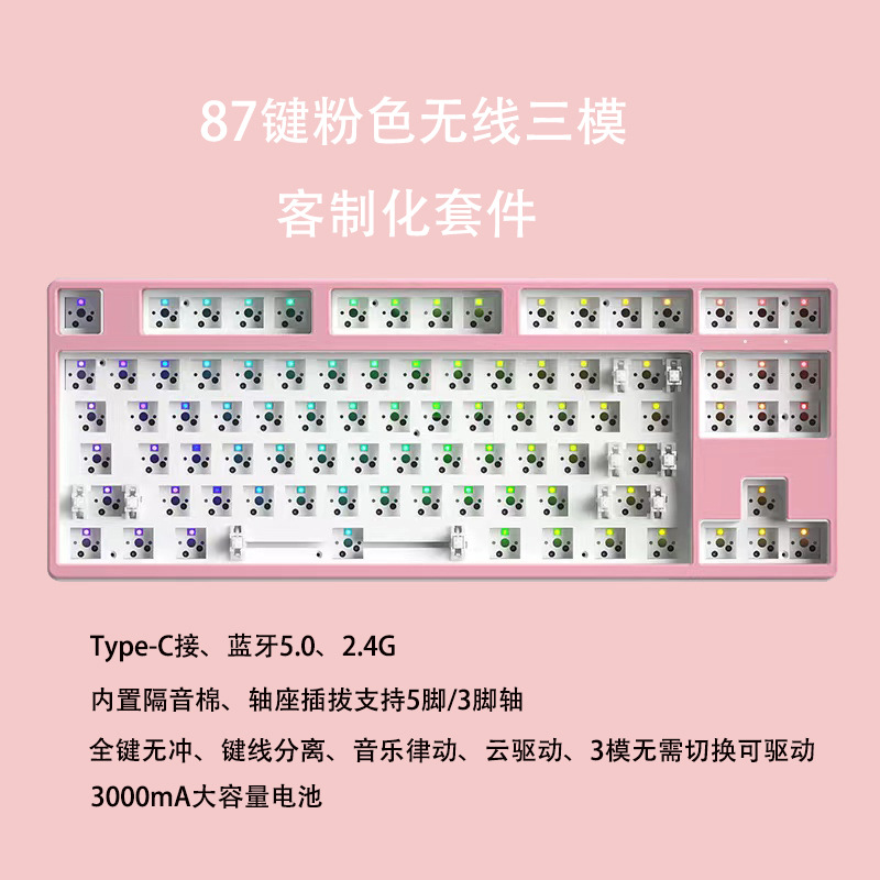 • 87 키 핑크 키트-3 가지 모드-RGB 샤프트 시트 (샤프트 및 키 캡 제외)