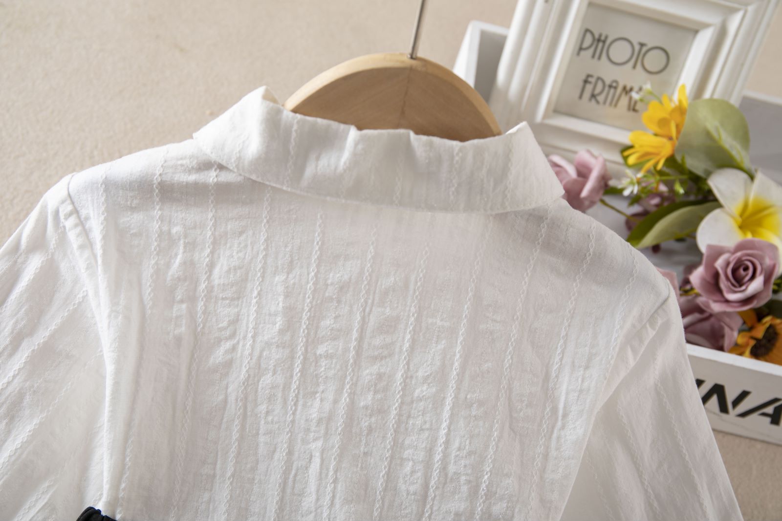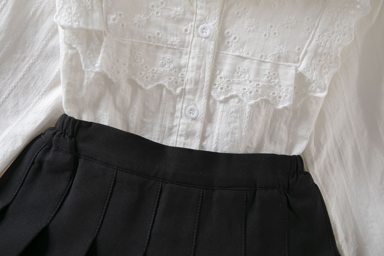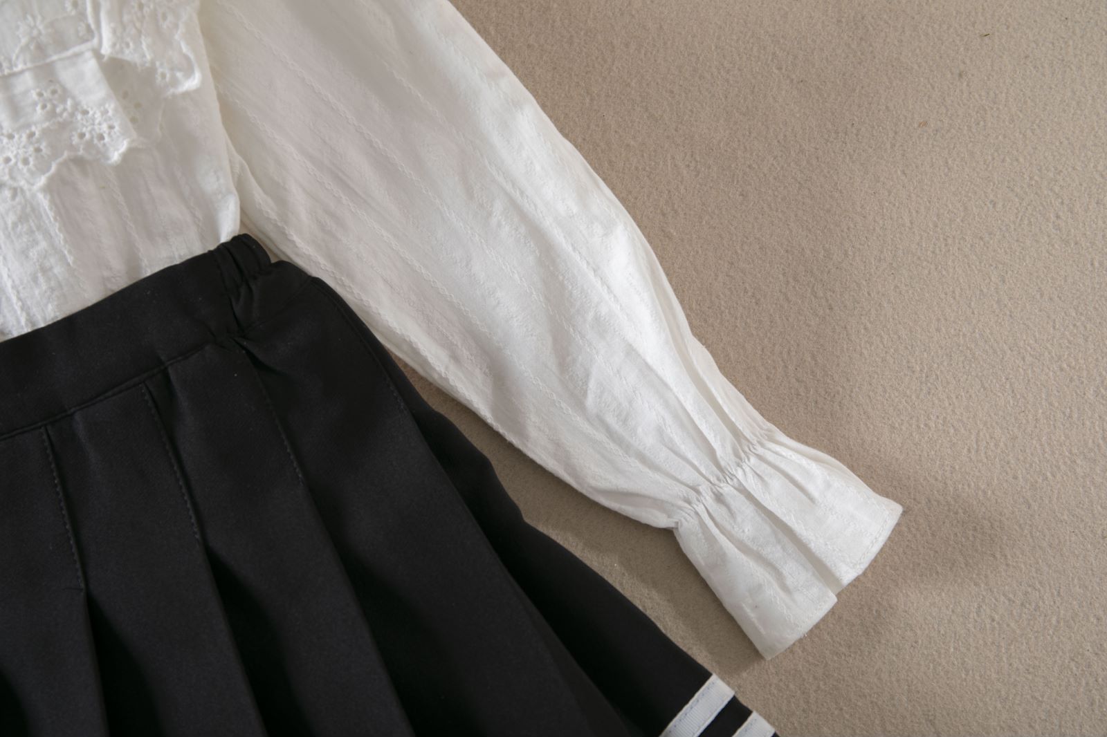 여아 순면 긴팔 셔츠 봄과 가을 대학 스타일 퍼포먼스 화이트 셔츠 먼지 웨스턴 스타일 반팔 가을
