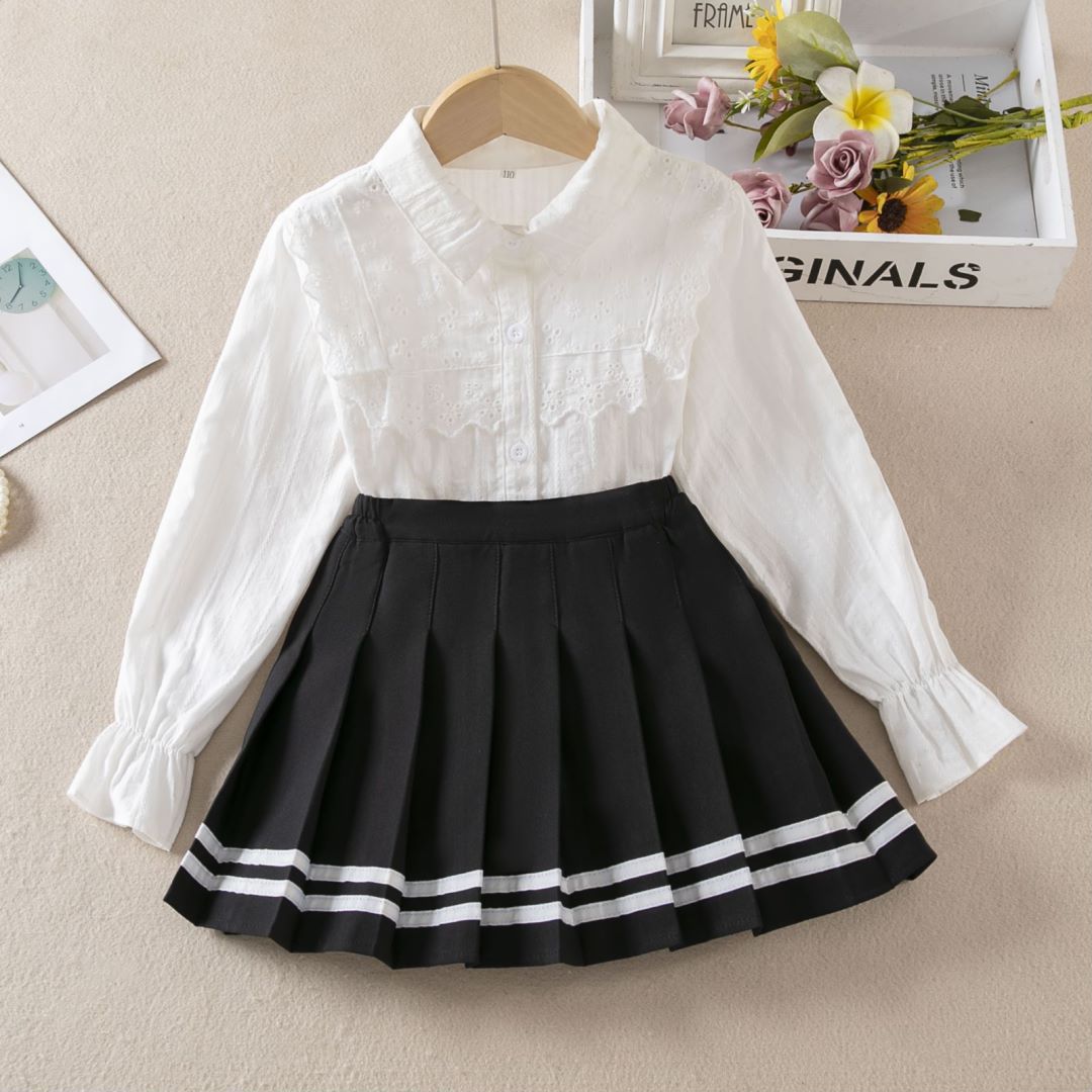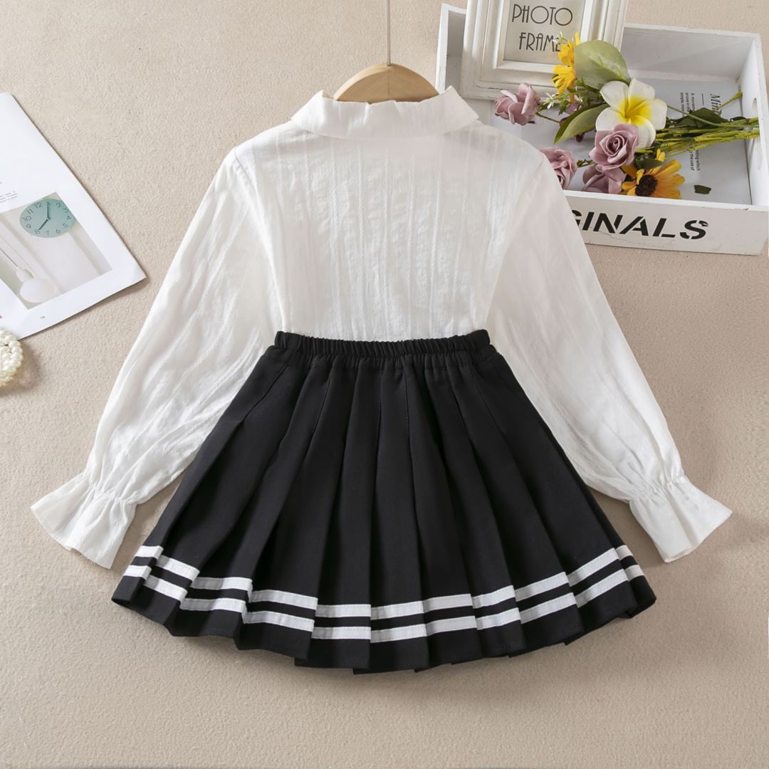 • 021 긴 소매 + 두 막대 검은 주름 치마
