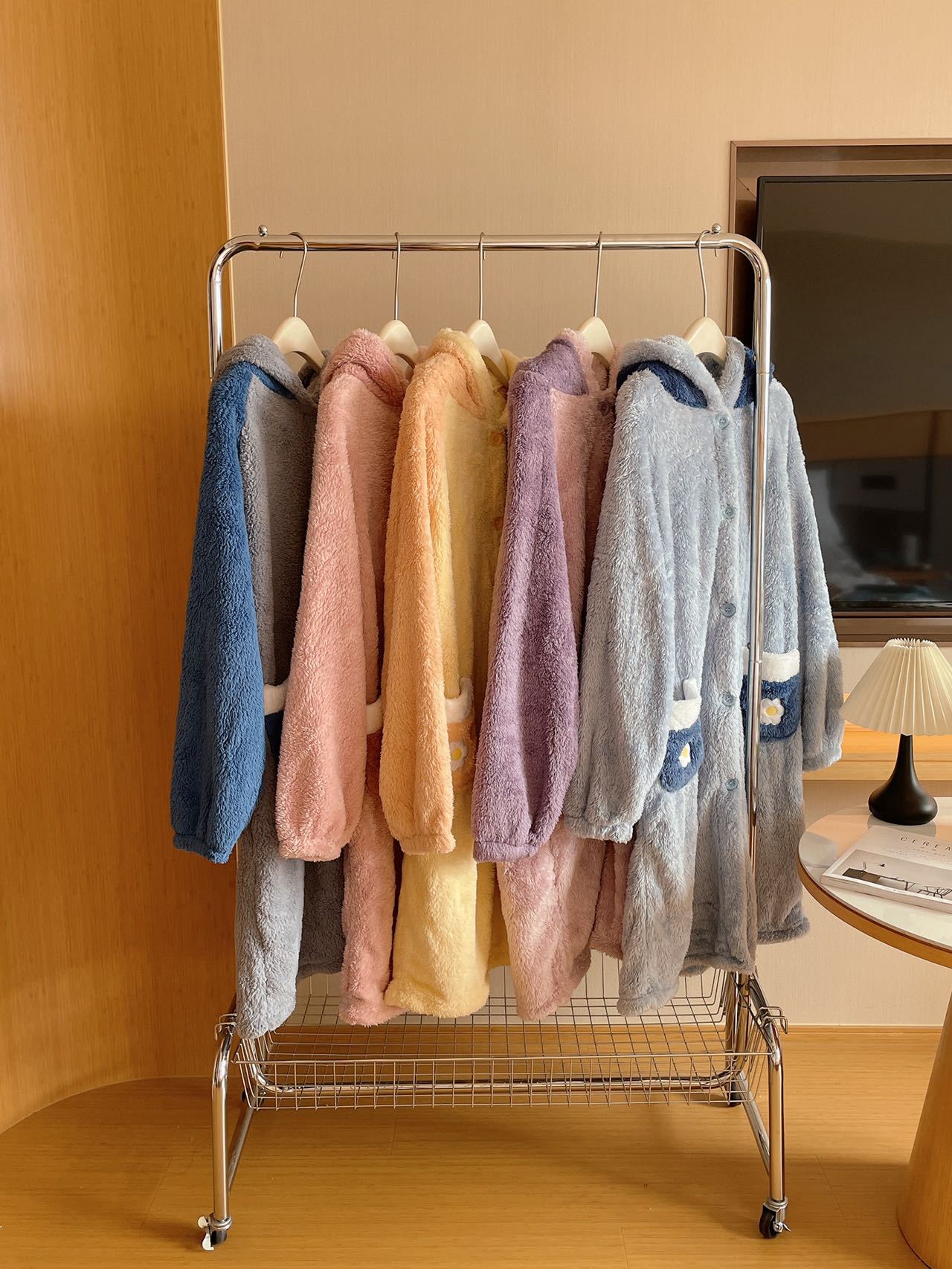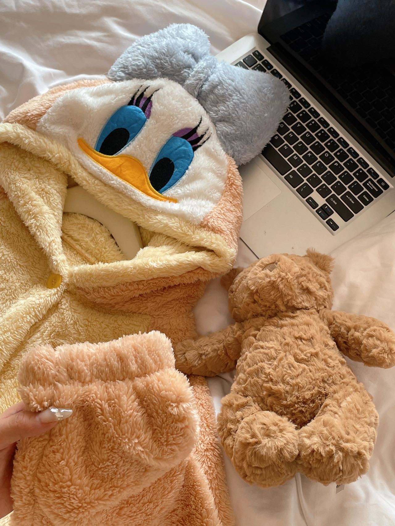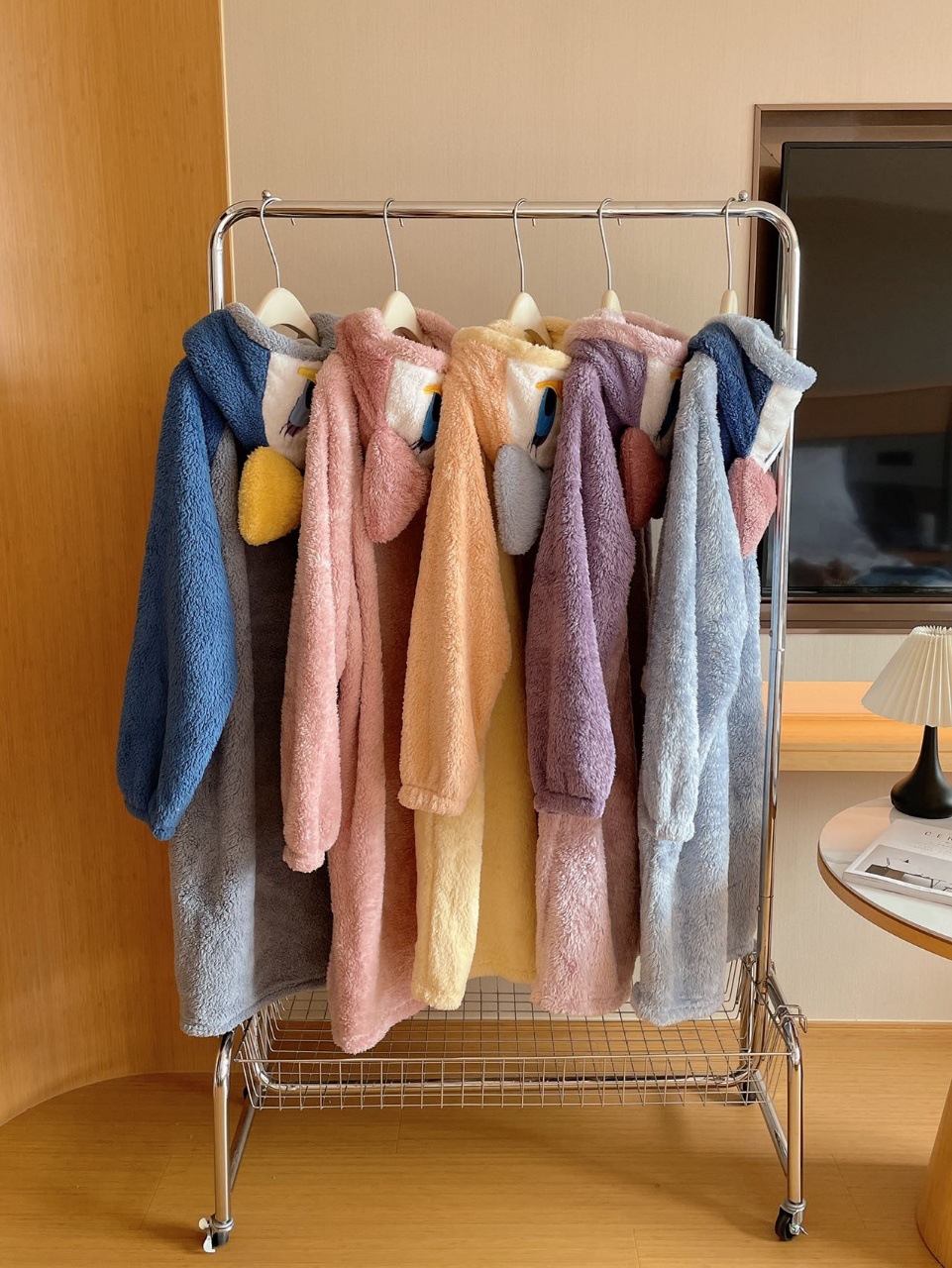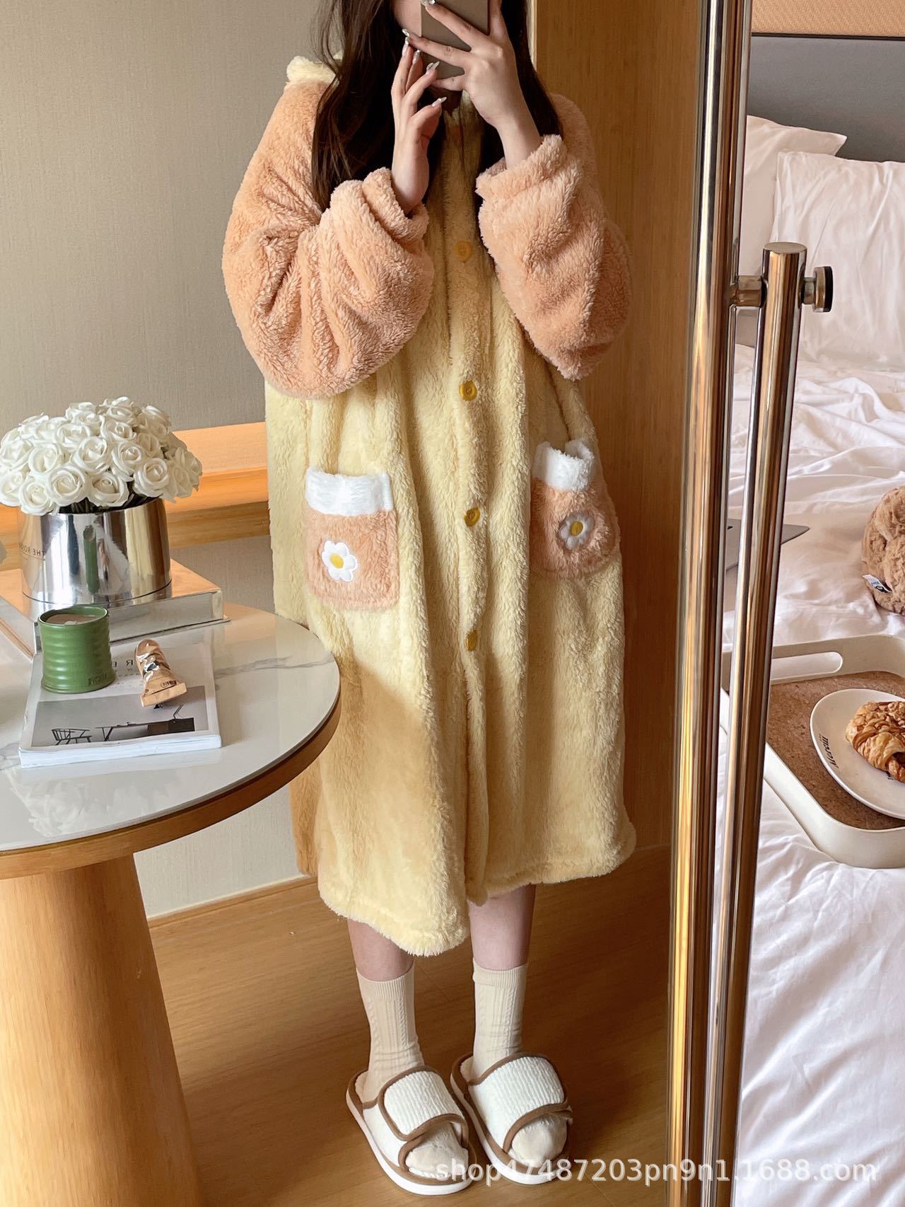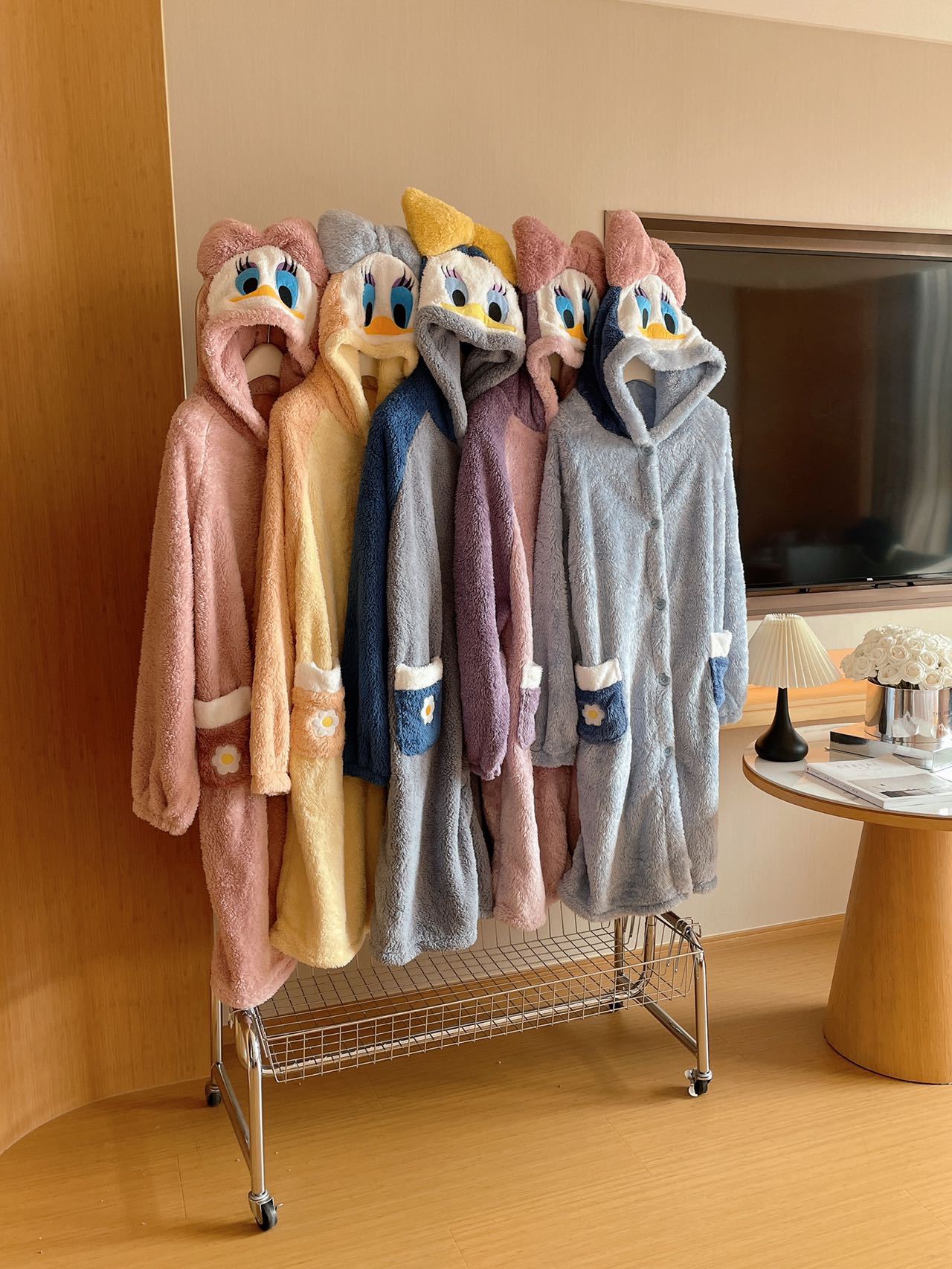 오리 잠옷 새로운 두꺼운 산호 양털 후드 잠옷 만화 겉옷 세트 따뜻한 부드러운 숙녀 가정 옷스토어 가기