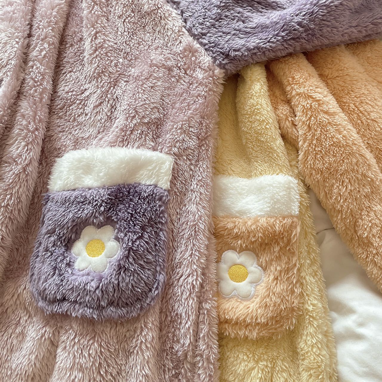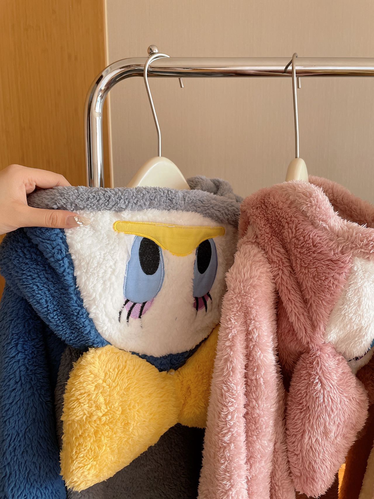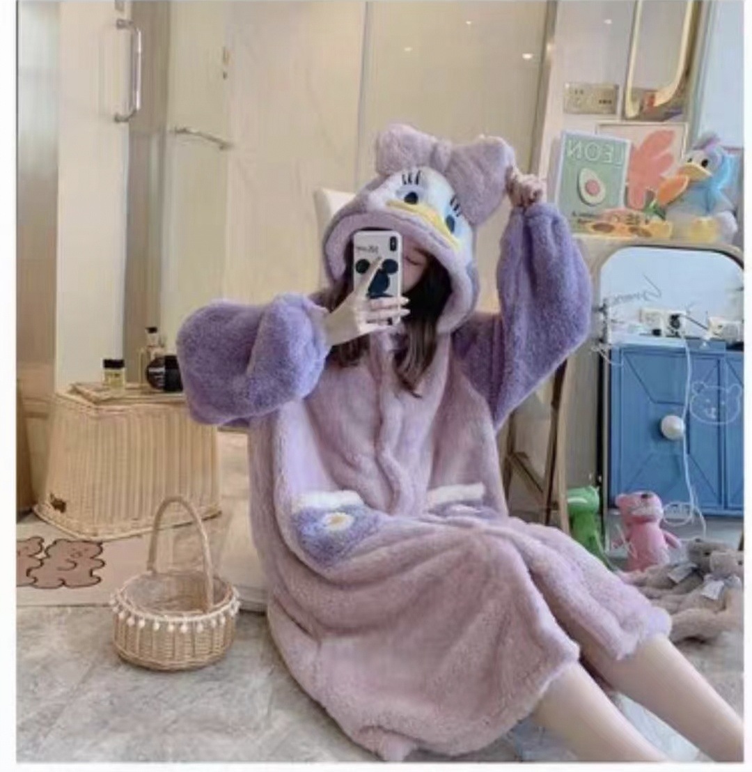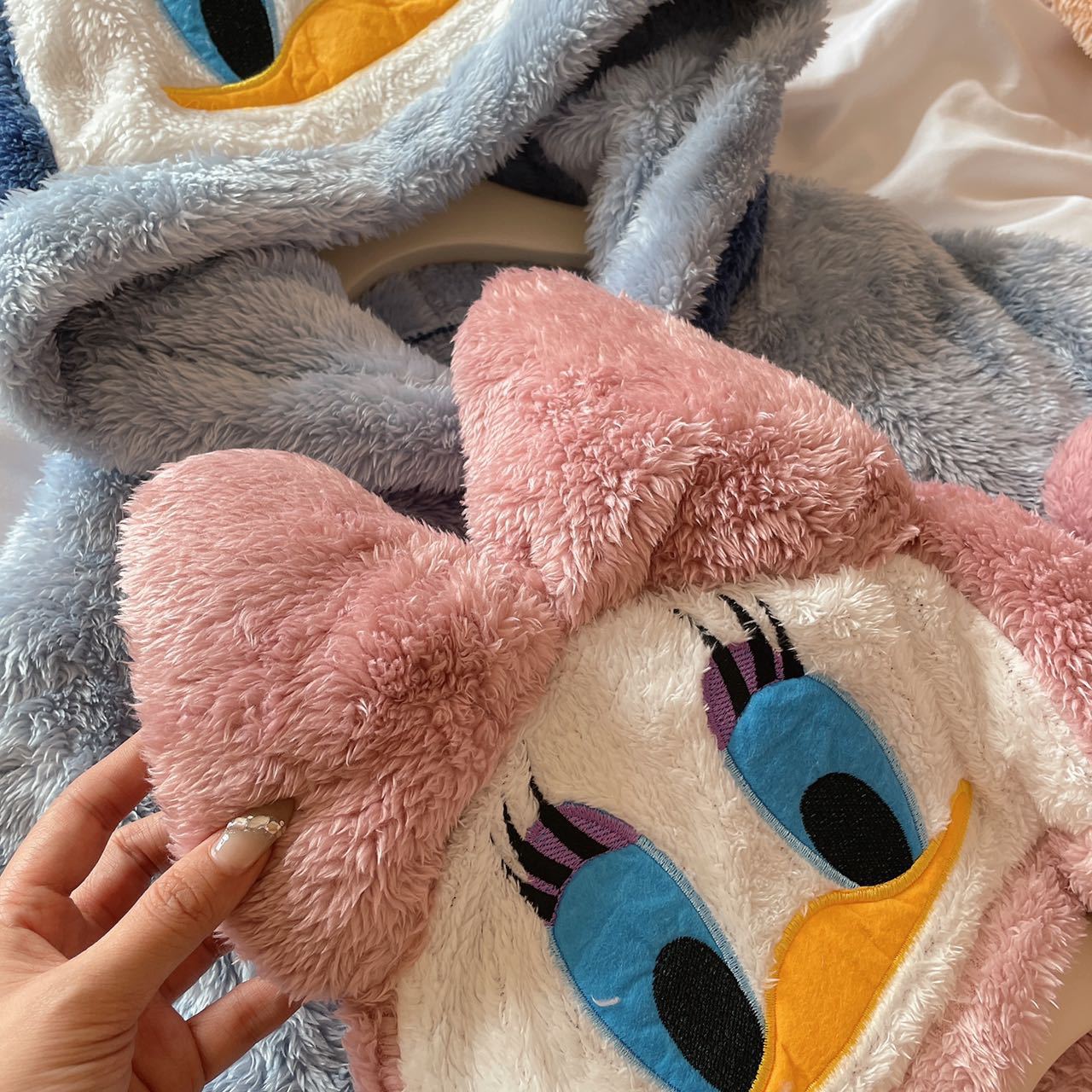 오리 잠옷 새로운 두꺼운 산호 양털 후드 잠옷 만화 겉옷 세트 따뜻한 부드러운 숙녀 가정 옷