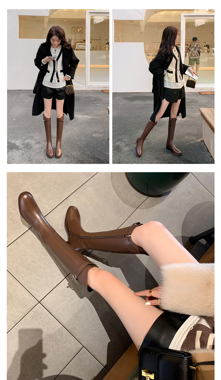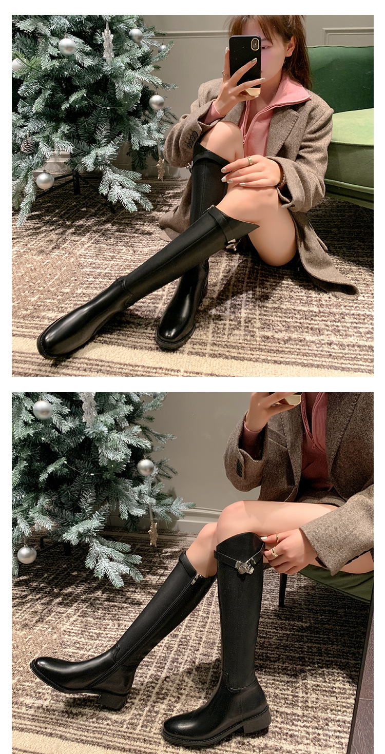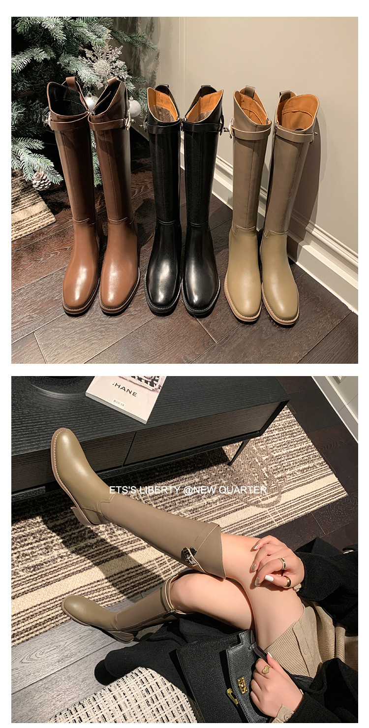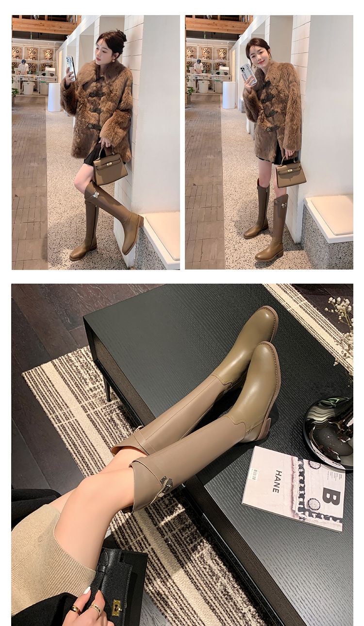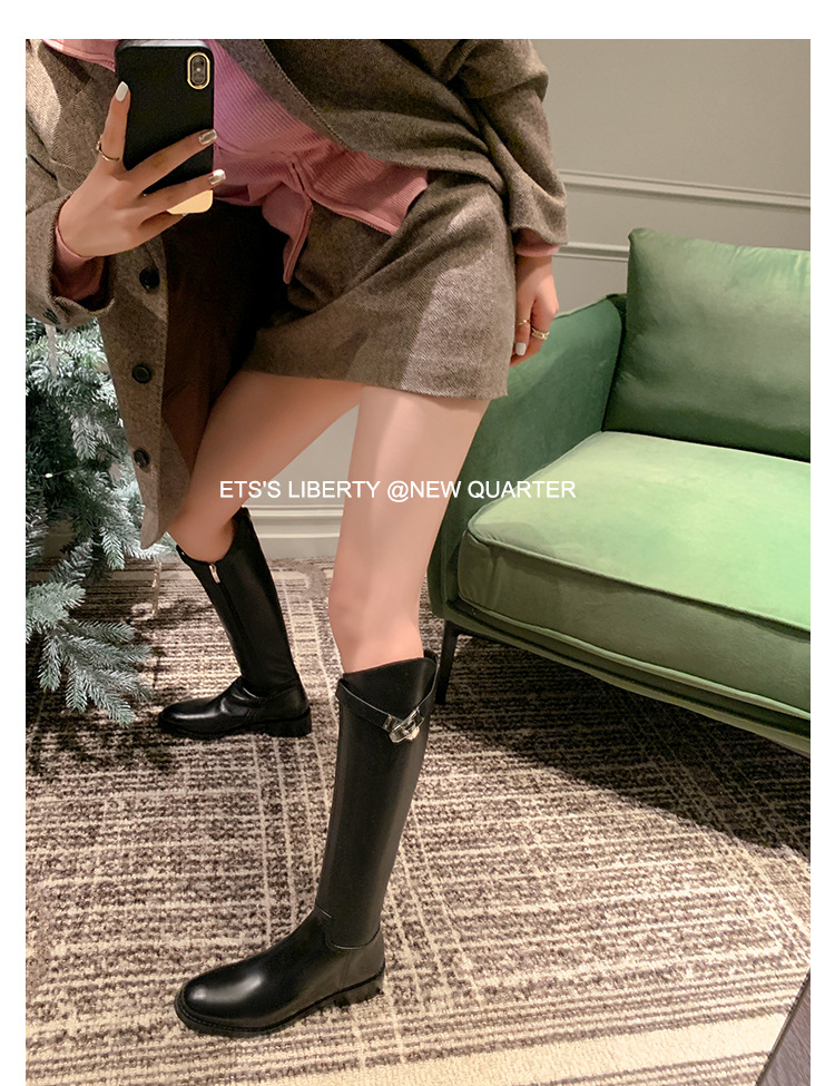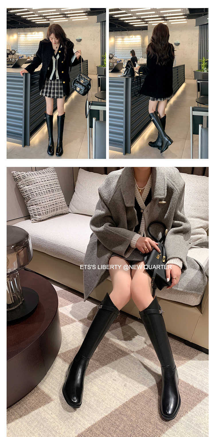 2023 새로운 노 니 롱 부츠 브리티시 메탈 버클 나이트 부츠 두꺼운 굽 롱 부츠 하이 부츠 플랫 부츠스토어 가기