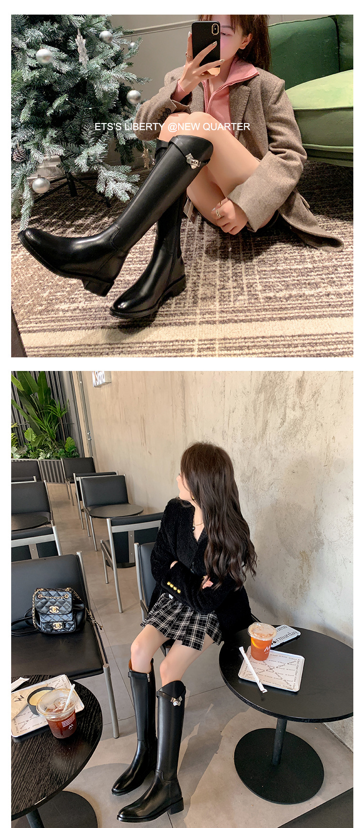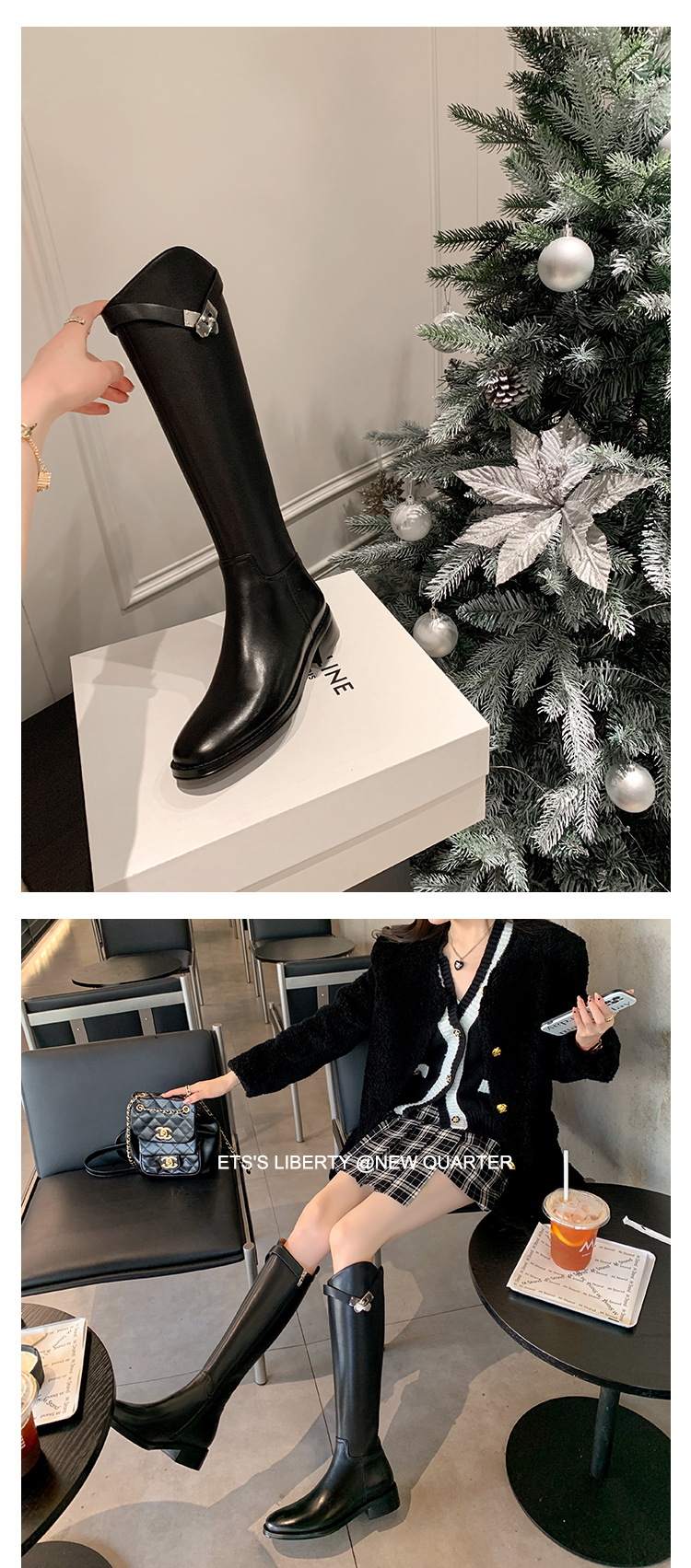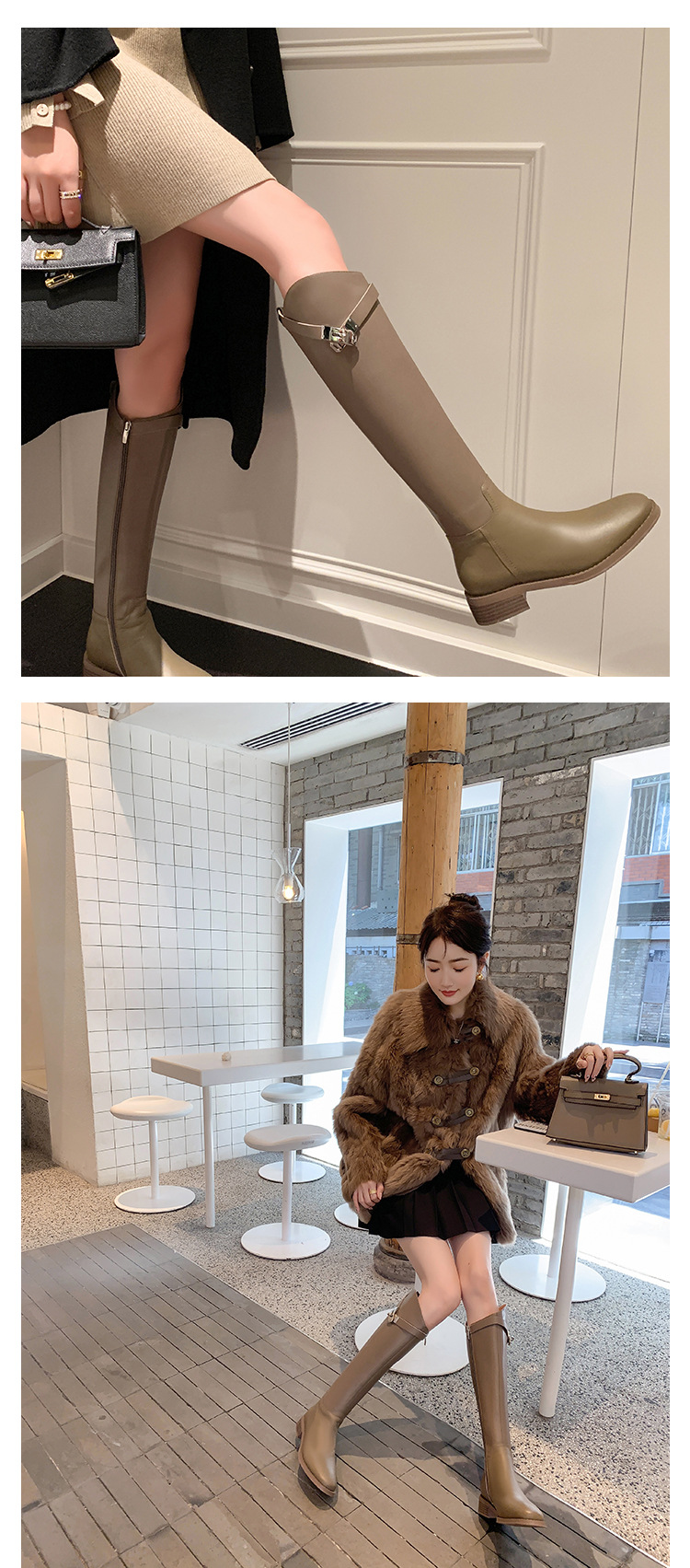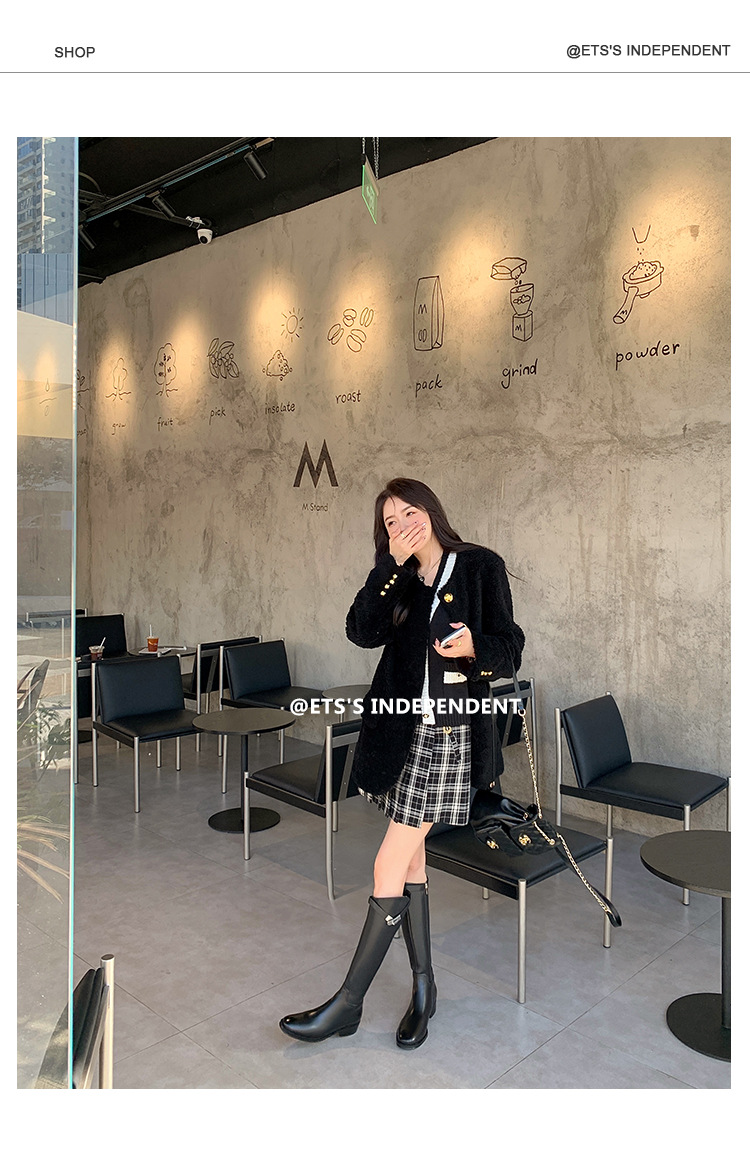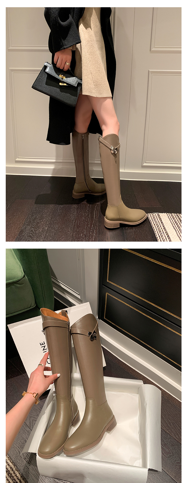 2023 새로운 노 니 롱 부츠 브리티시 메탈 버클 나이트 부츠 두꺼운 굽 롱 부츠 하이 부츠 플랫 부츠스토어 가기