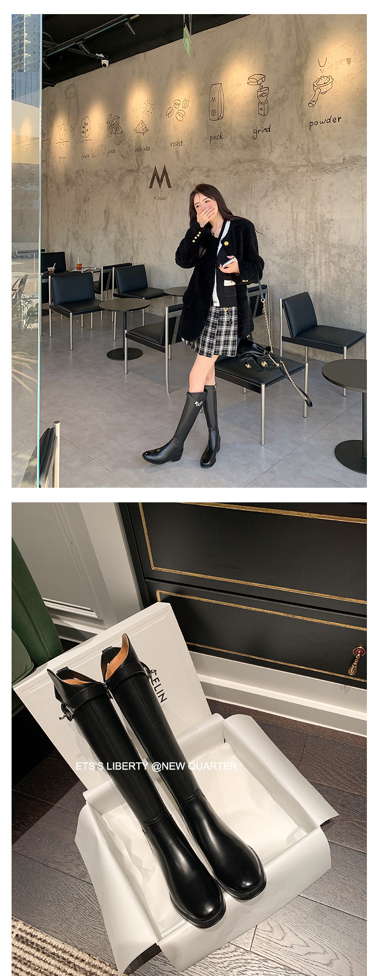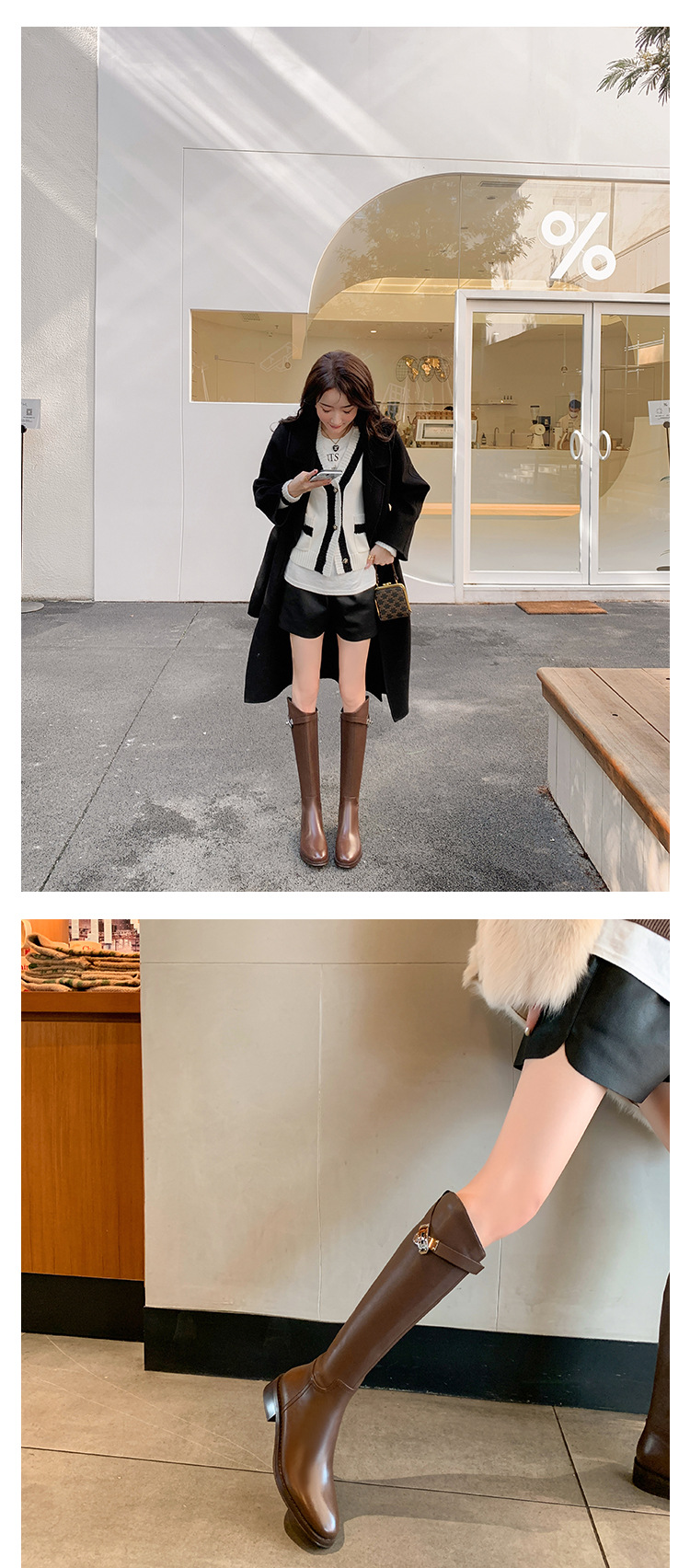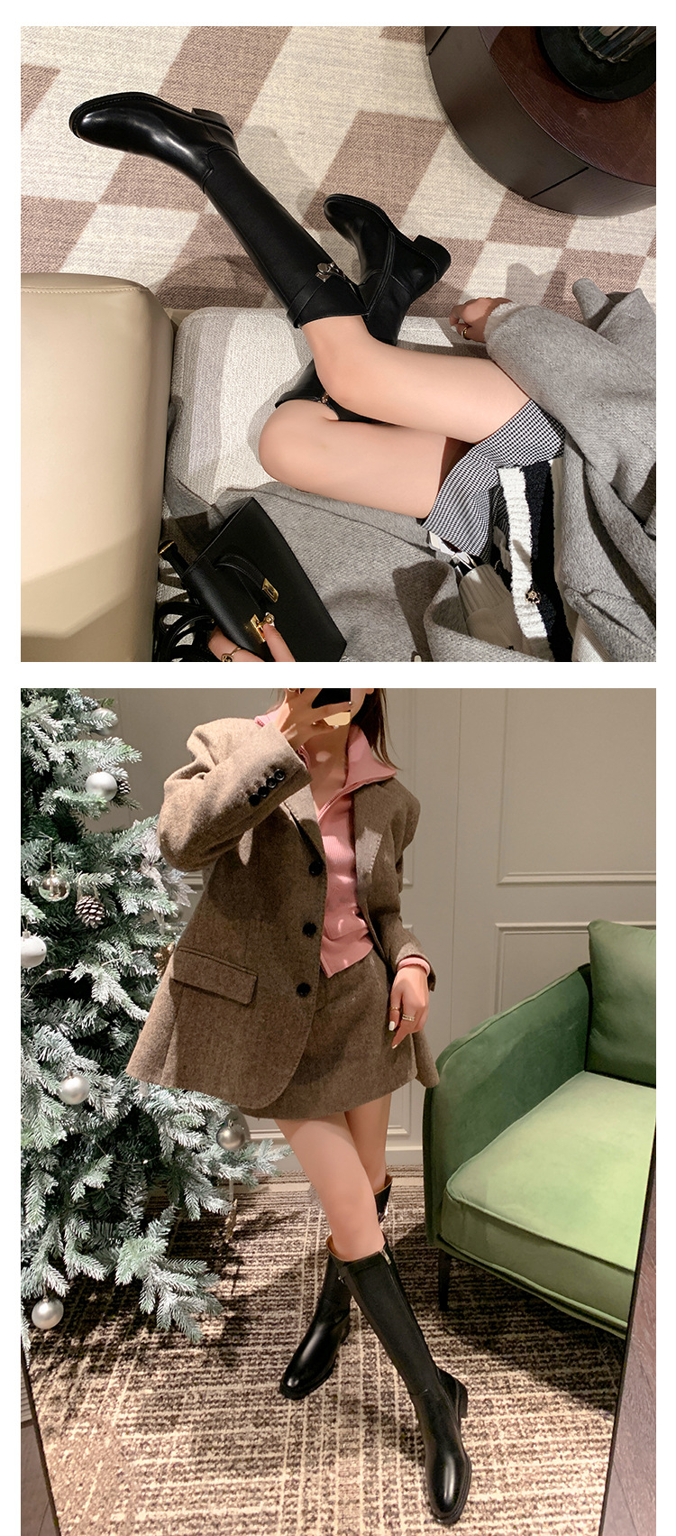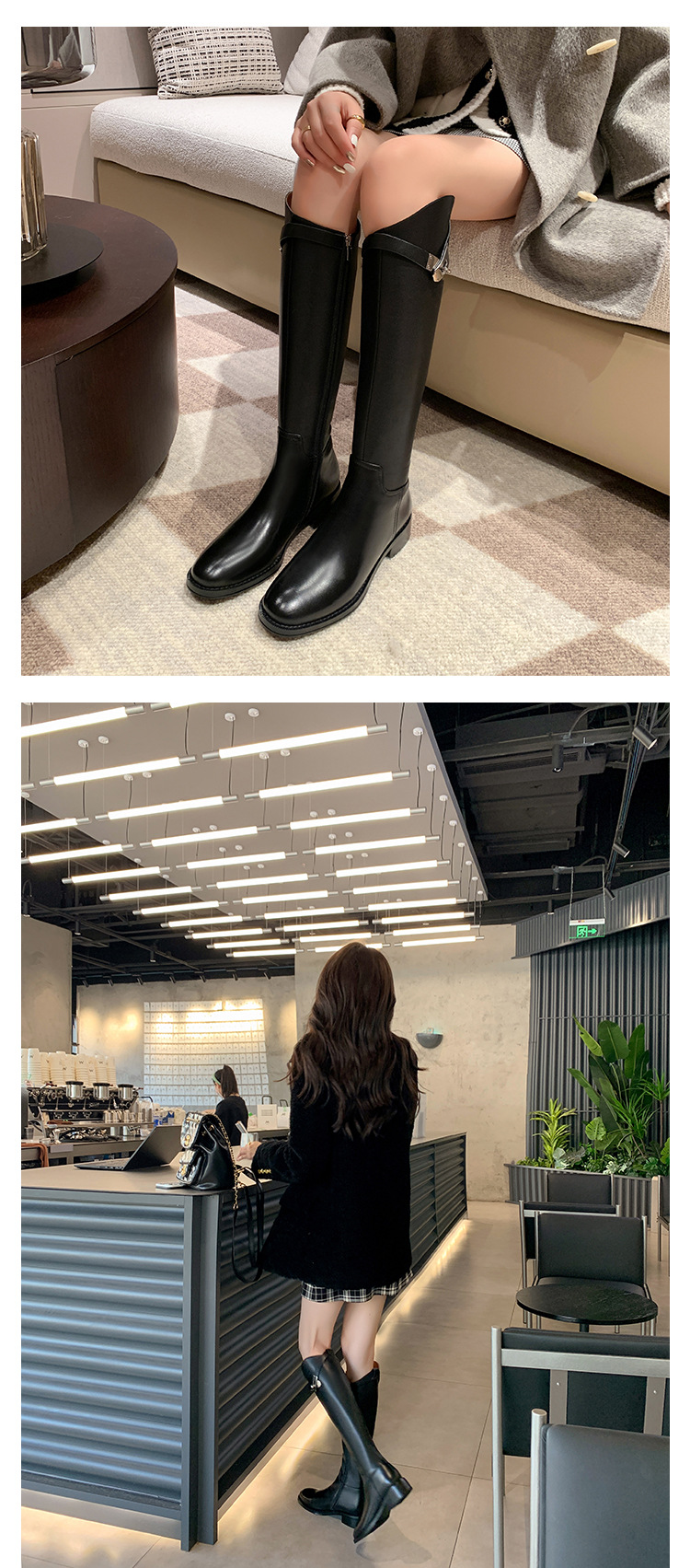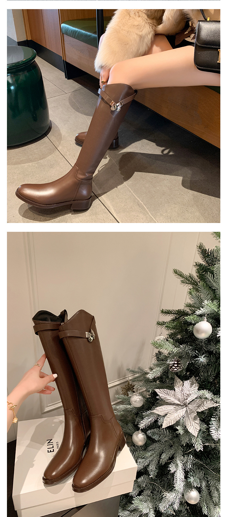 2023 새로운 노 니 롱 부츠 브리티시 메탈 버클 나이트 부츠 두꺼운 굽 롱 부츠 하이 부츠 플랫 부츠스토어 가기
