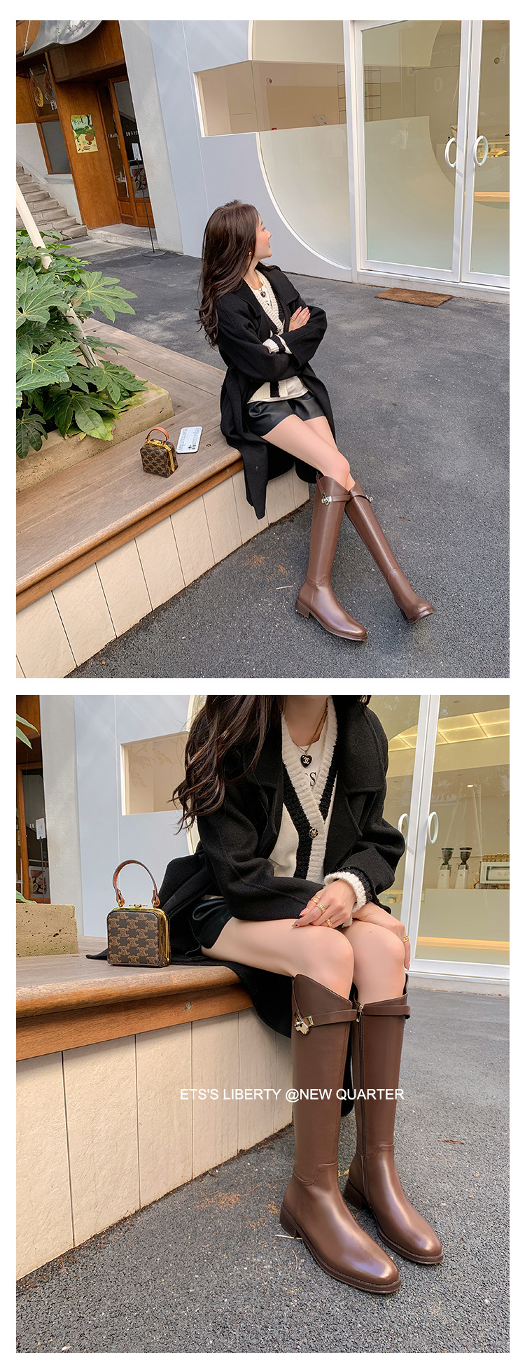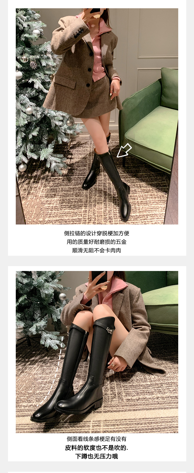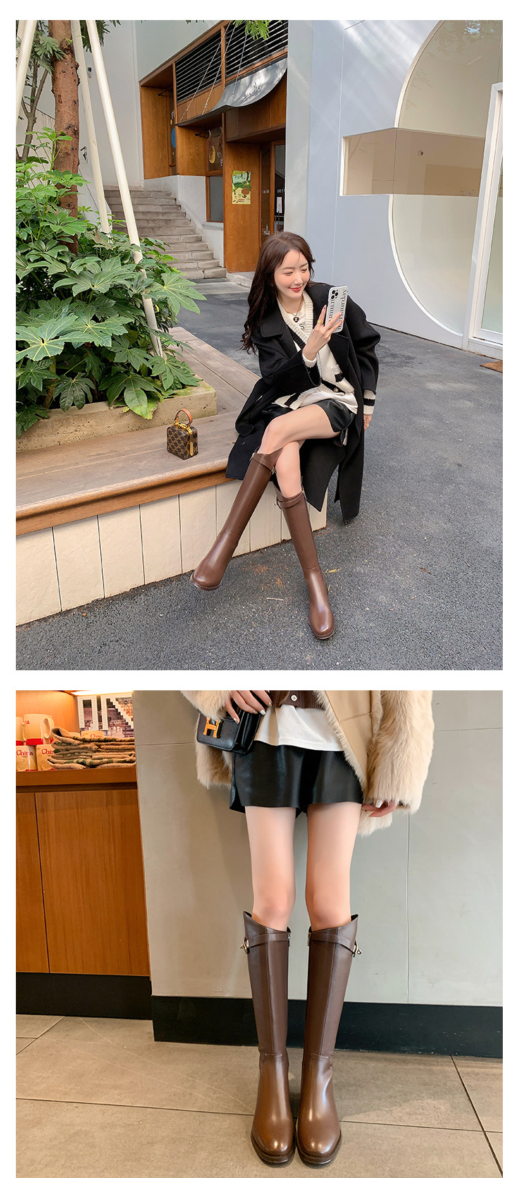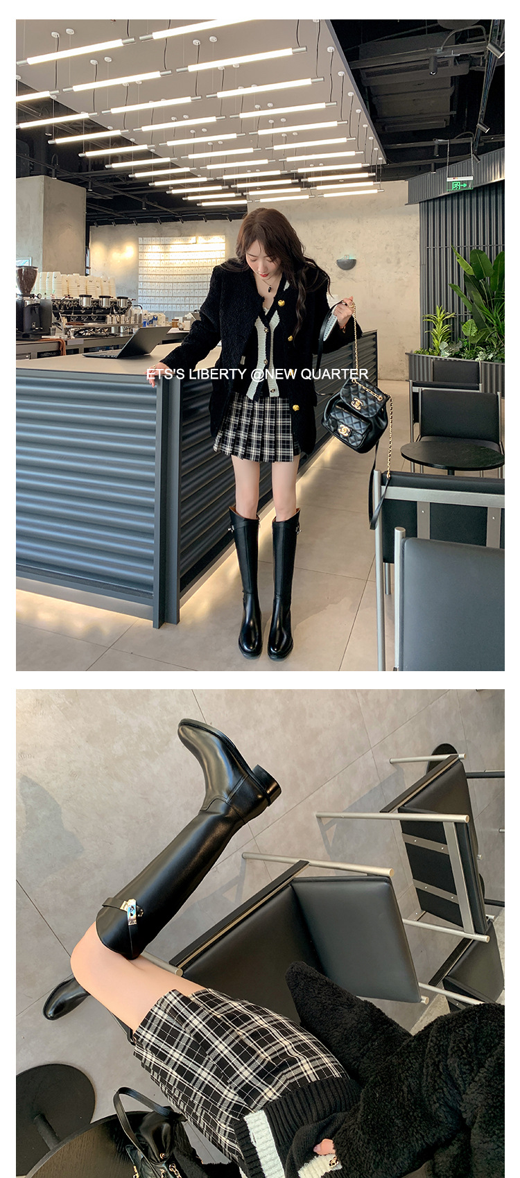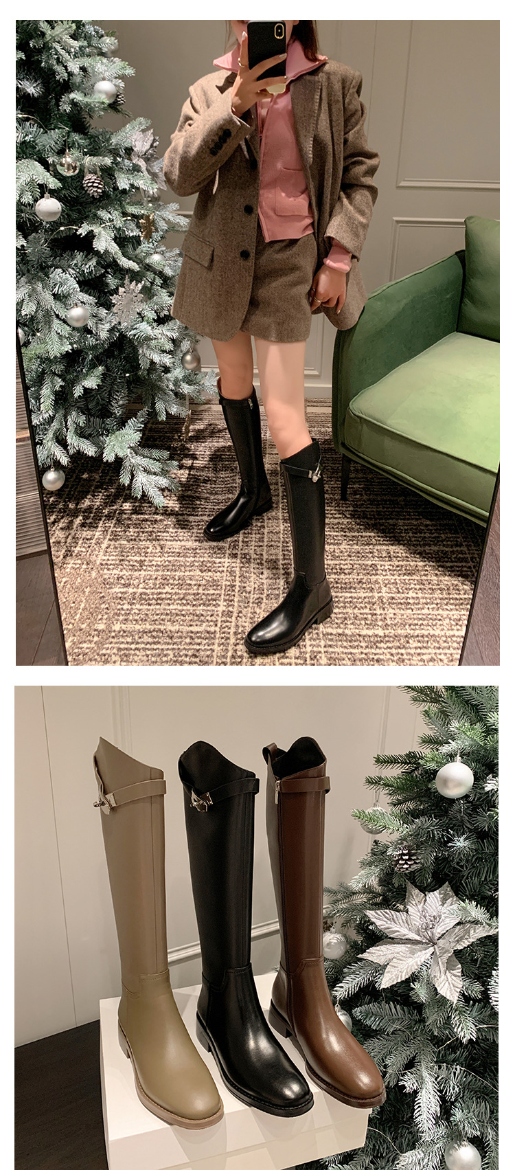2023 새로운 노 니 롱 부츠 브리티시 메탈 버클 나이트 부츠 두꺼운 굽 롱 부츠 하이 부츠 플랫 부츠스토어 가기