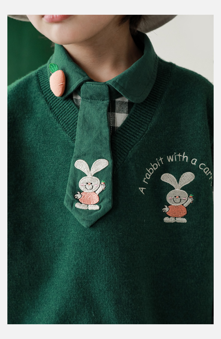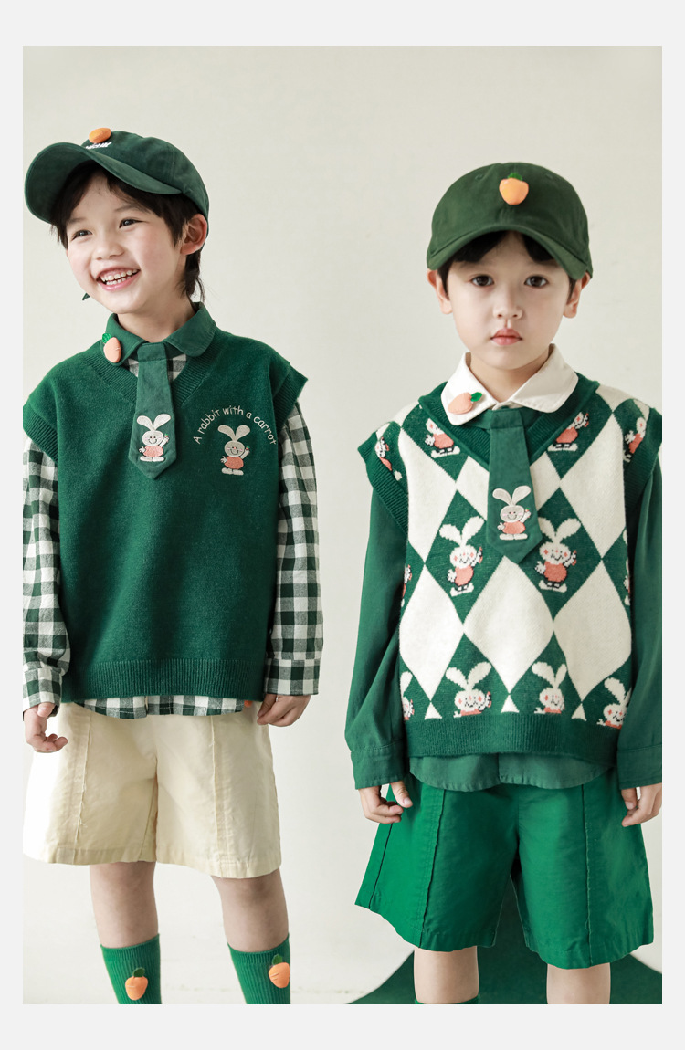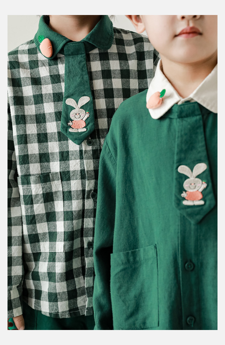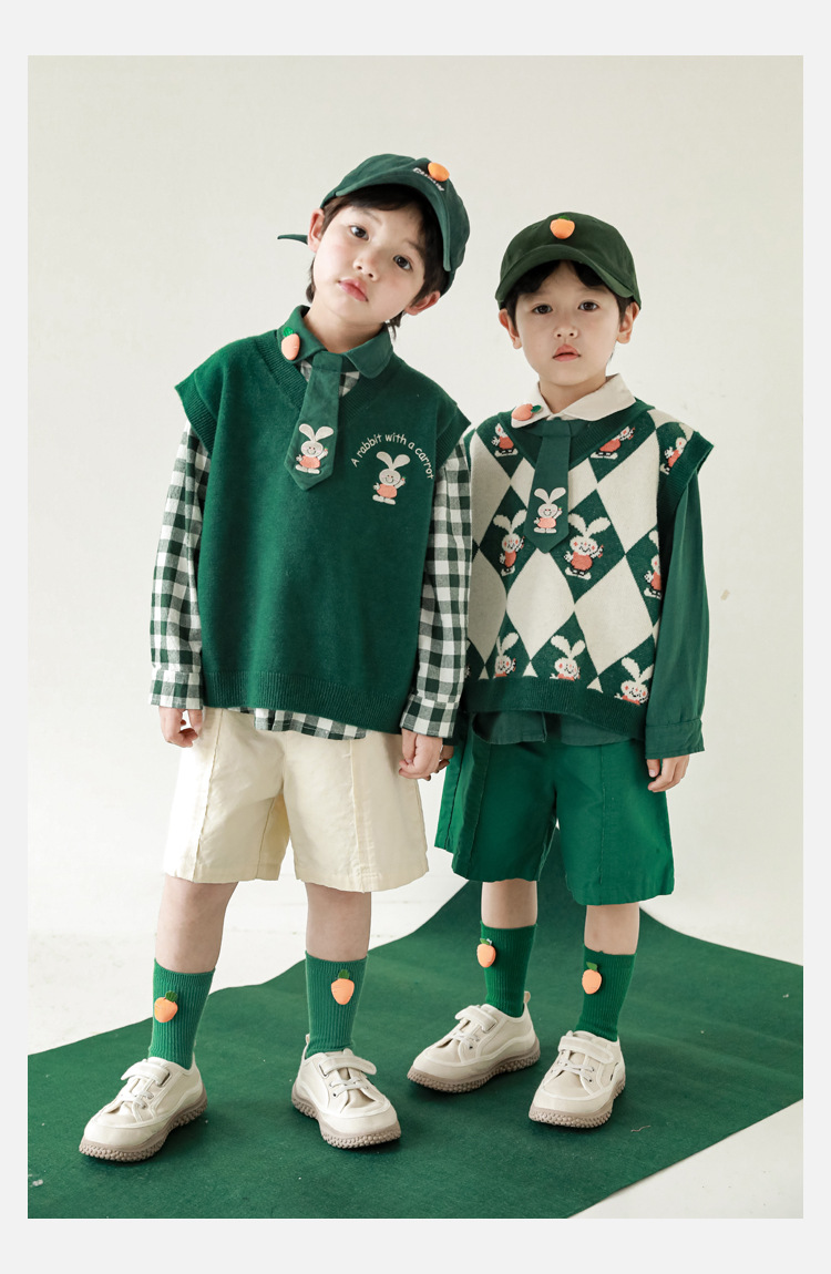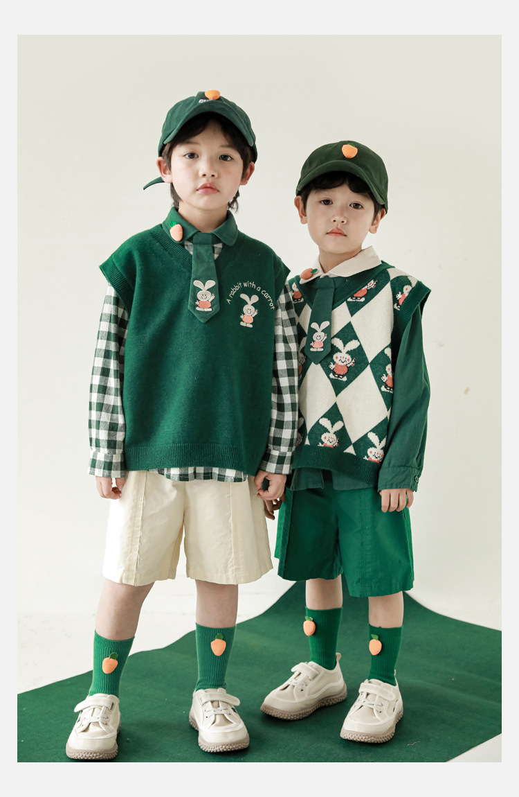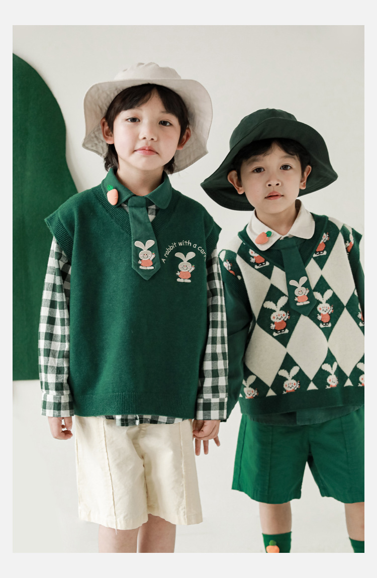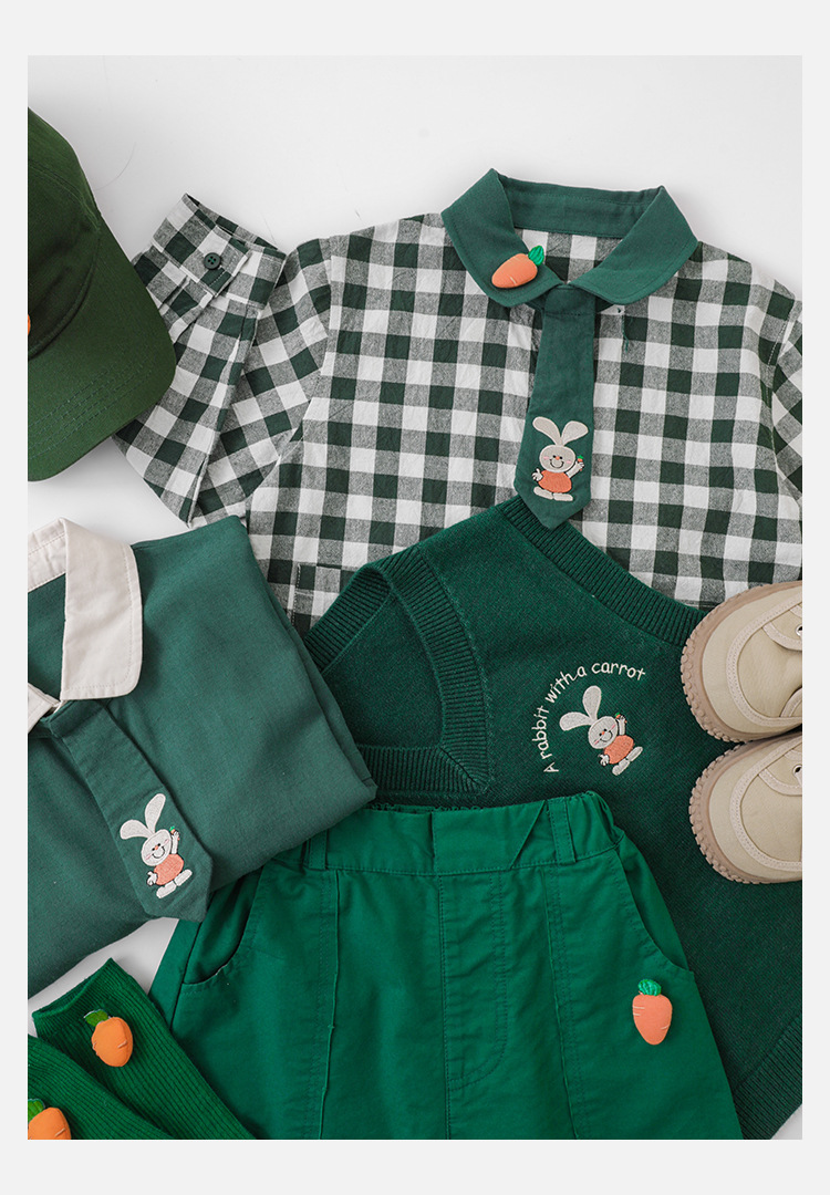 Wurib a 아이 토끼 자수 탈부착 격자 무늬 셔츠 바지 봄과 가을 소년 착용 양복 조끼 세트스토어 가기