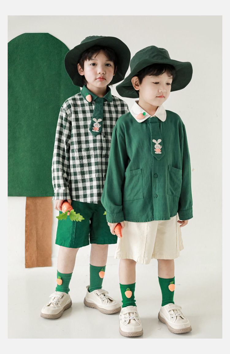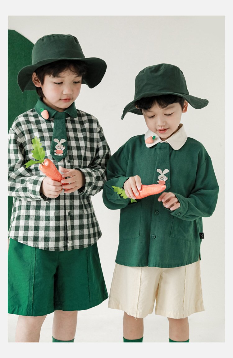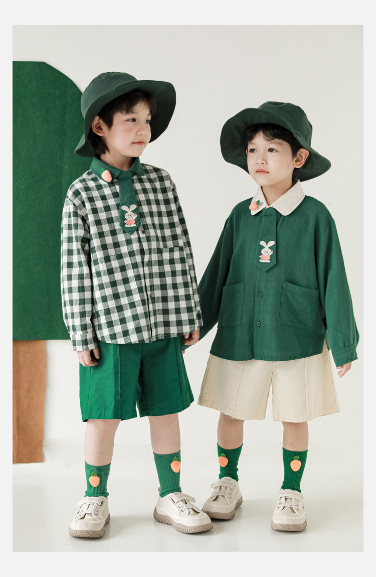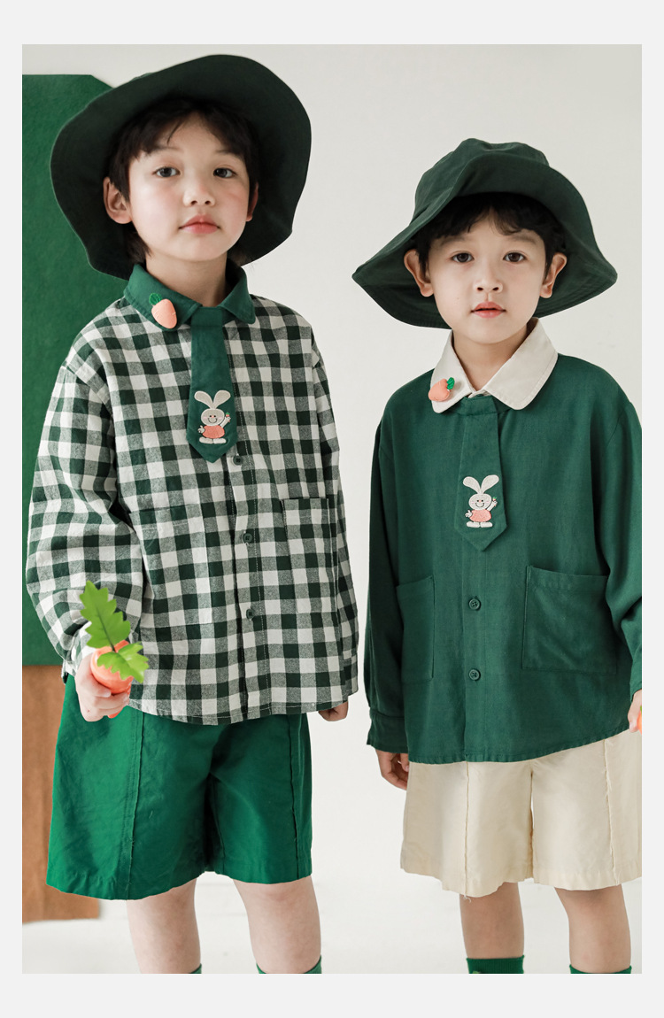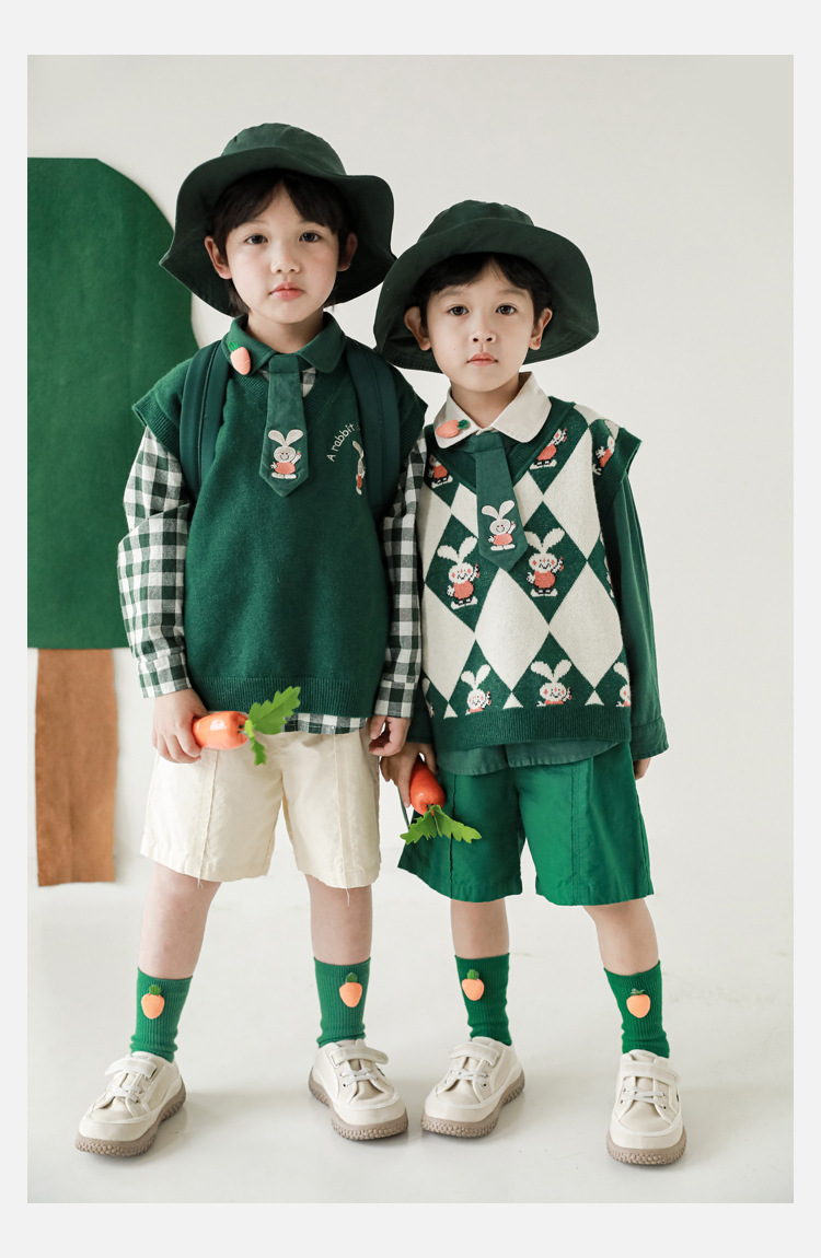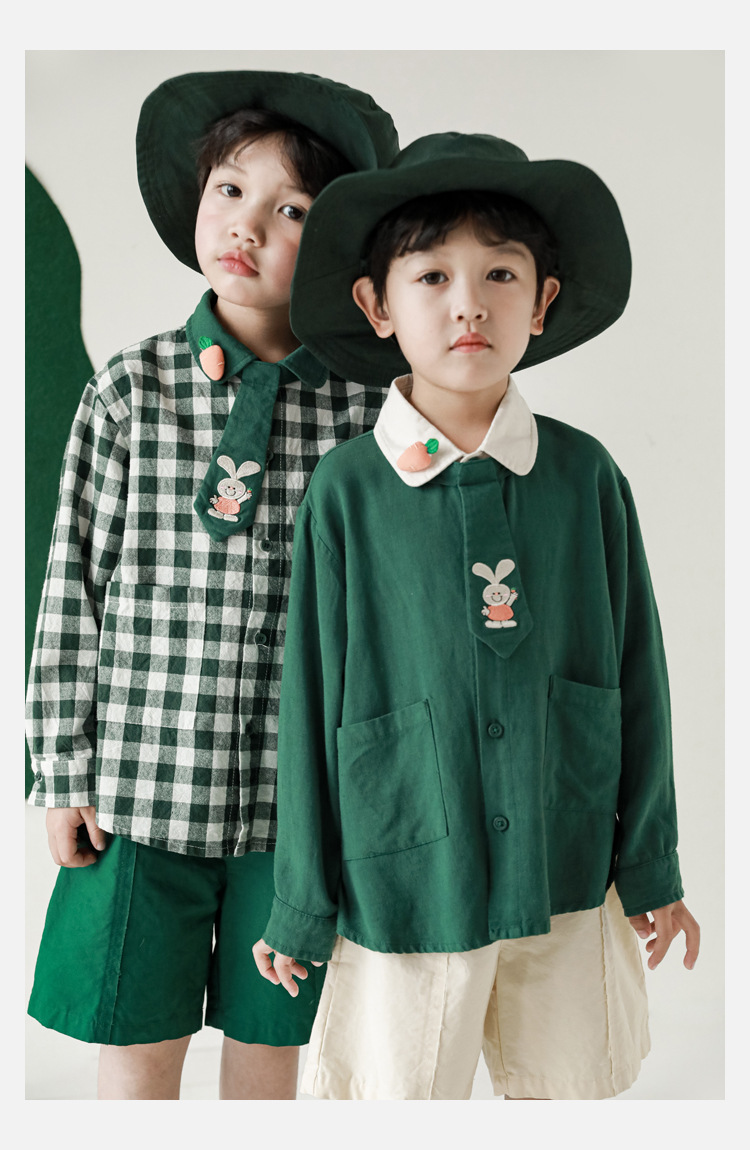 Wurib a 아이 토끼 자수 탈부착 격자 무늬 셔츠 바지 봄과 가을 소년 착용 양복 조끼 세트스토어 가기