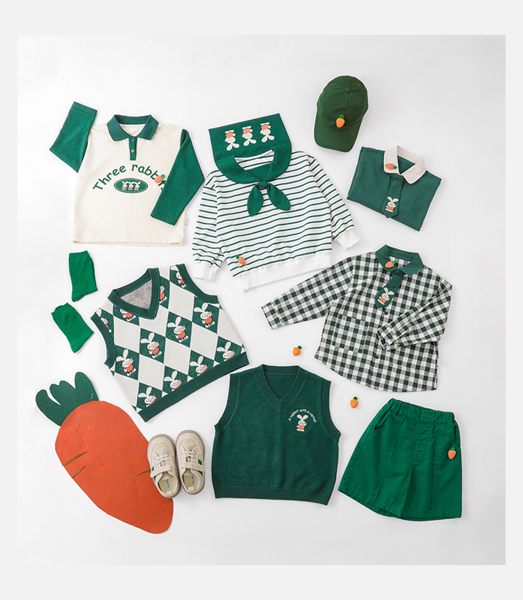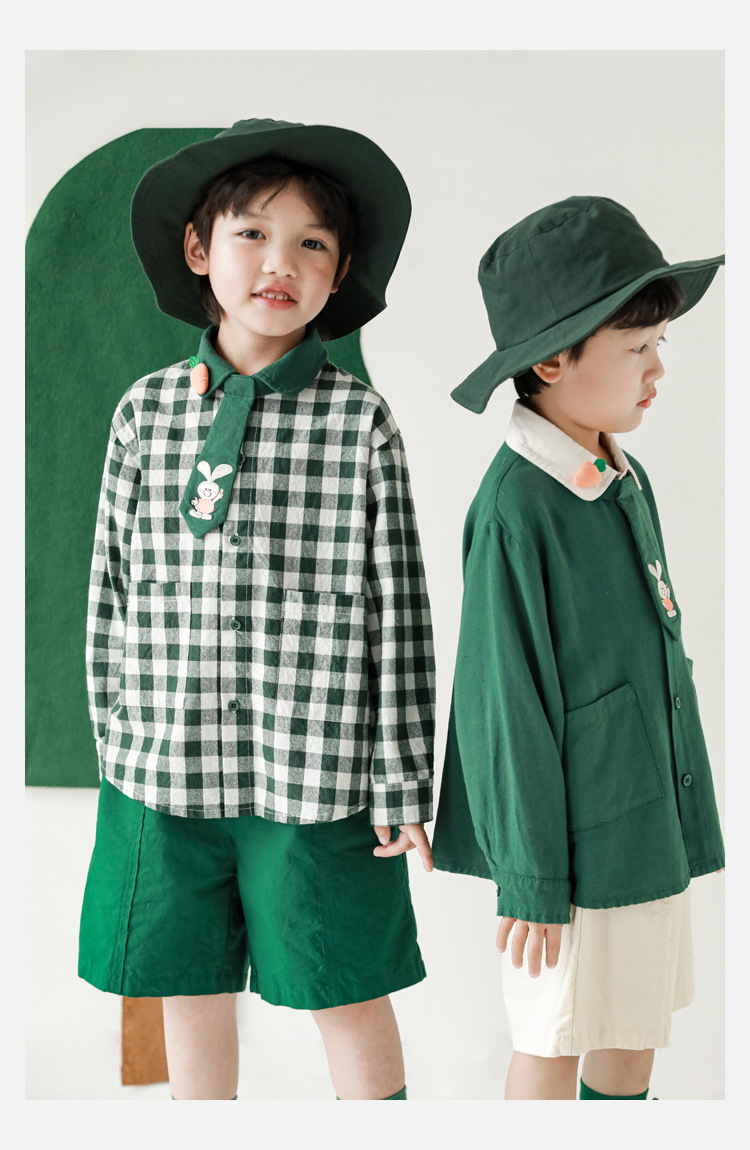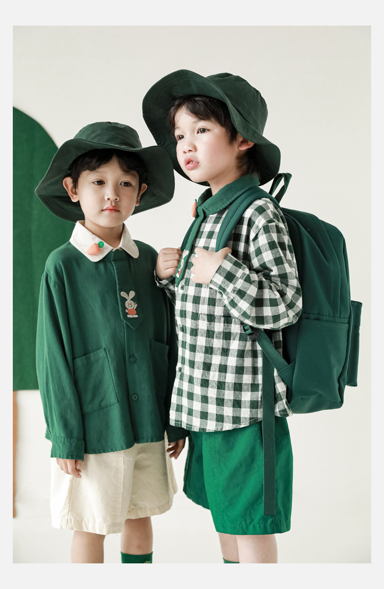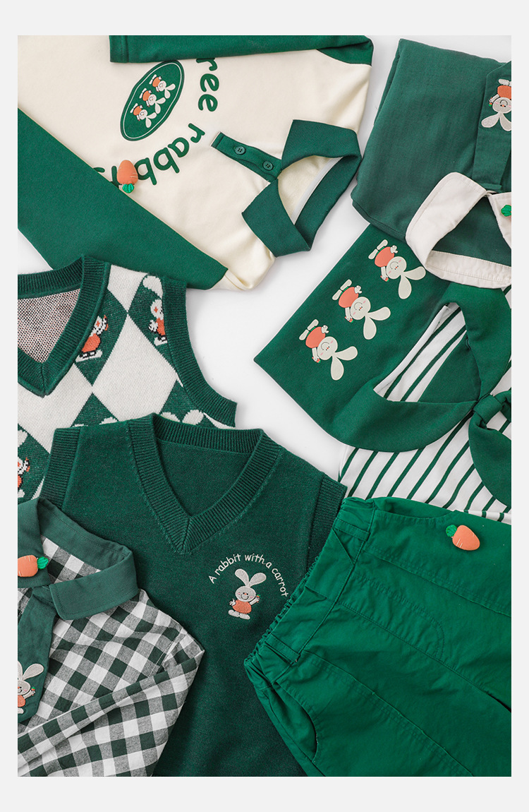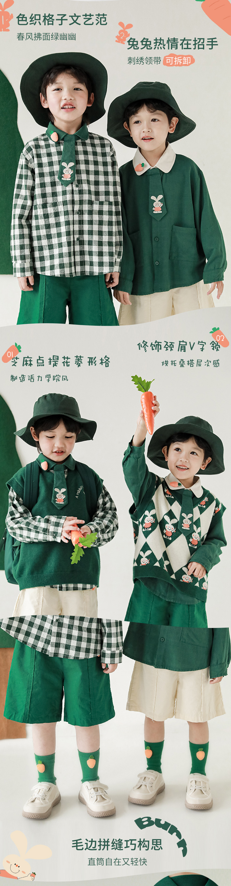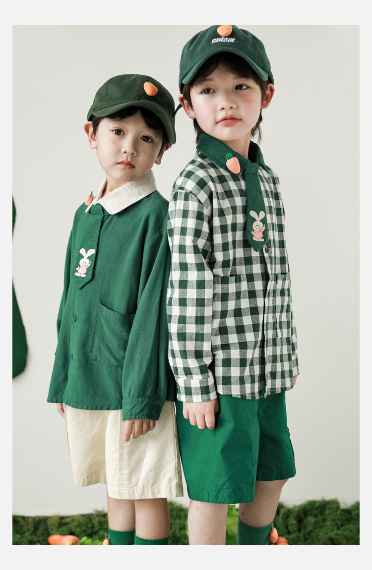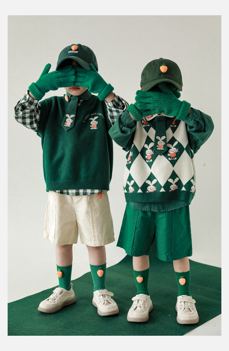 Wurib a 아이 토끼 자수 탈부착 격자 무늬 셔츠 바지 봄과 가을 소년 착용 양복 조끼 세트스토어 가기