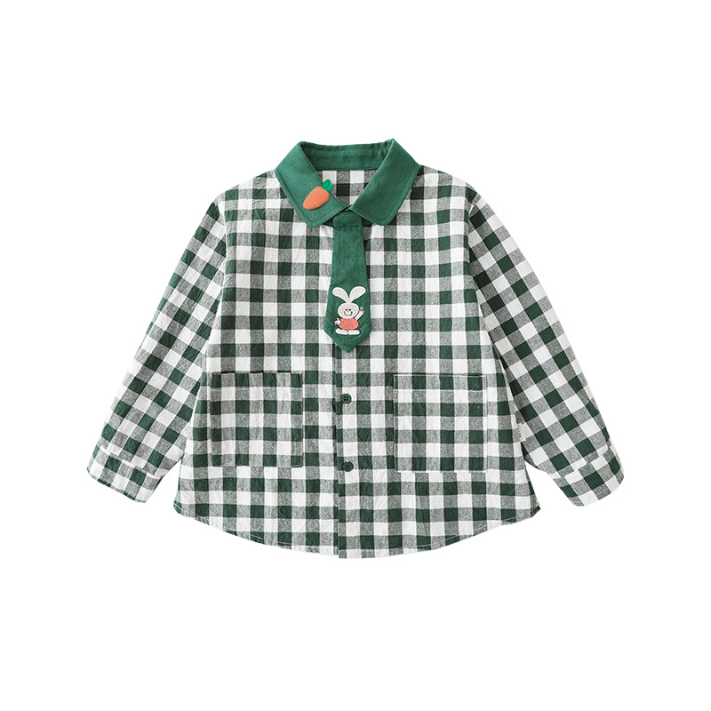 Wurib a 아이 토끼 자수 탈부착 격자 무늬 셔츠 바지 봄과 가을 소년 착용 양복 조끼 세트