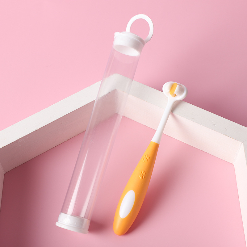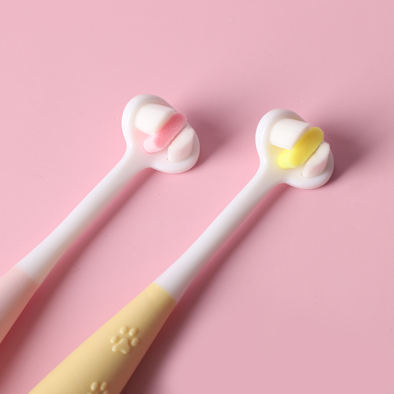 어린이 칫솔 새로운 세 이빨 만 부드러운 머리 미끄럼 방지 손잡이 어린이 아기 5d 칫솔 재고 해외 무역 도매스토어 가기