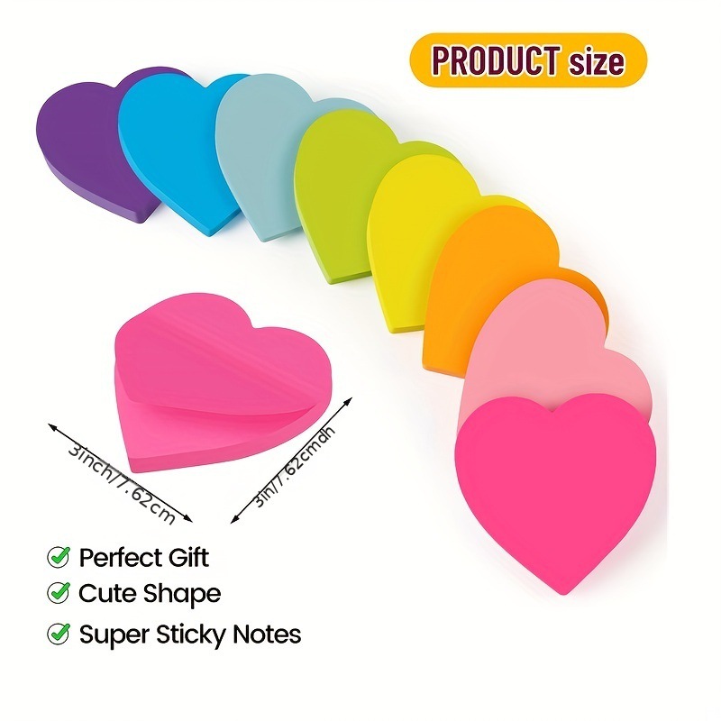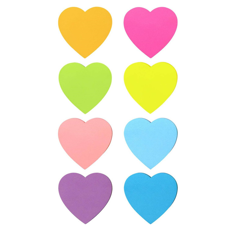 제조업체 재고 하트 모양의 끈적 끈적한 노트 형광 8 색 조합 특수 모양의 통지 스티커 76*76MM 고점도 82 페이지 사용자 정의스토어 가기