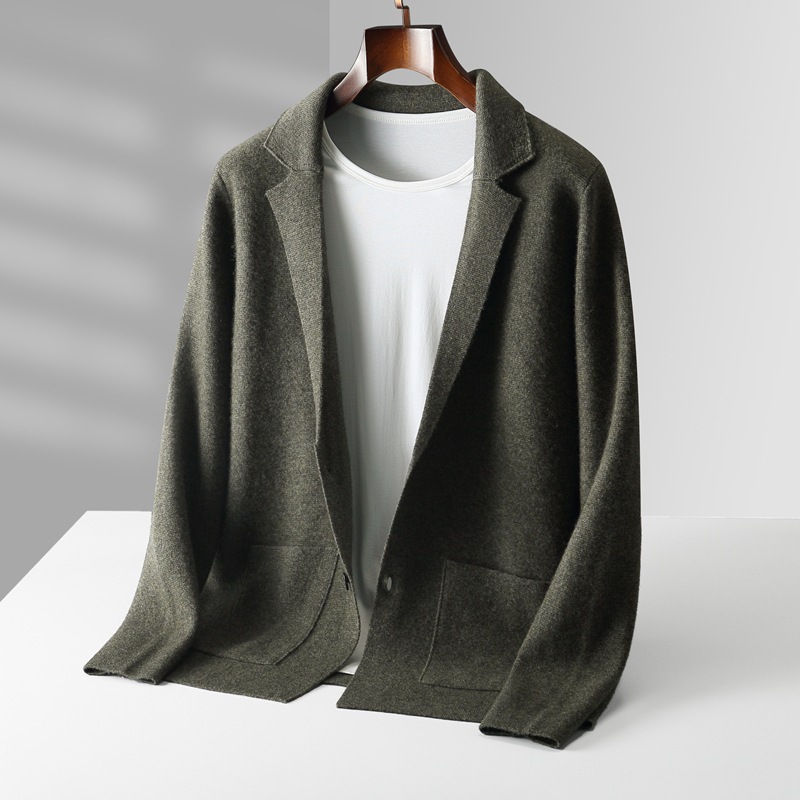2023 가을과 겨울 새로운 젊은 중년 울 남성 카디건 옷깃 단색 스웨터 코트 긴팔 한국 남성 의류스토어 가기