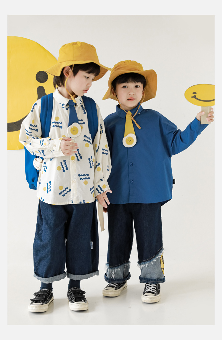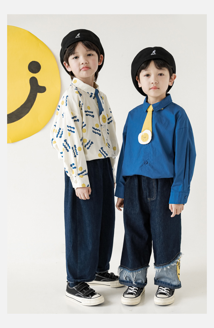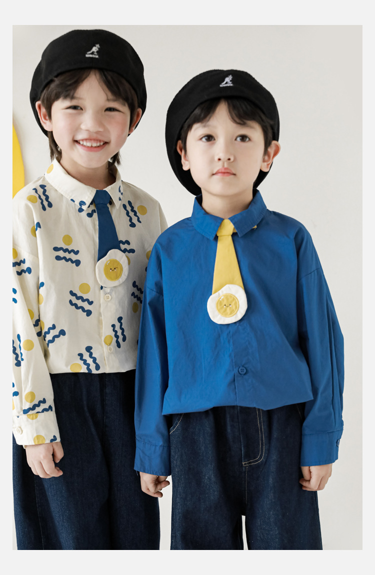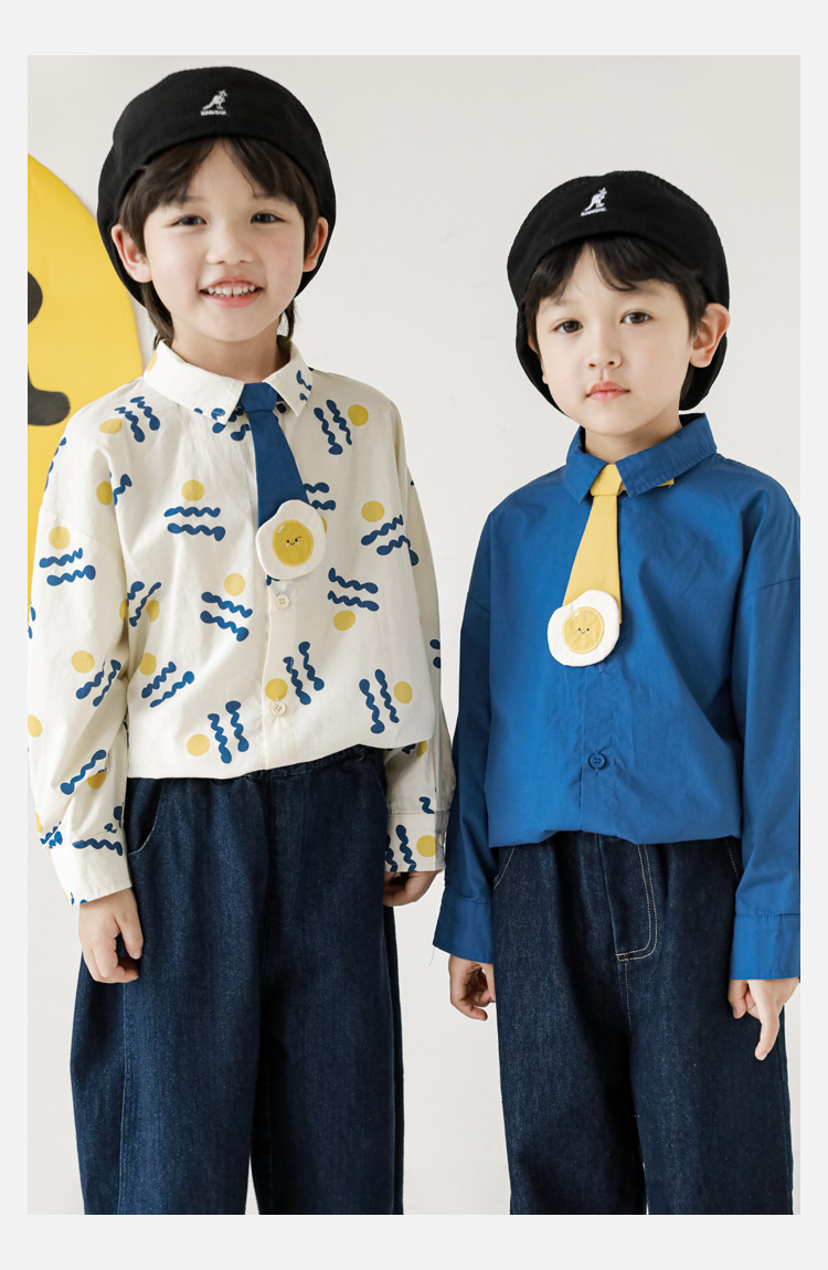 소년의 패치 인형 탈착식 계란 튀김 넥타이 잘 생긴 셔츠 봄과 가을 새 어린이 셔츠 조수스토어 가기