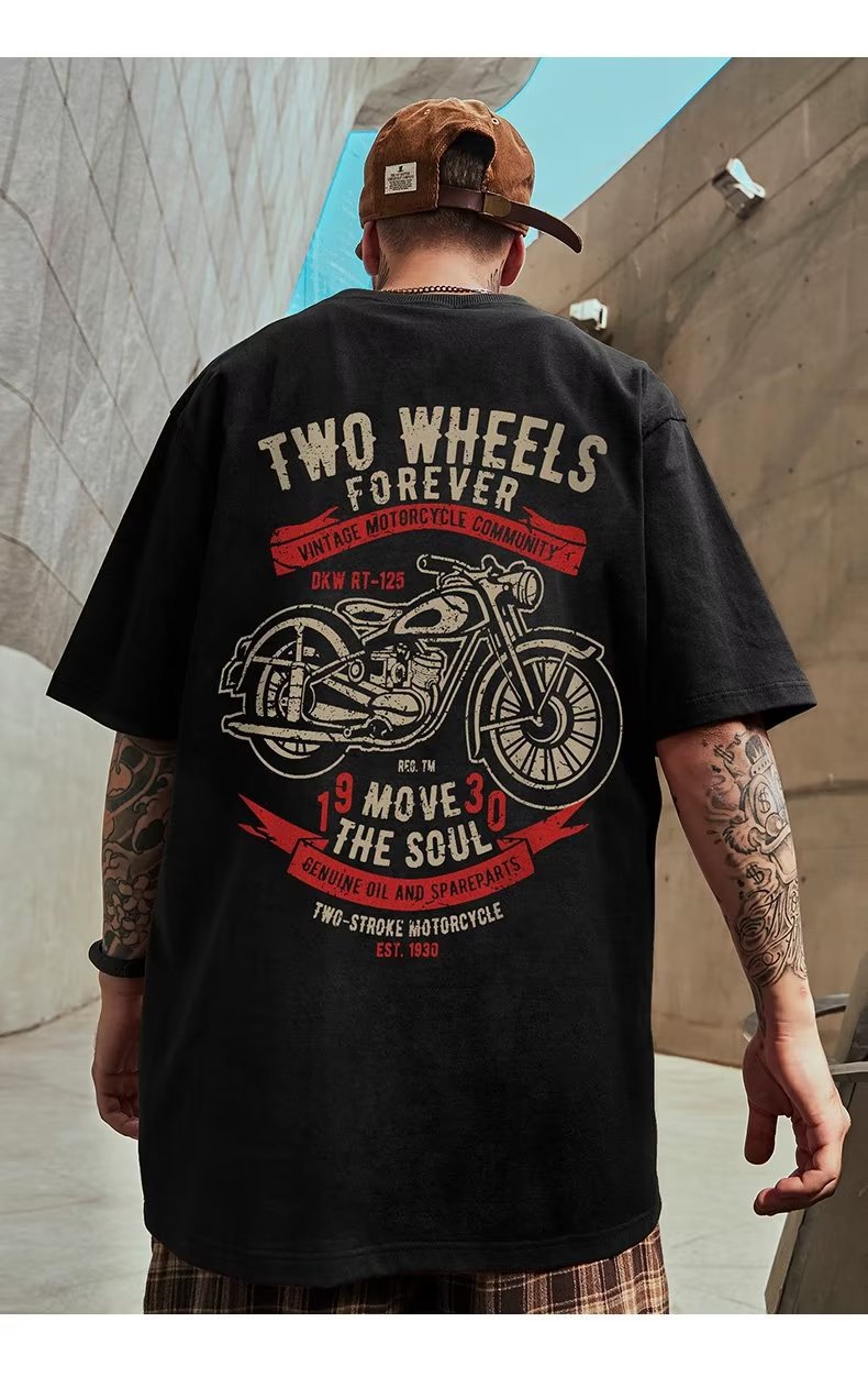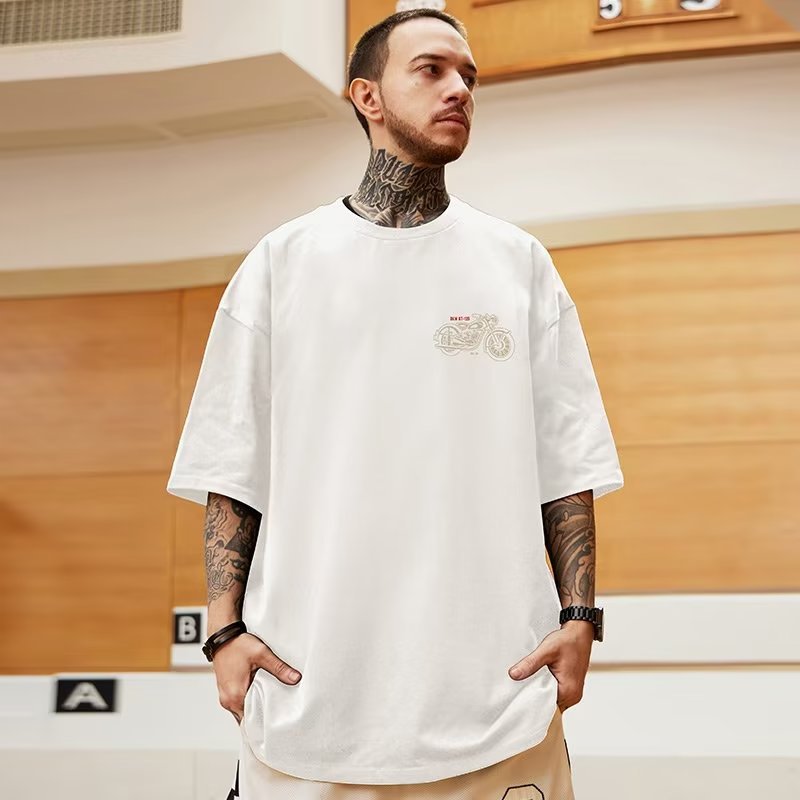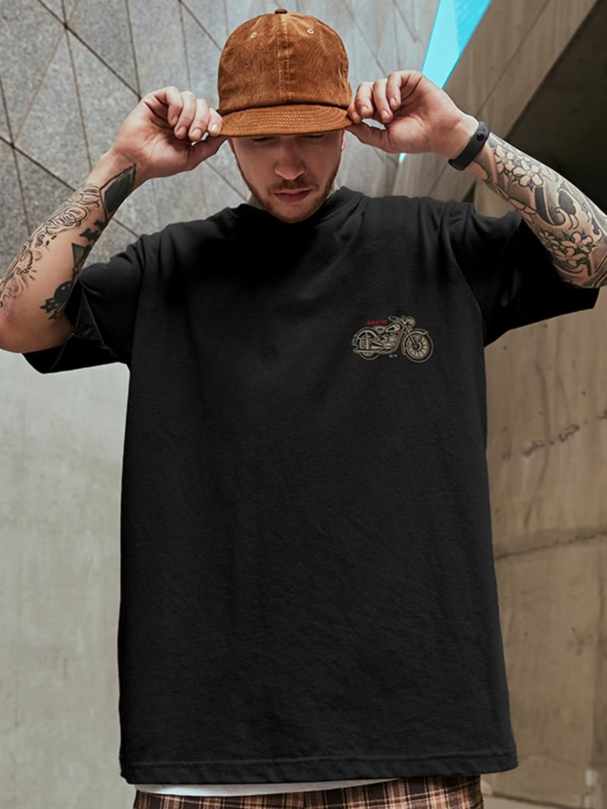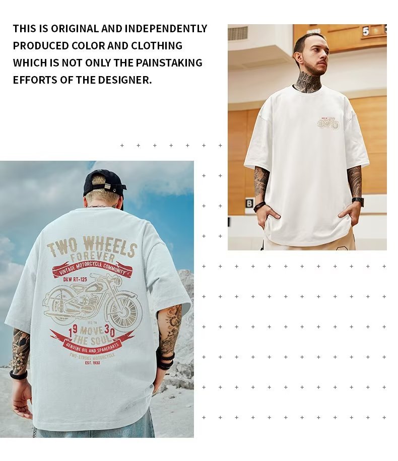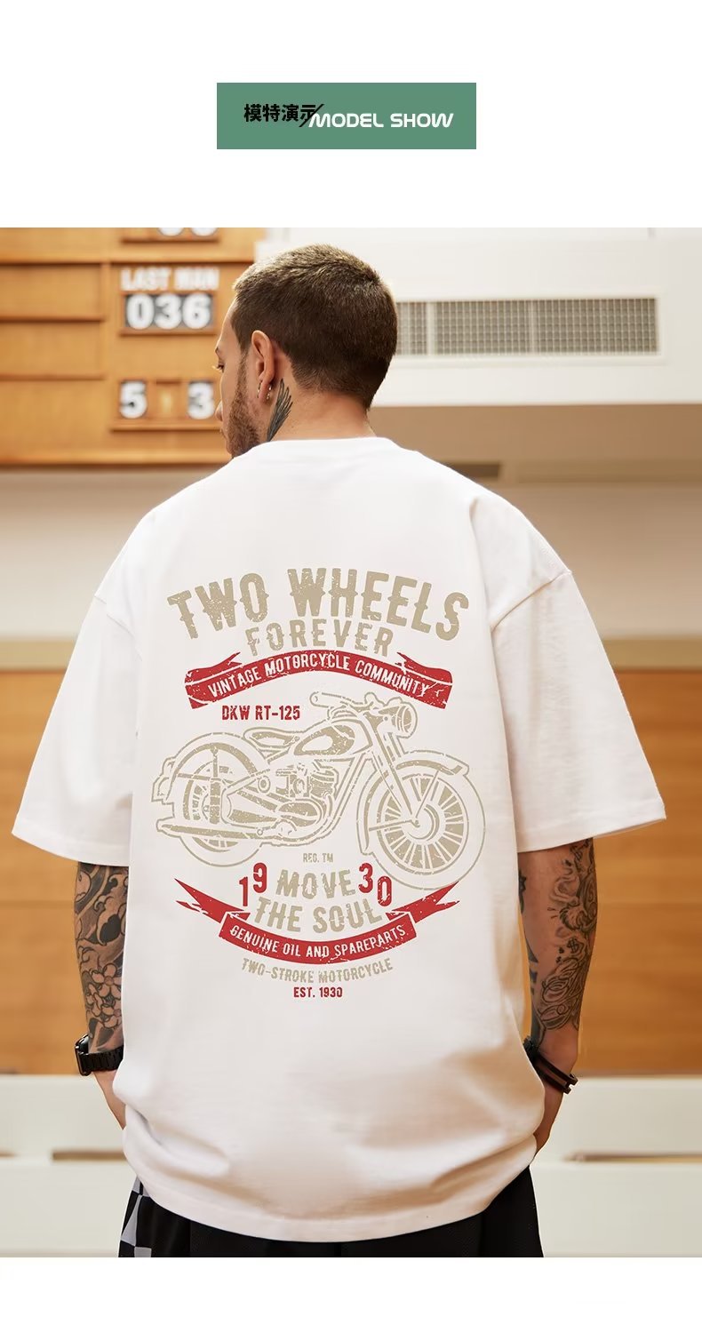 새로운 스트리트 스타일 오토바이 프린트 반팔 티셔츠 남성 여름 캐주얼 느슨한 플러스 사이즈 오토바이 하프 소매 8XL