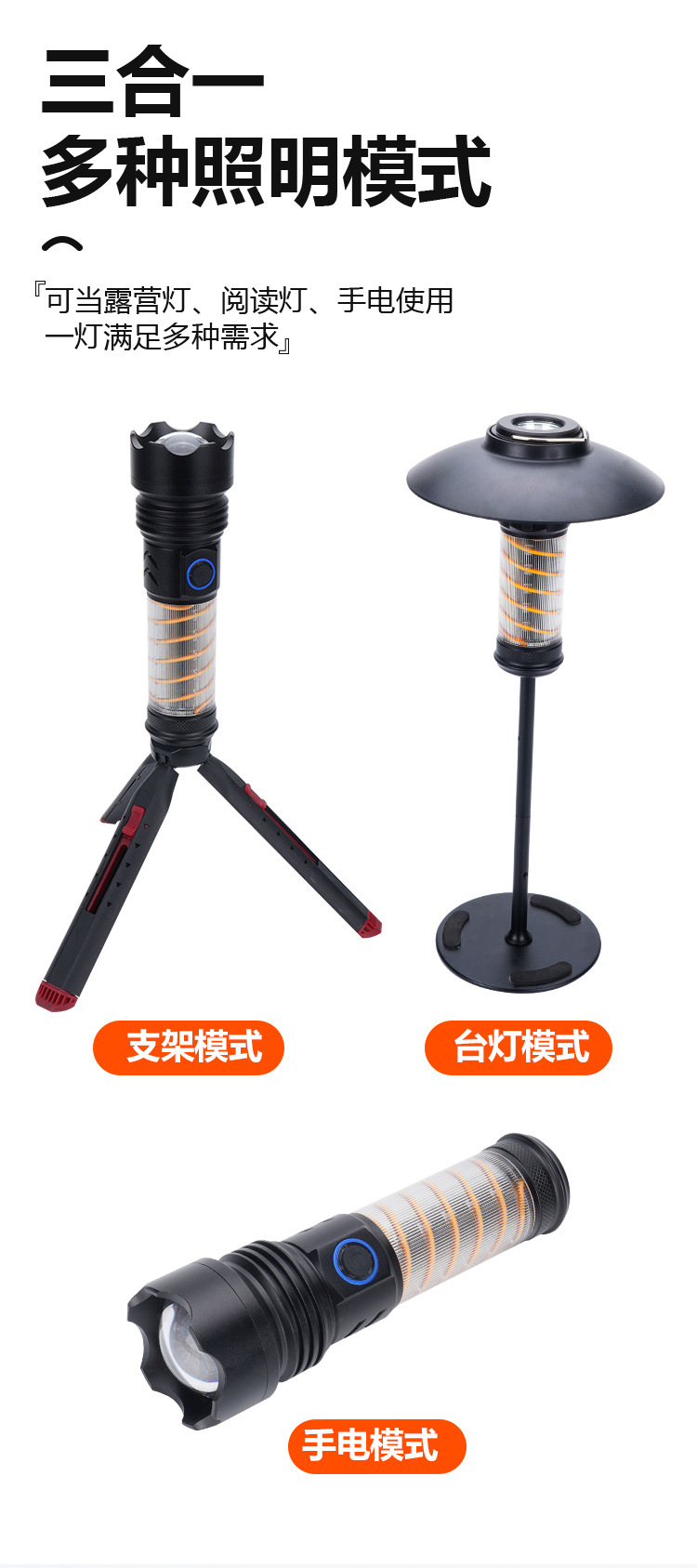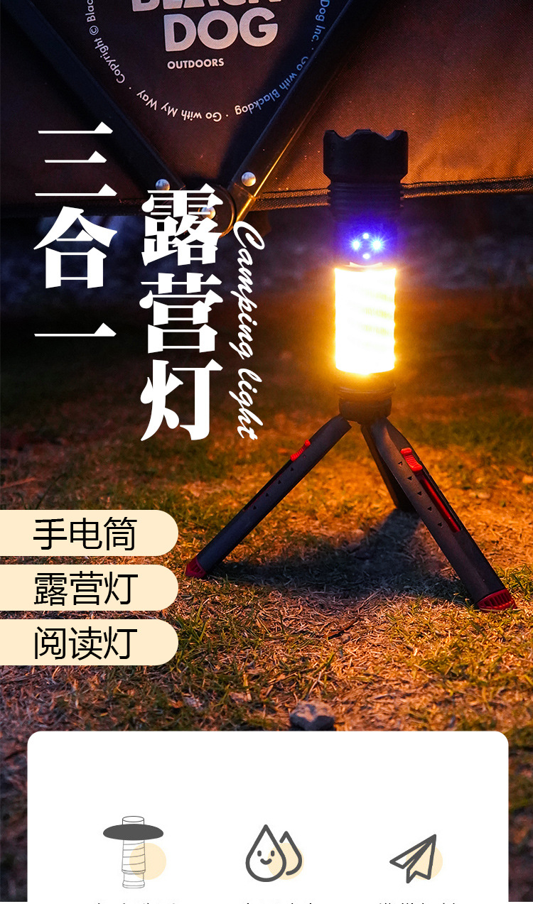 • 브래킷 쓰리인원 손전등 캠핑 램프 (대기 램프) + 삼각 브래킷
