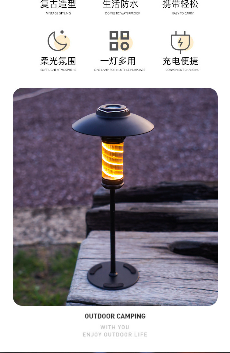 야외 캠핑 조명 긴 내구성 복고풍 캠핑 캐노피 분위기 조명 LED 충전 조명 캠프 텐트 교수형 조명