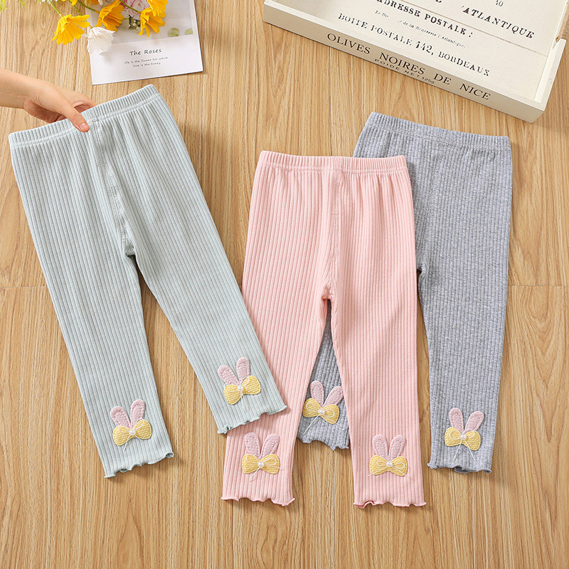 INS 소녀를위한 한국식 동대문 레깅스 봄 가을 순면 바지 여성용 아기 토끼 바지 겉옷