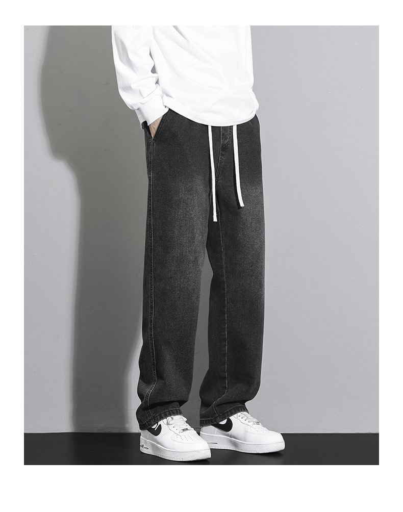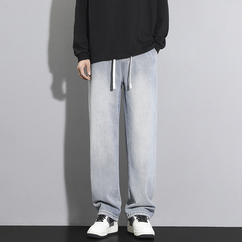 부미 하우스 남성용 # 가을 새로운 스트레치 허리 청바지 남성용 느슨한 스트레이트 하이 스트리트 패션 모든 매치 와이드 레그 팬츠