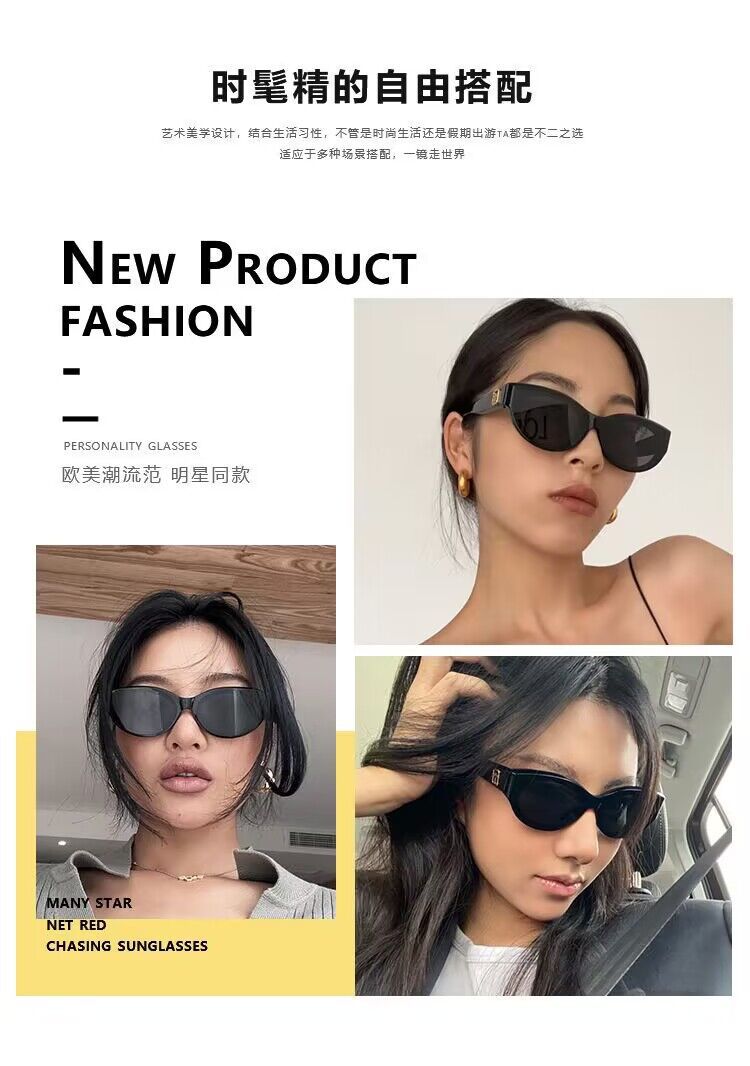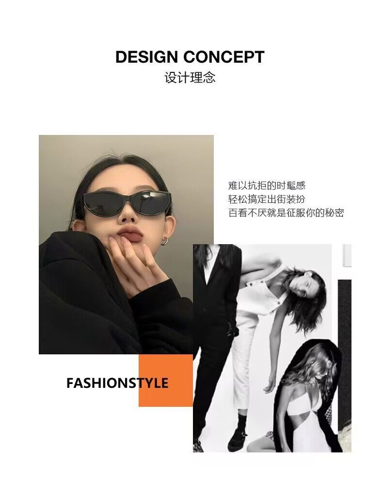독특한 블랙 좁은 프레임 선글라스 여성 과학 및 기술 액세서리 선글라스 고급 감각 유럽과 미국 패션 인터넷 빨간 안경 촬영스토어 가기