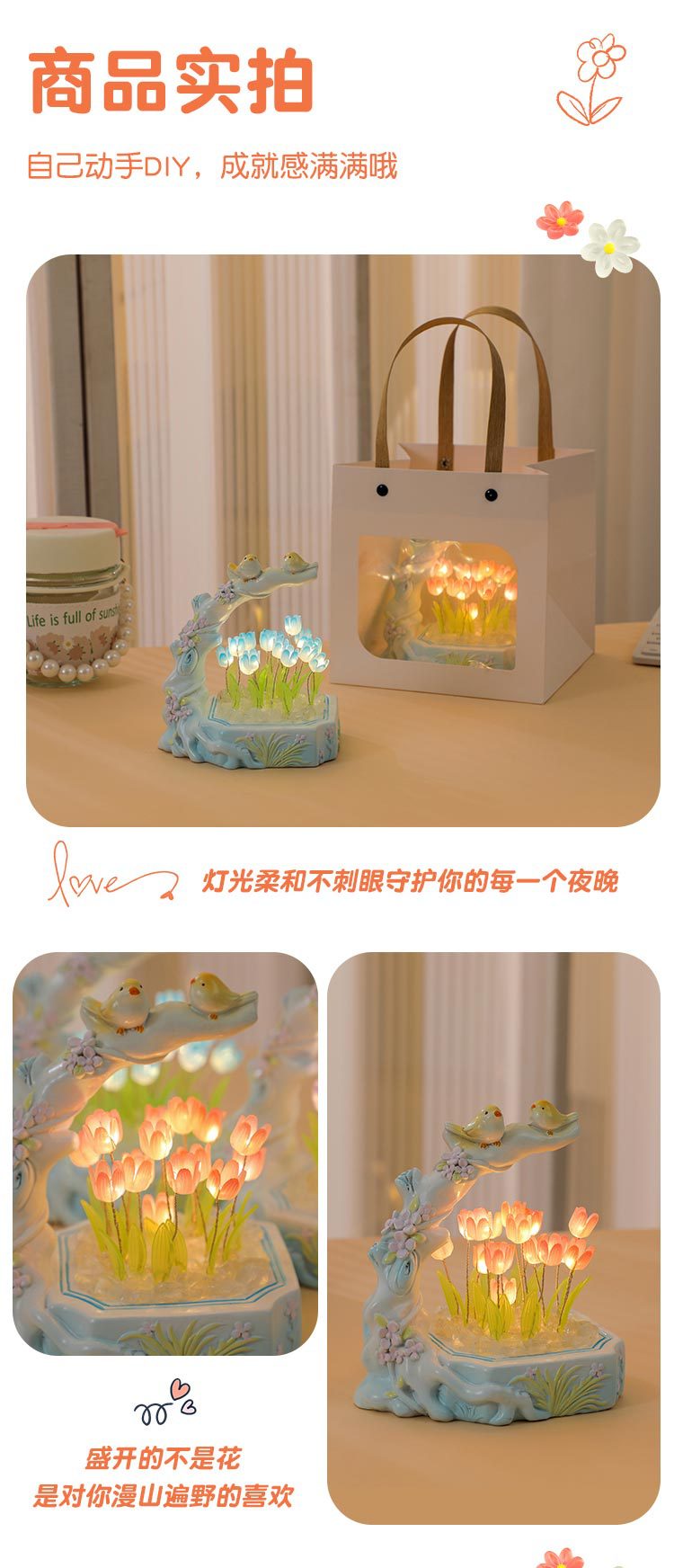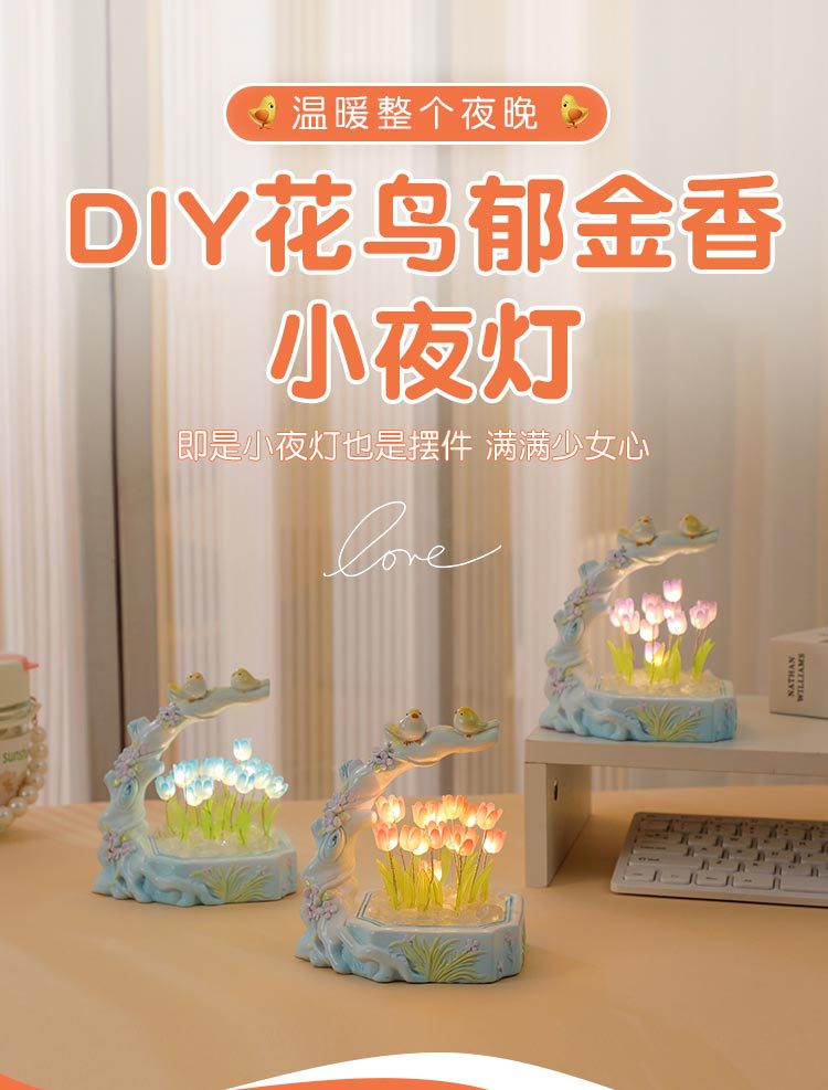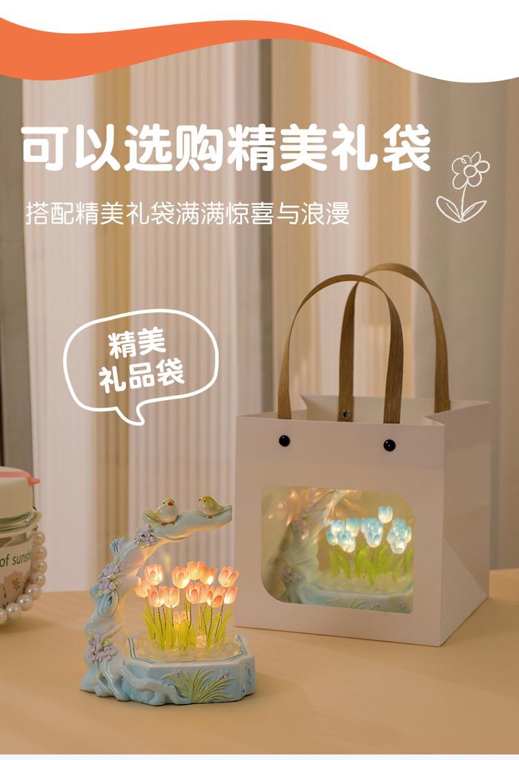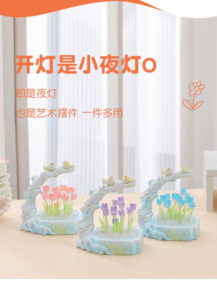 꽃과 새 튤립 DIY 야간등 창의적인 장식품 데스크탑 장식 공예품 축제 분위기 선물 기념품스토어 가기