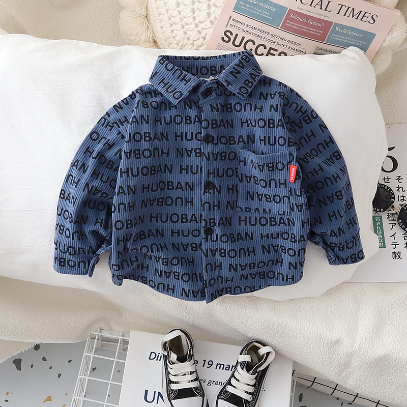 秋季童装2023年新款字母长袖衬衫男女童韩版宽松纯棉字母洋气外套