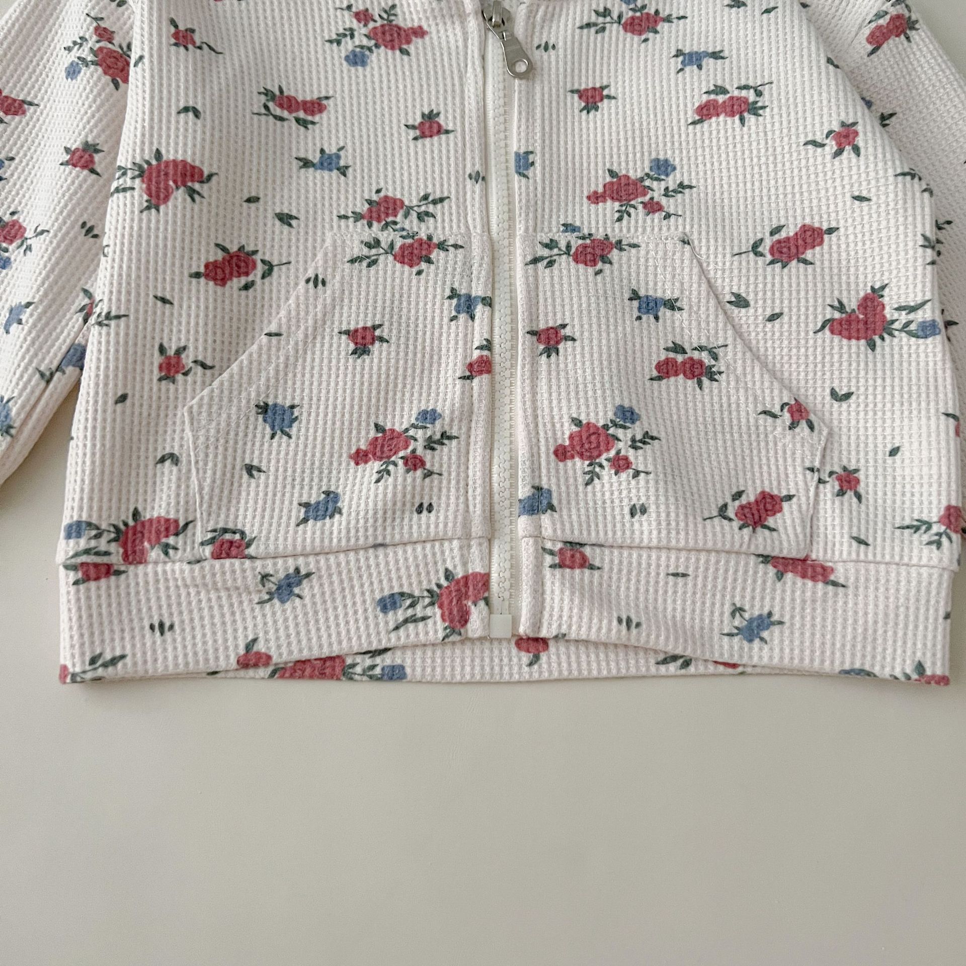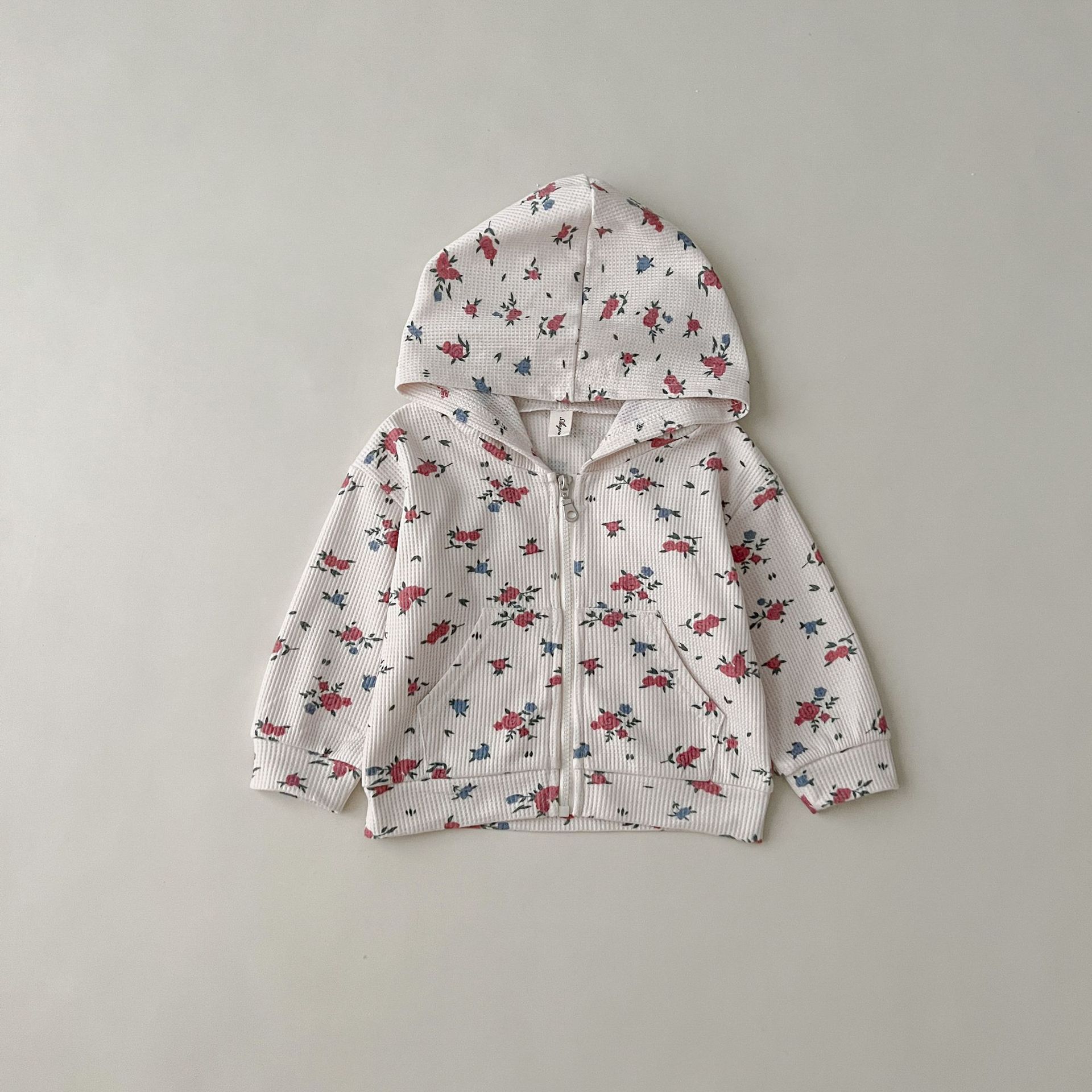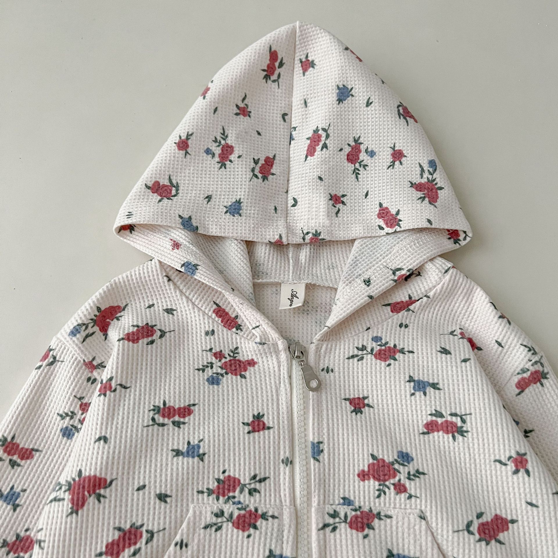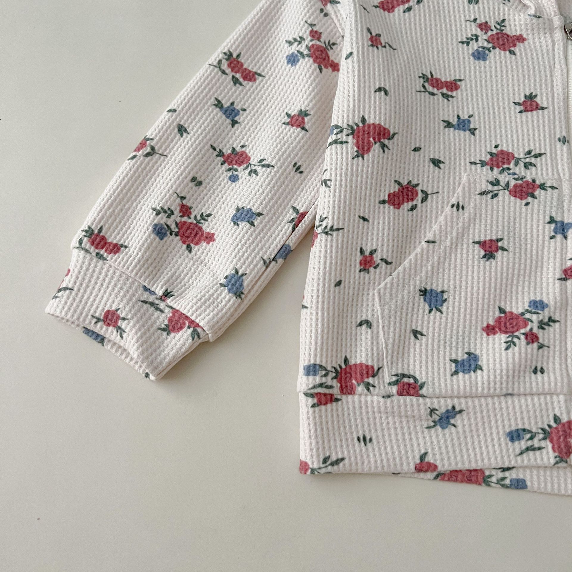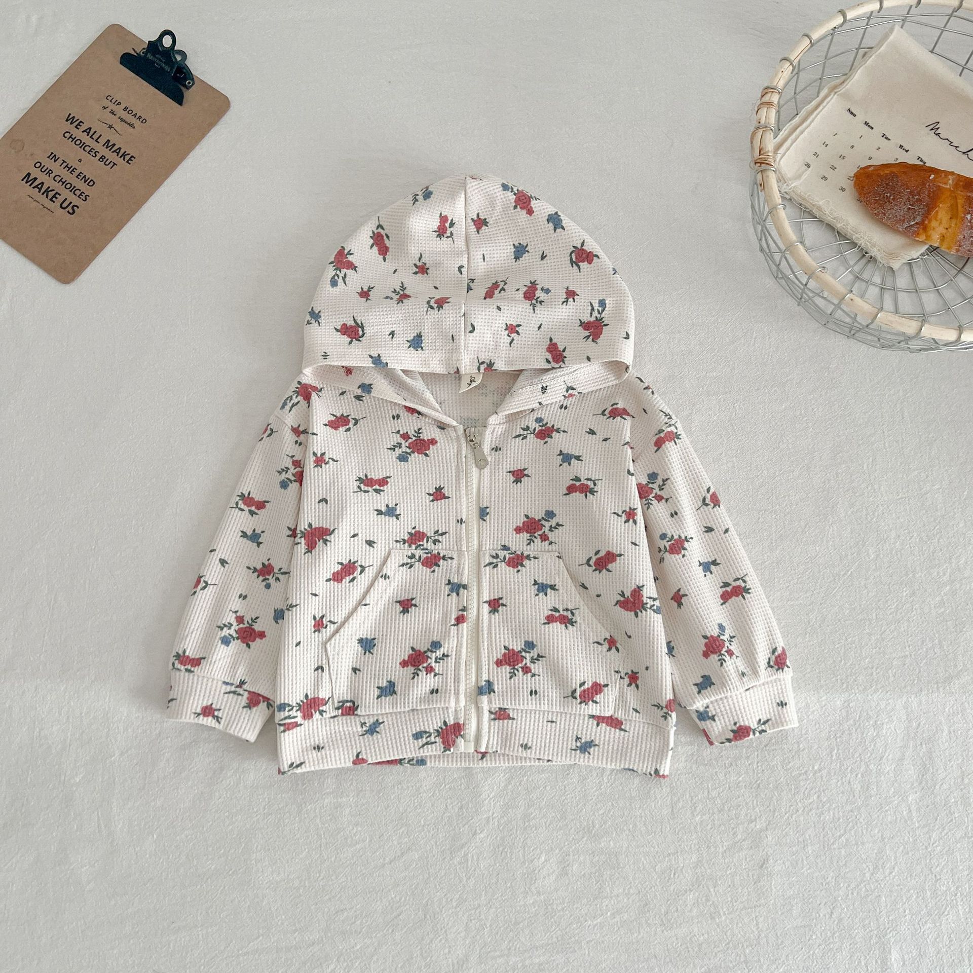 2024년 가을 여아용 한국 스타일 꽃무늬 큰 포켓 후드 지퍼 가디건 아동복스토어 가기