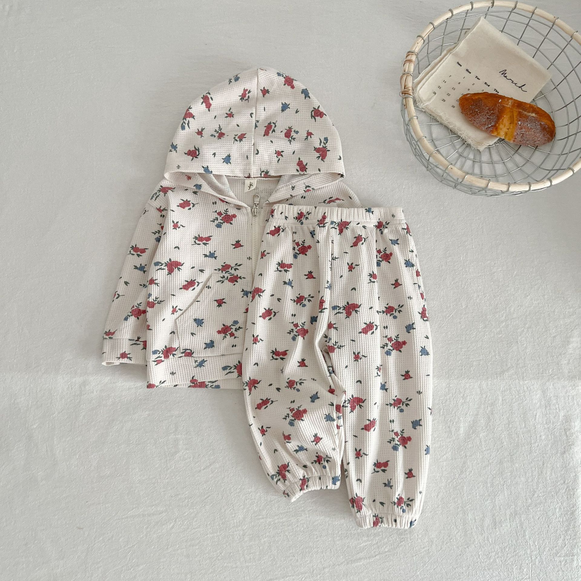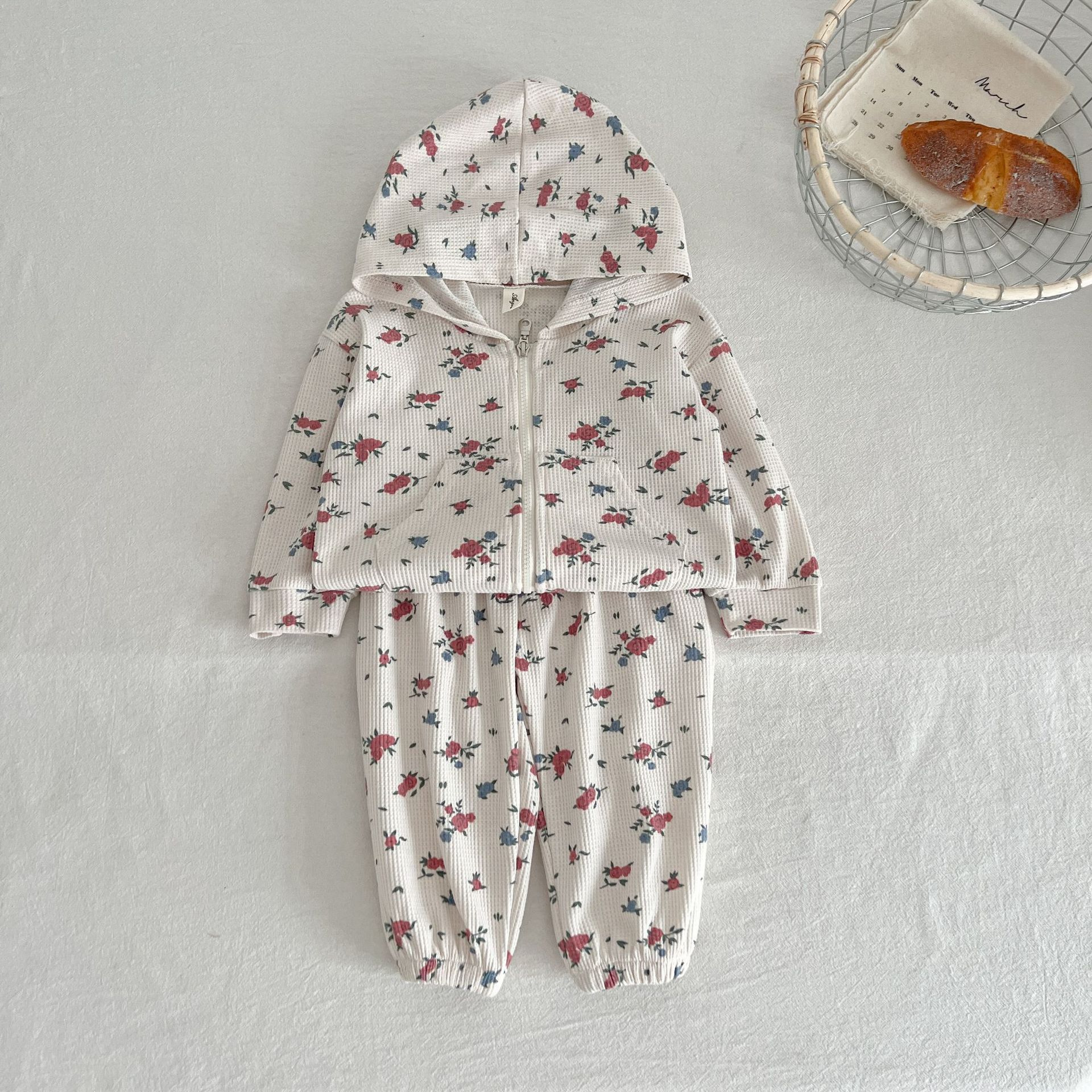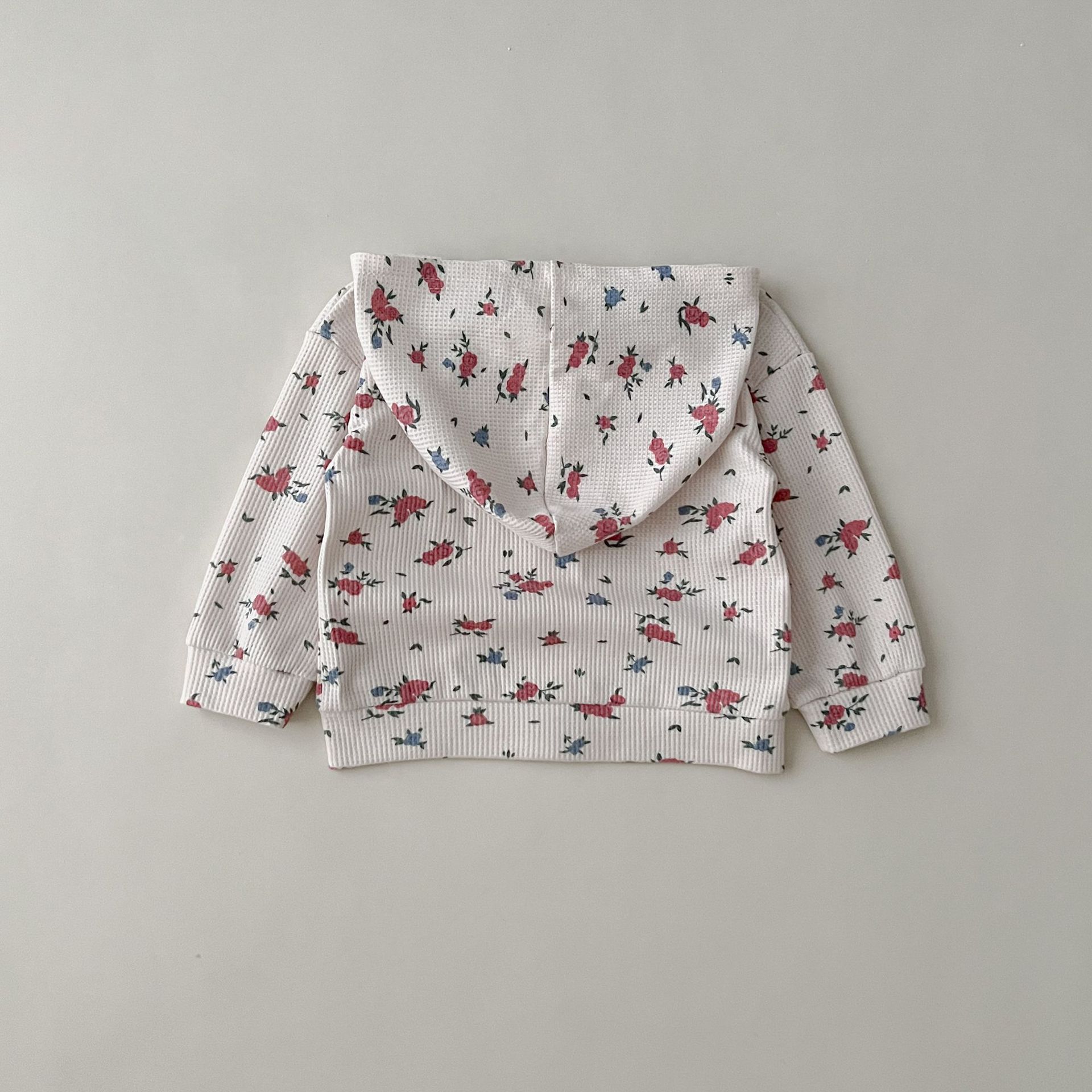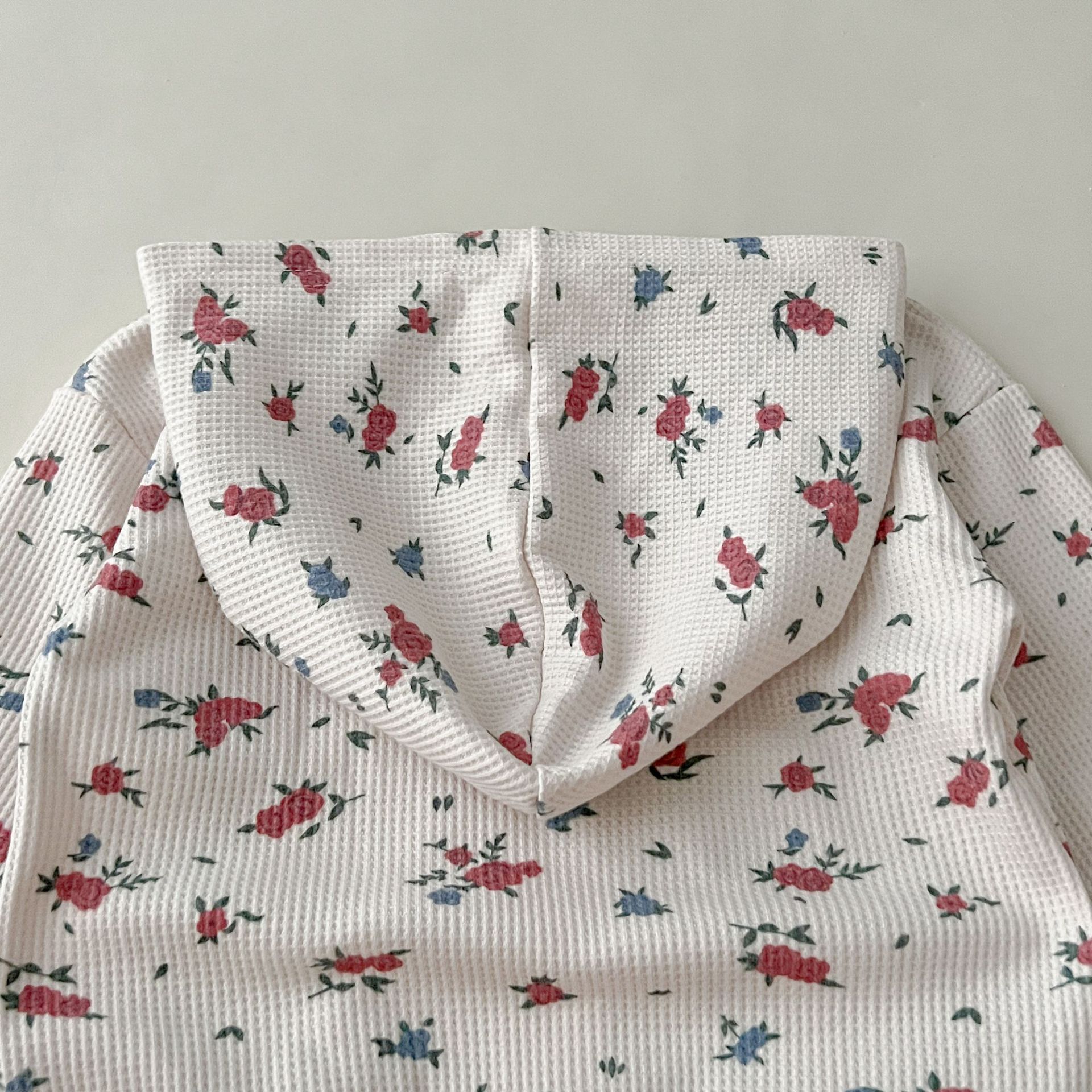 2024년 가을 여아용 한국 스타일 꽃무늬 큰 포켓 후드 지퍼 가디건 아동복스토어 가기