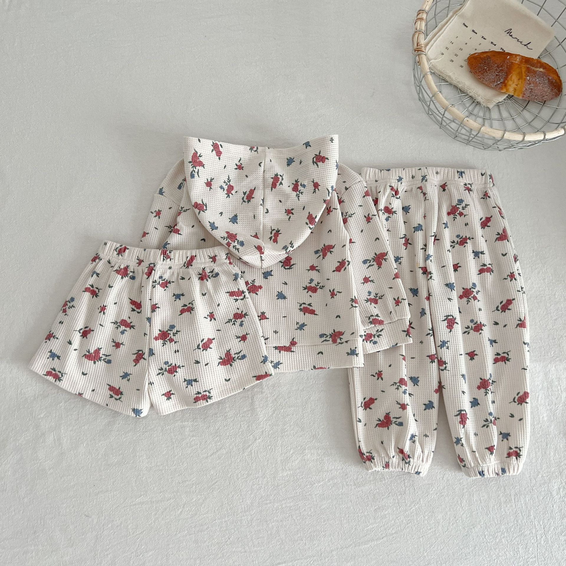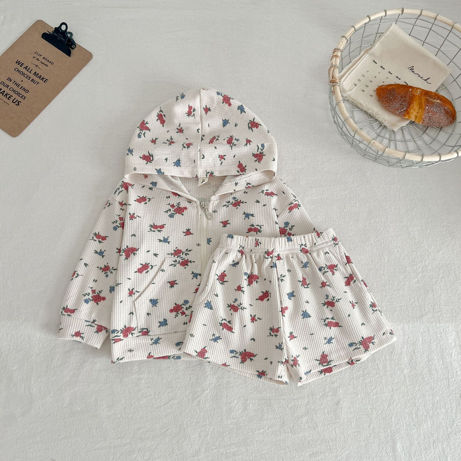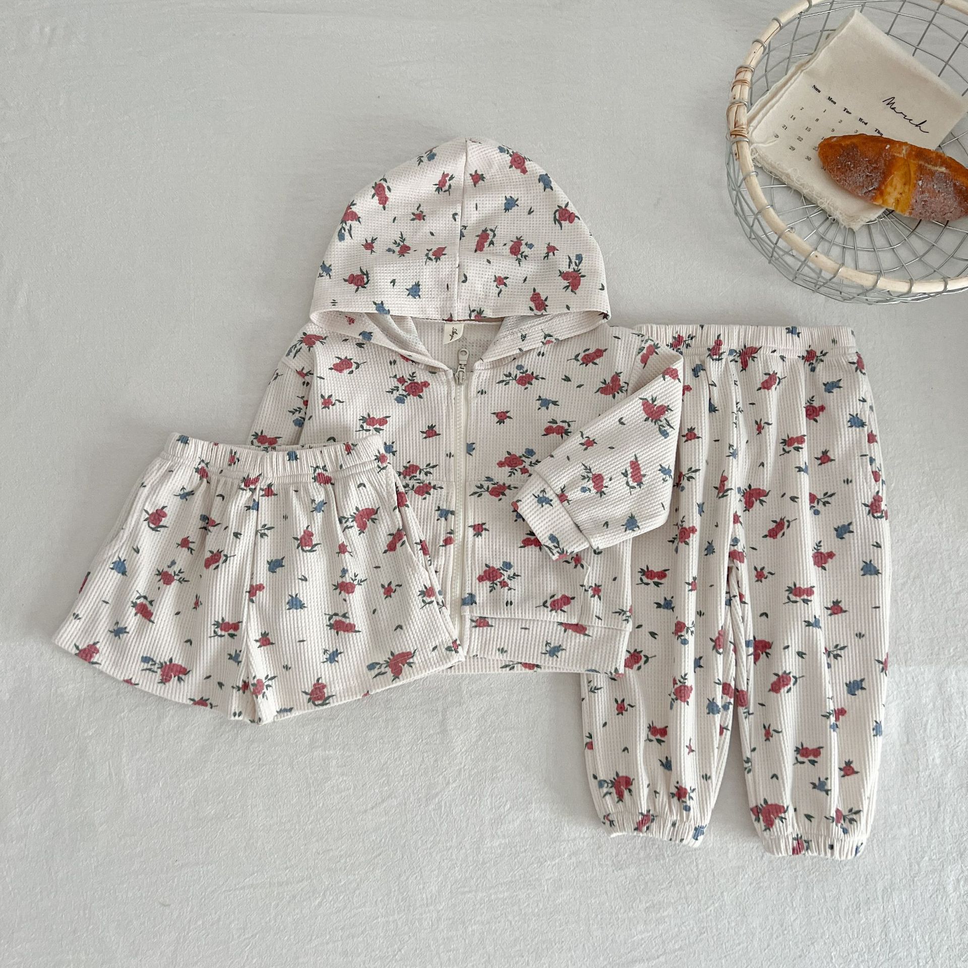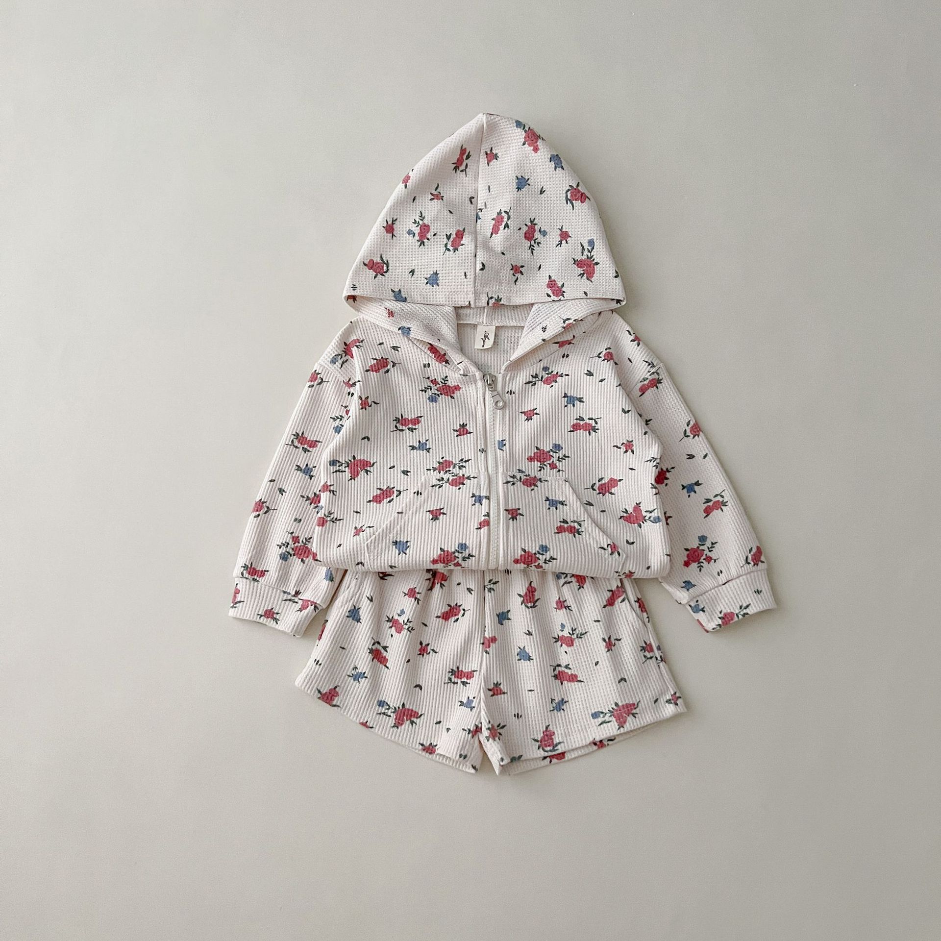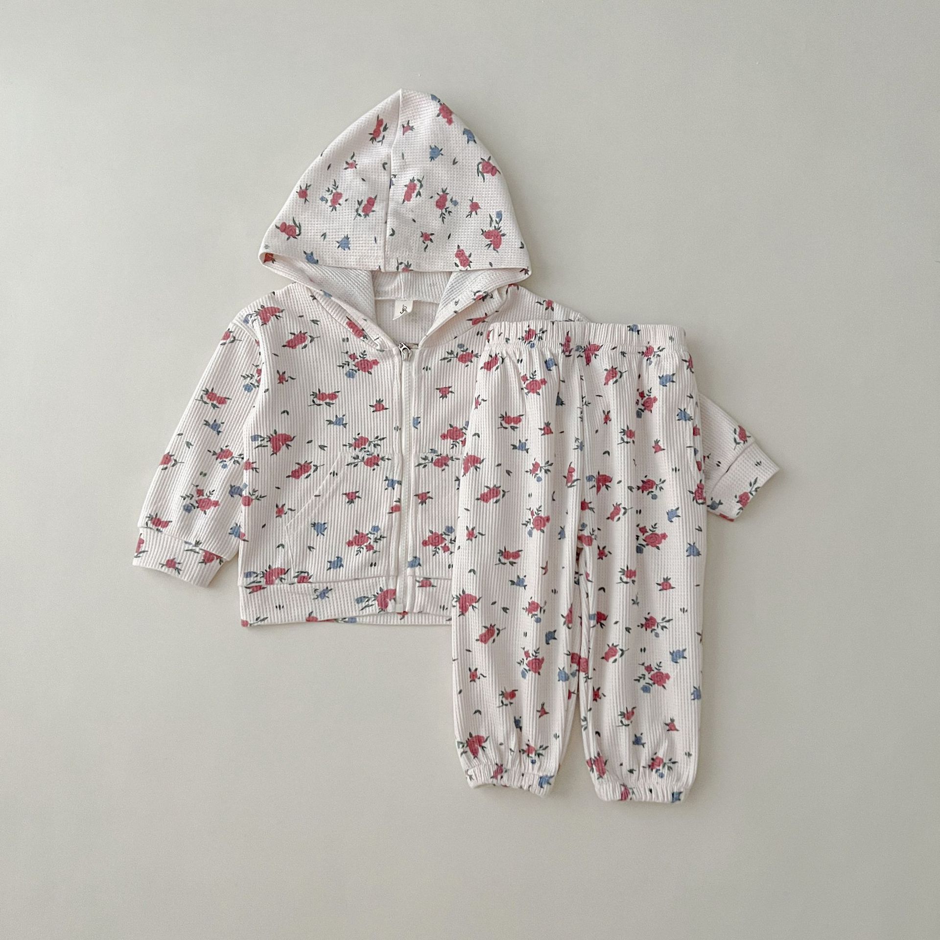 2024년 가을 여아용 한국 스타일 꽃무늬 큰 포켓 후드 지퍼 가디건 아동복스토어 가기