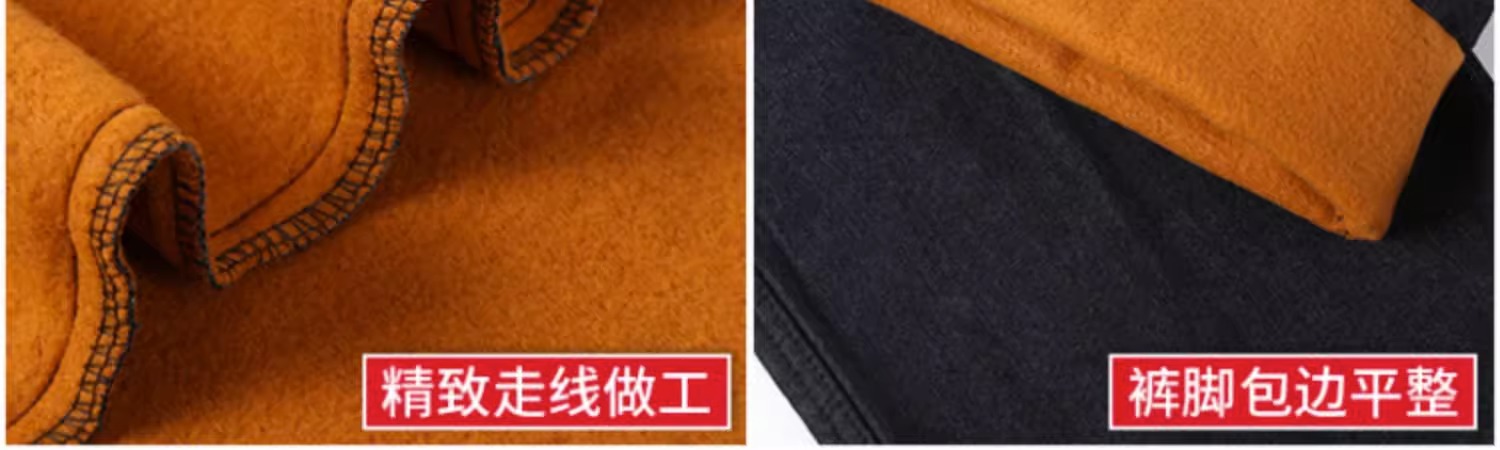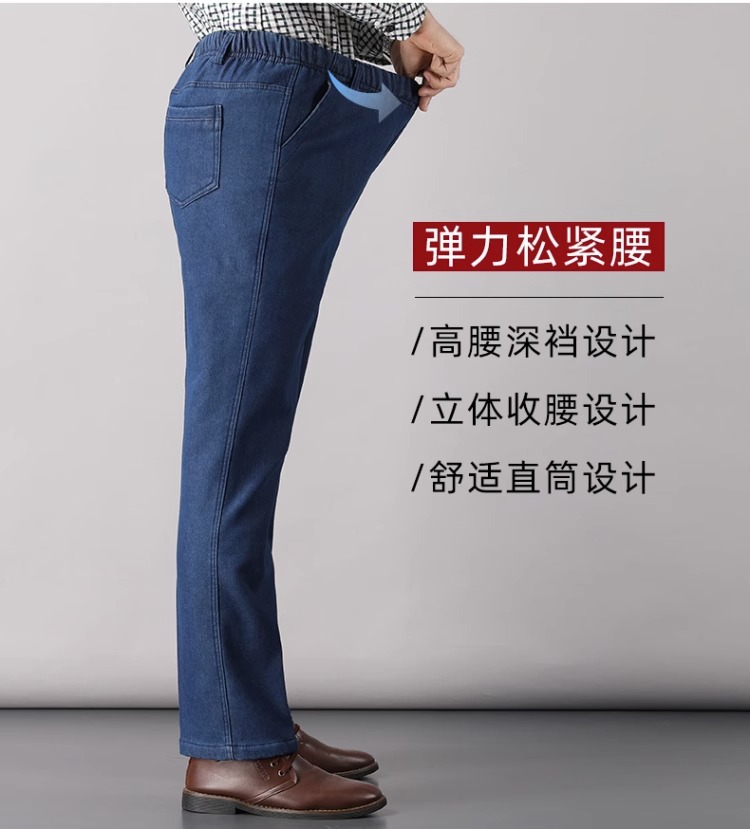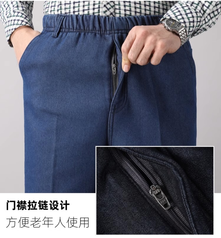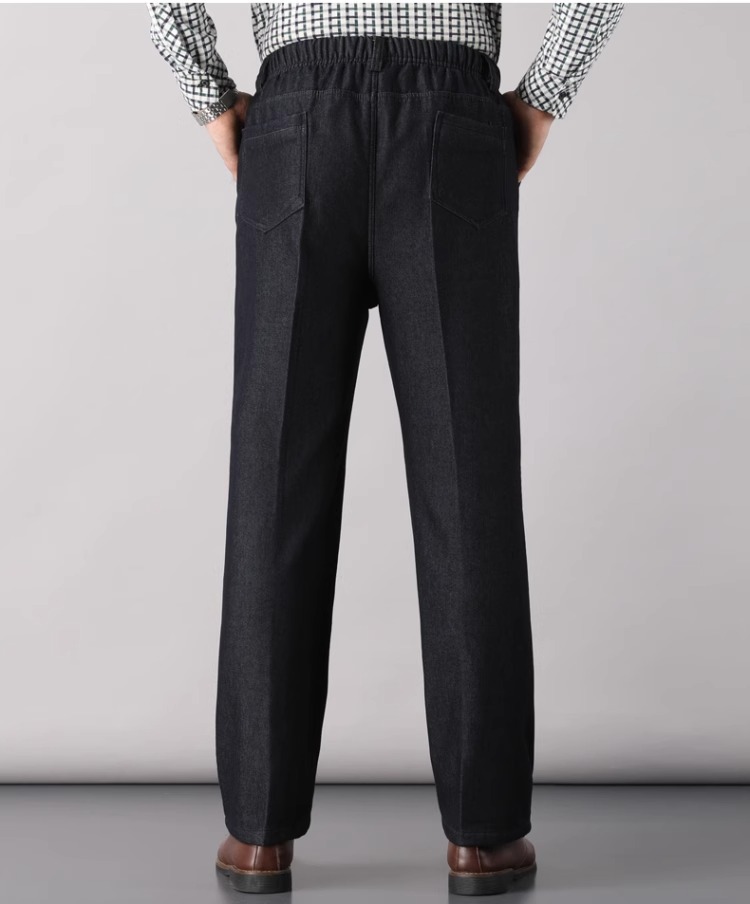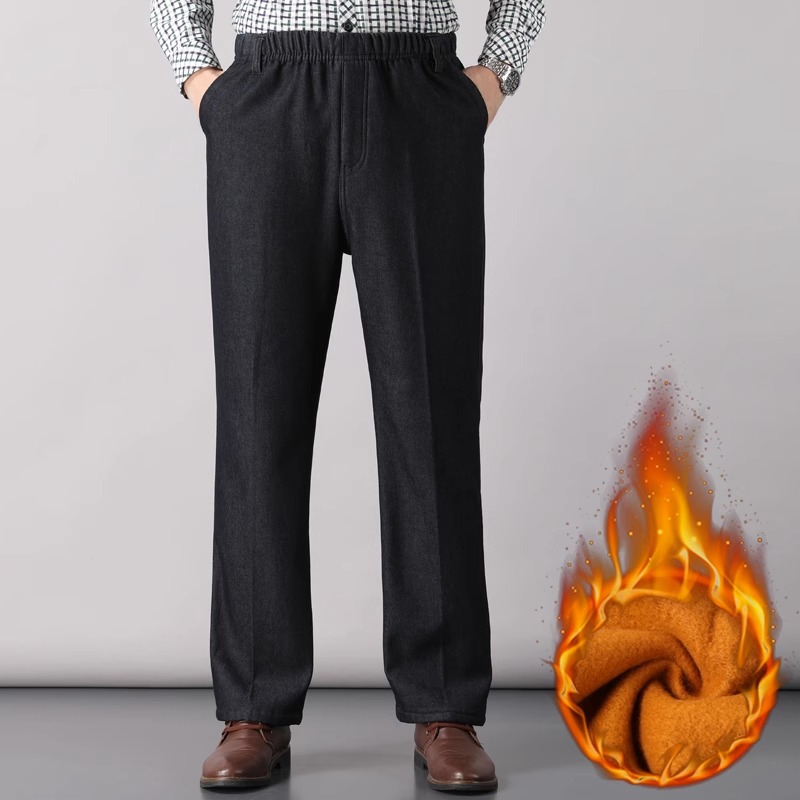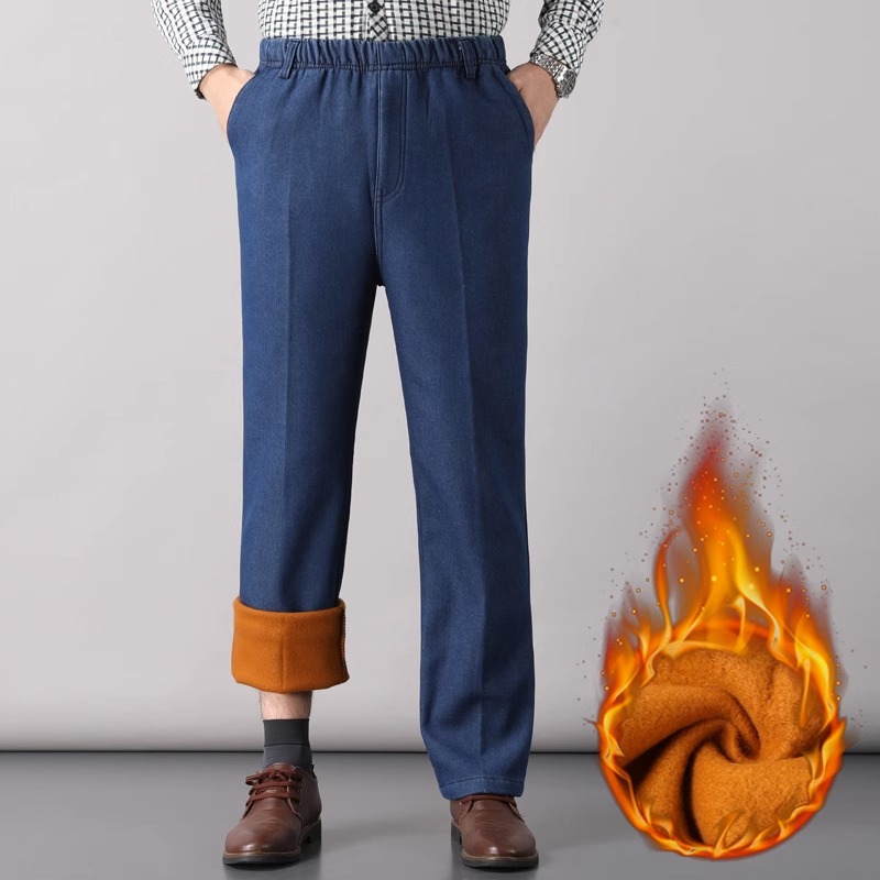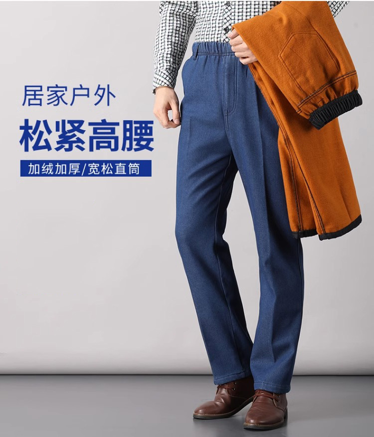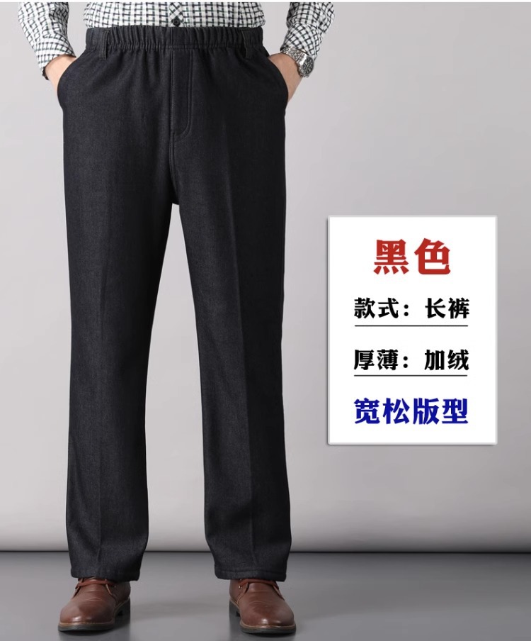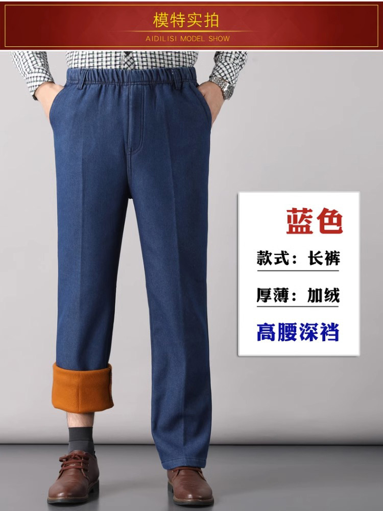 청바지 남자의 가을과 겨울 남자의 긴 바지 중년 기모 두꺼운 중년 및 노인 남자의 스트레이트 느슨한 아빠의 바지스토어 가기