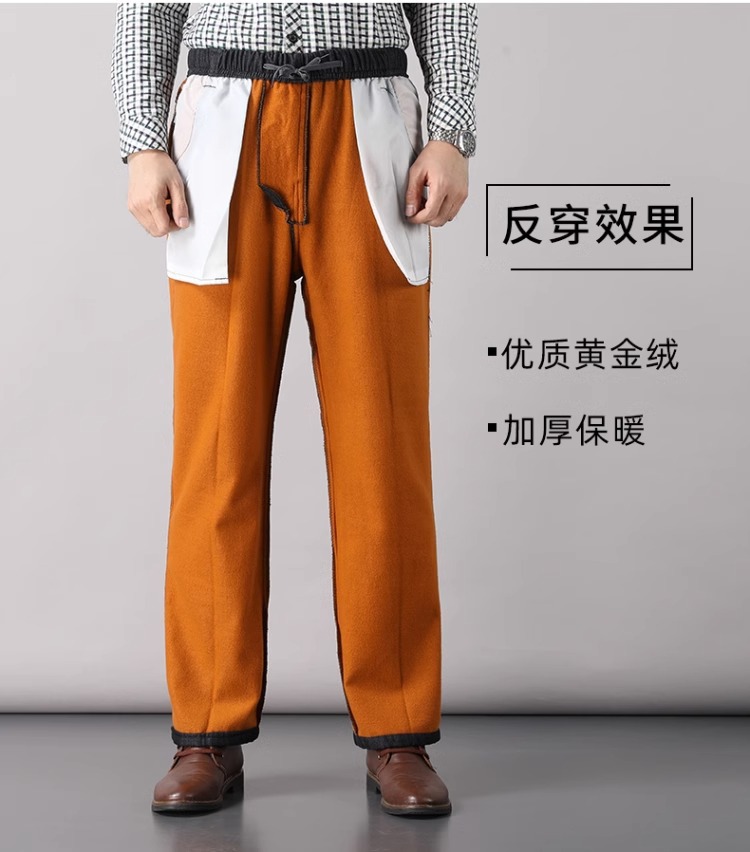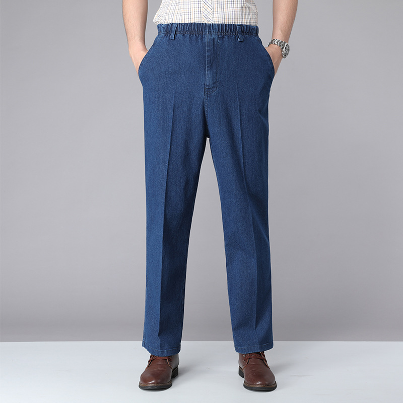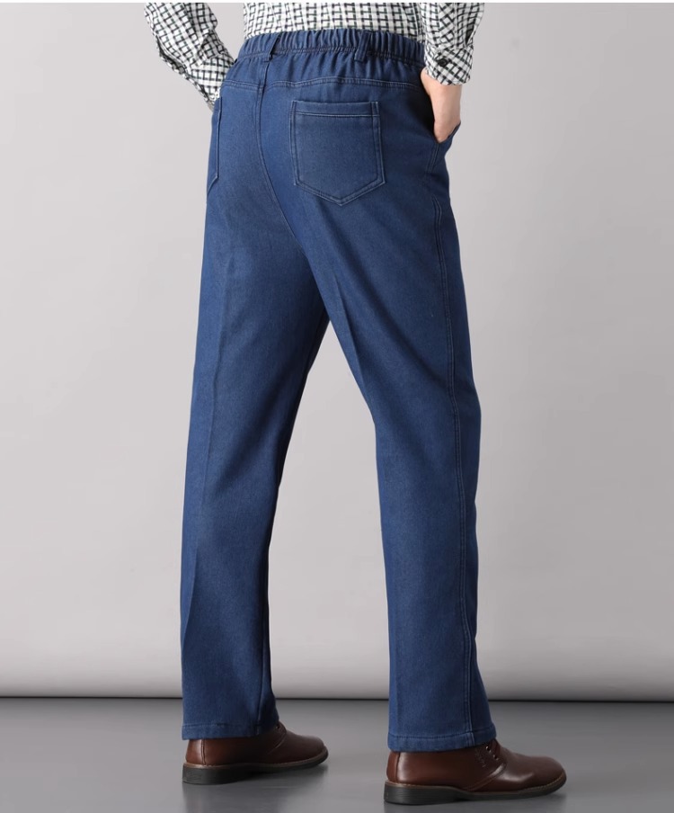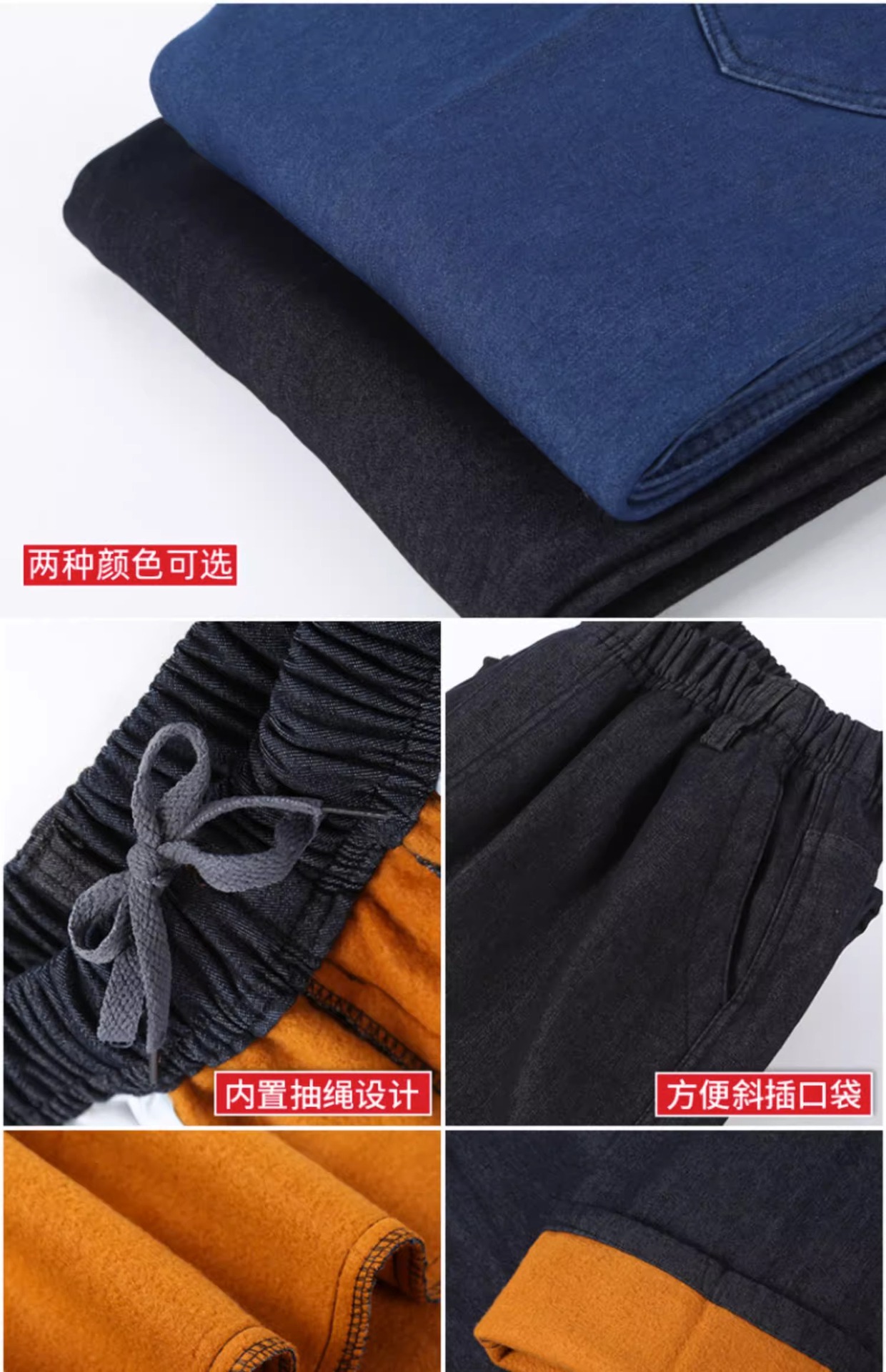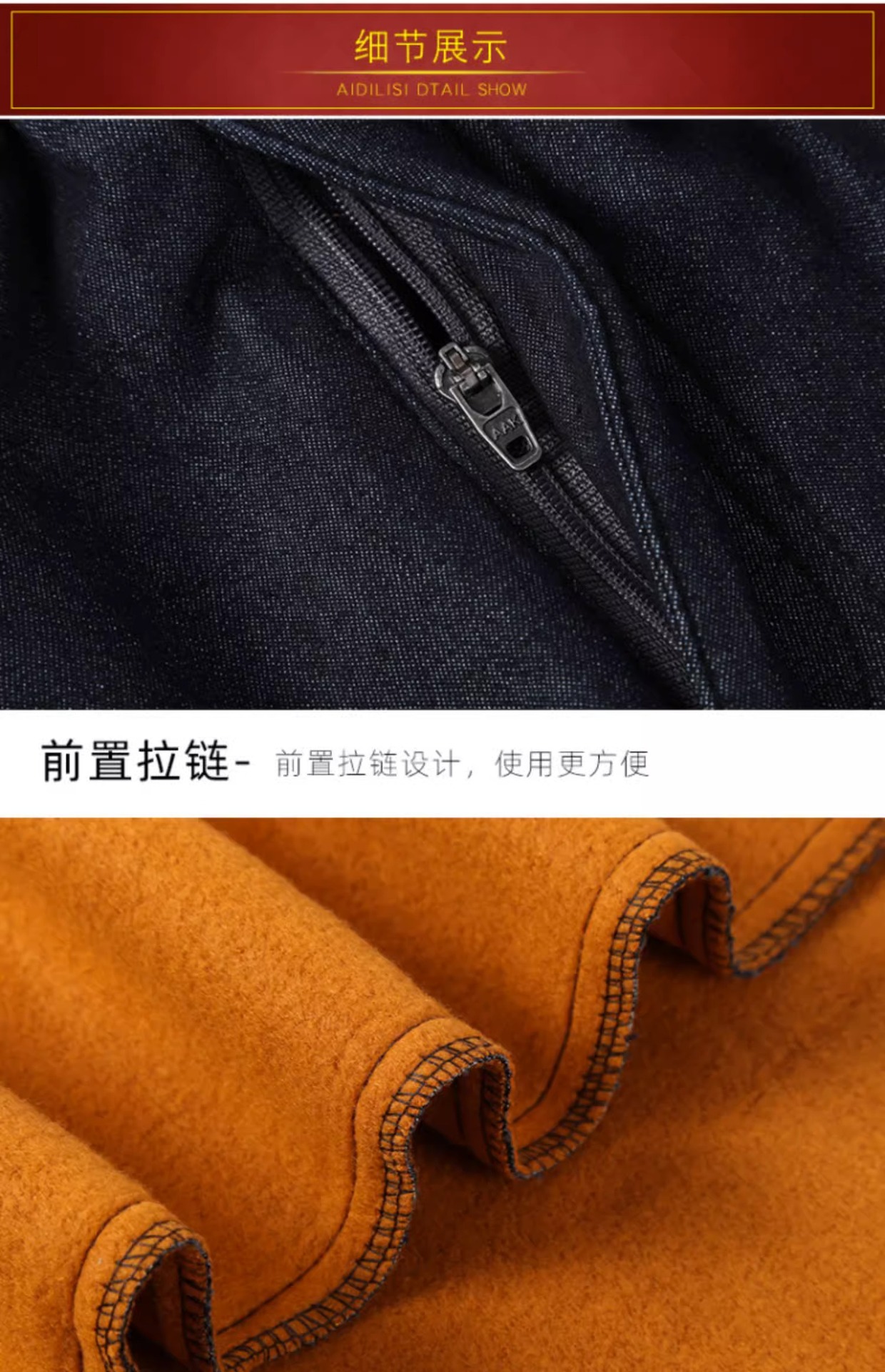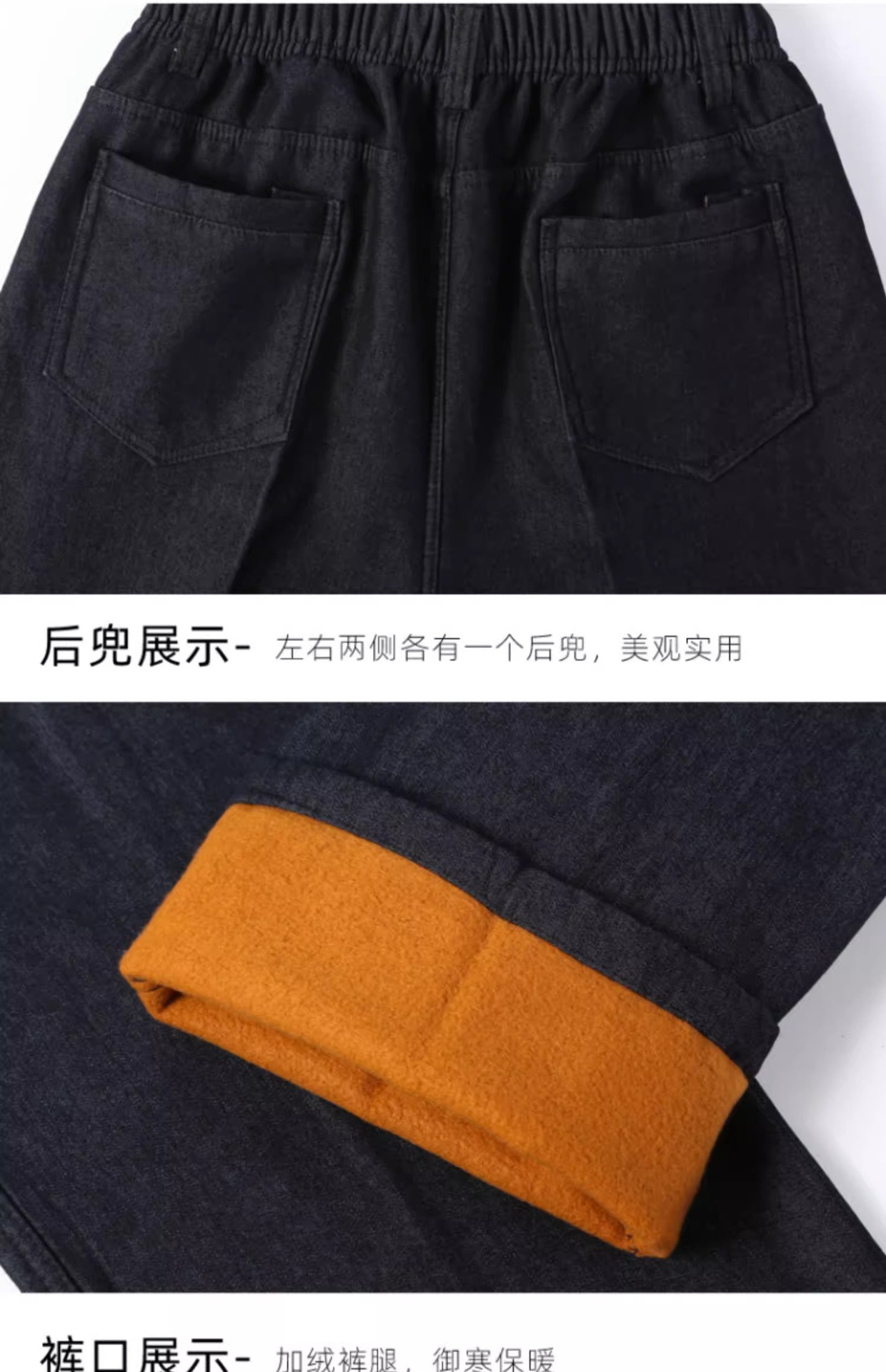 청바지 남자의 가을과 겨울 남자의 긴 바지 중년 기모 두꺼운 중년 및 노인 남자의 스트레이트 느슨한 아빠의 바지스토어 가기