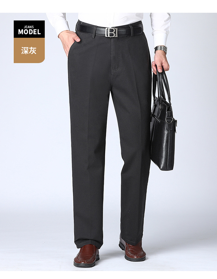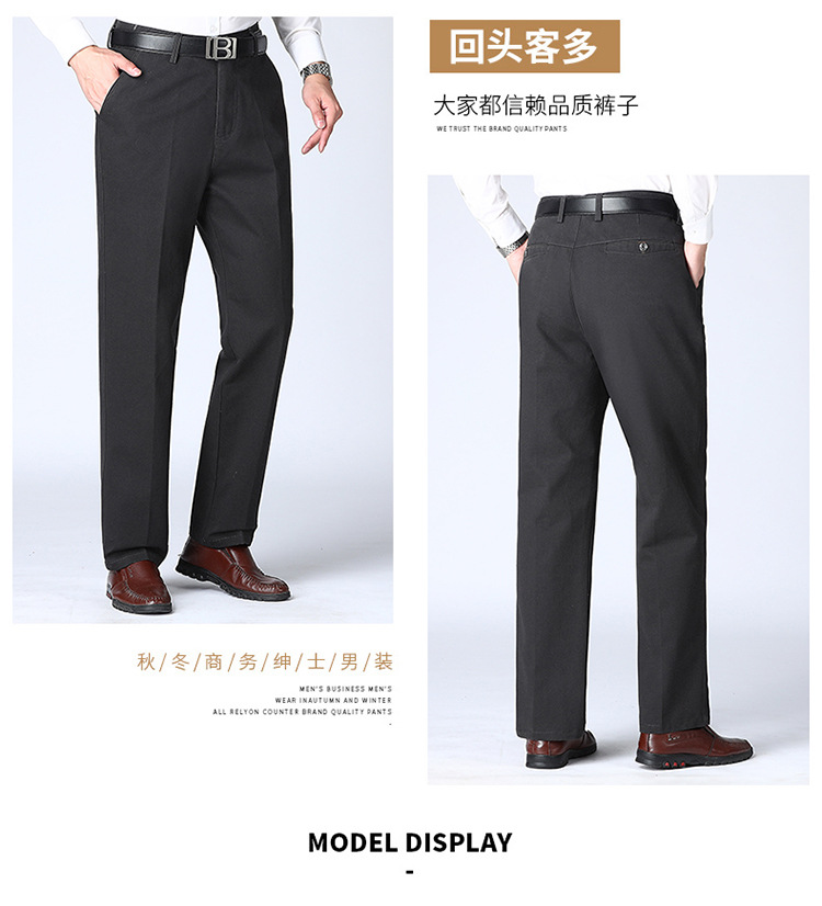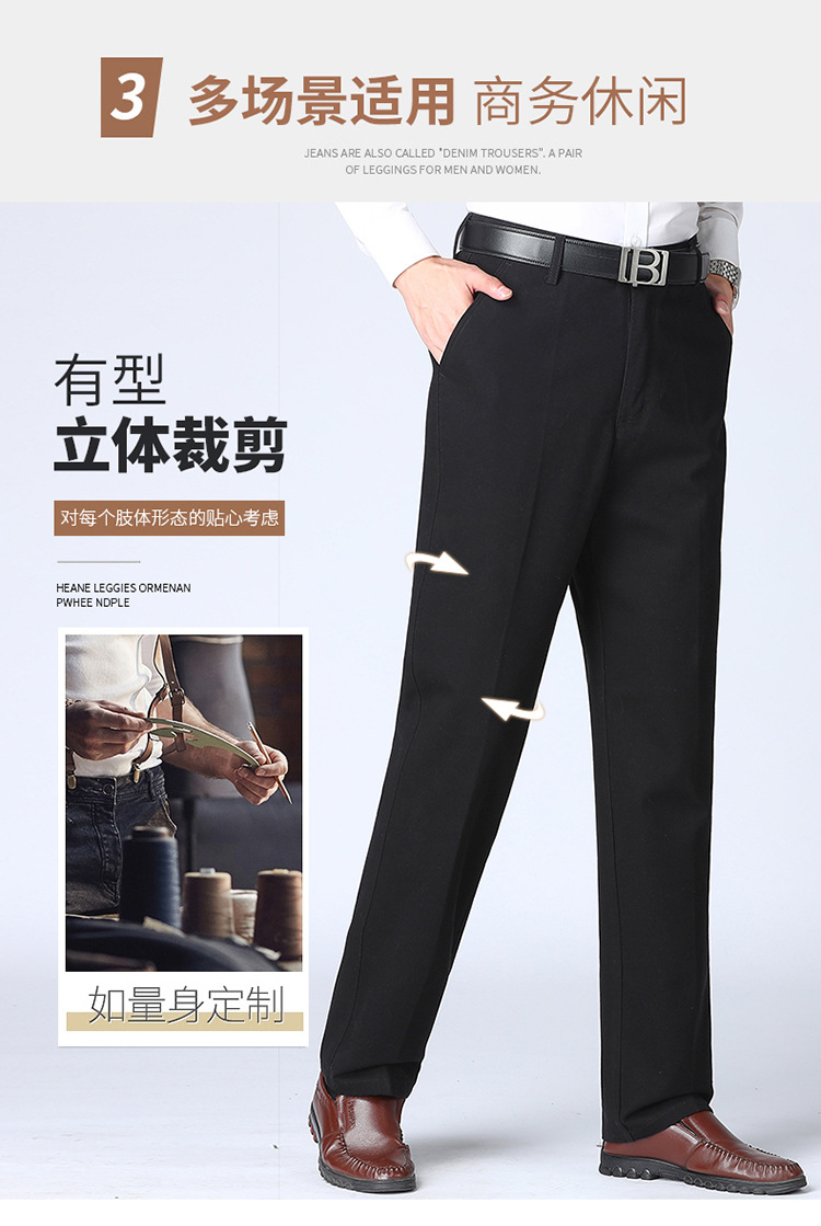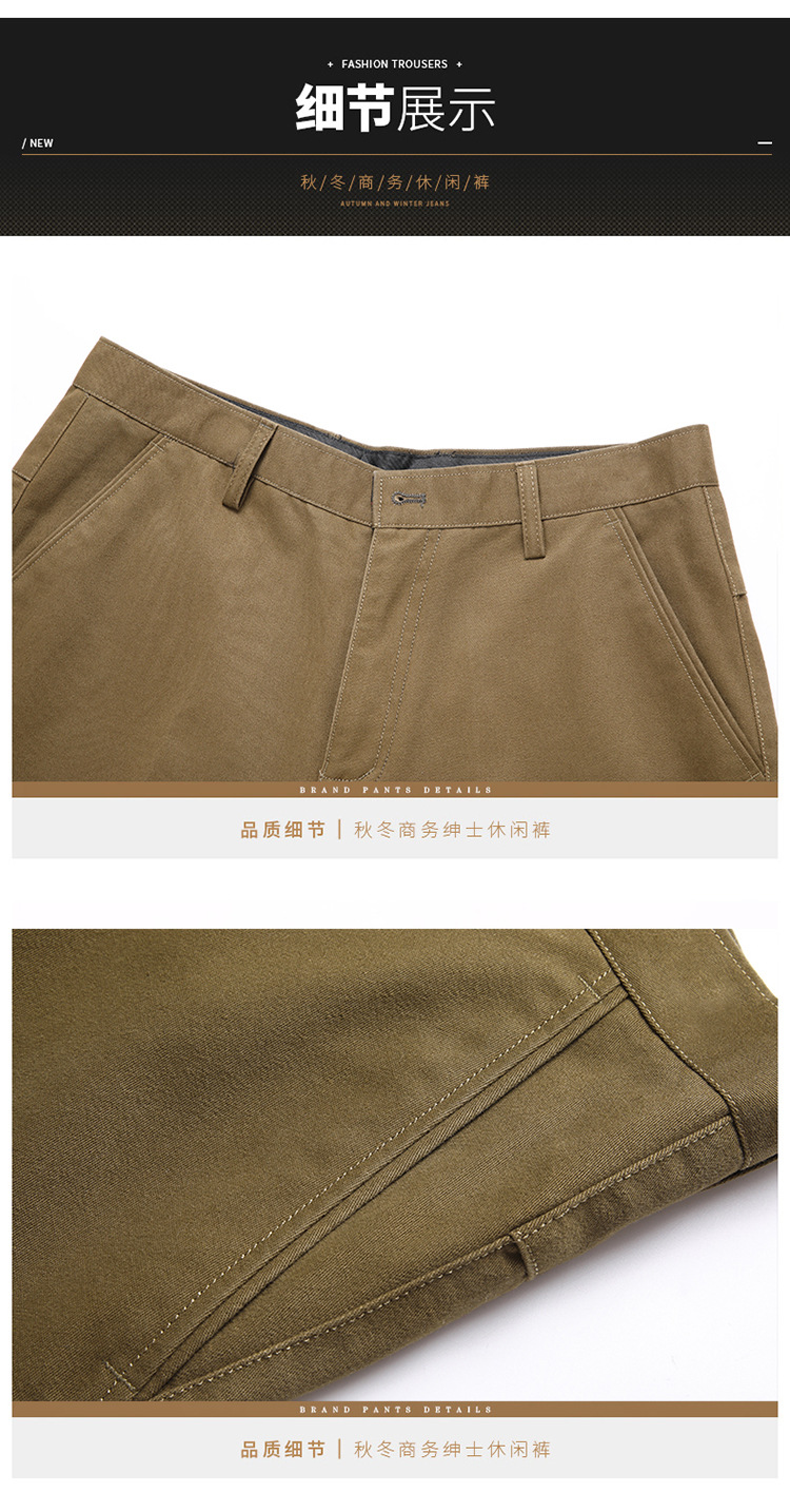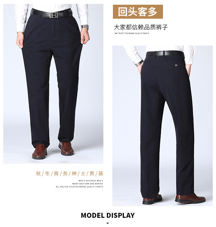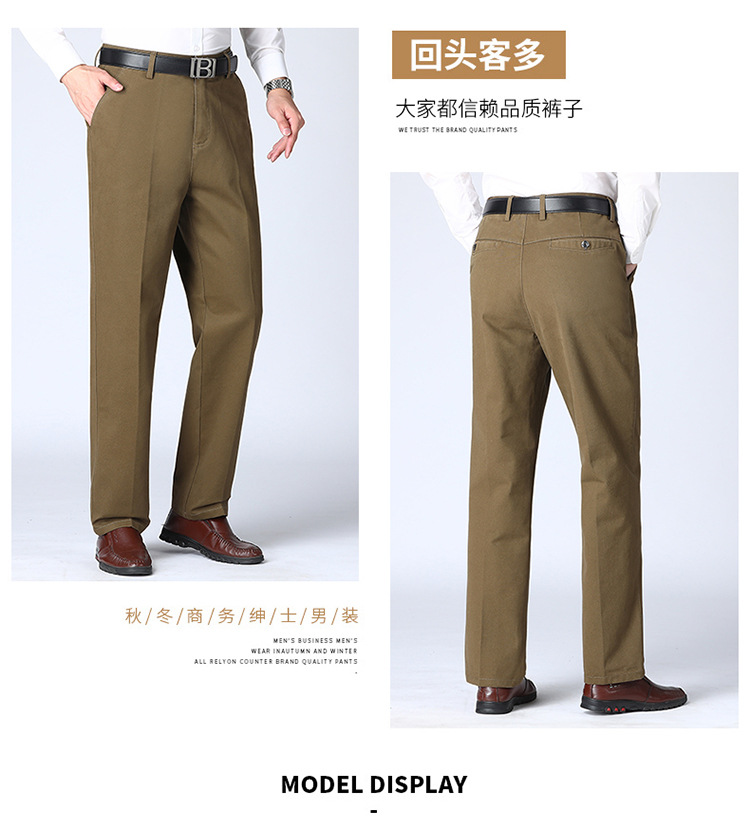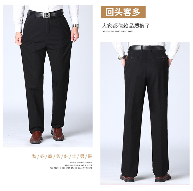 가을과 겨울 두꺼운 순면 남성 캐주얼 바지 하이 웨이스트 깊은 가랑이 정장 비즈니스 바지 신상품 기모 남성용 두꺼운 바지스토어 가기