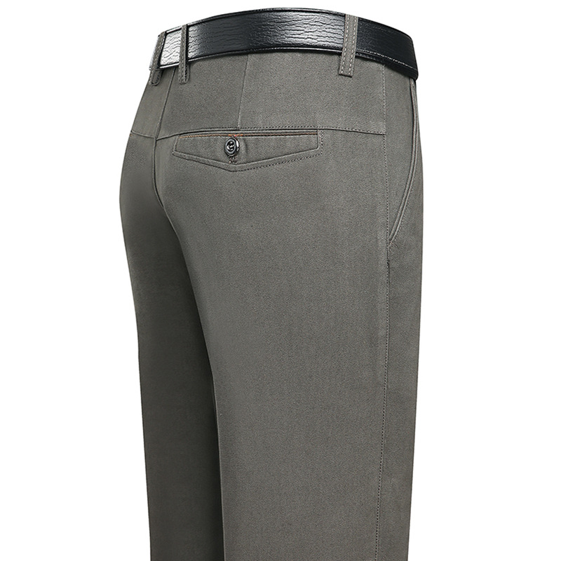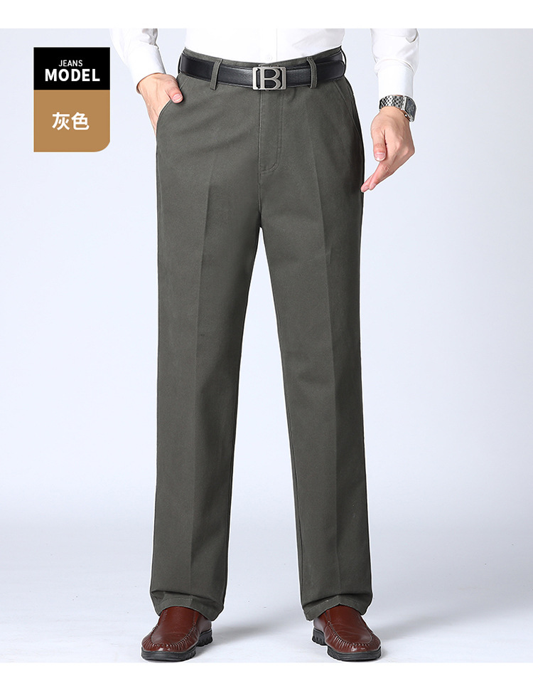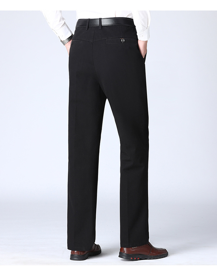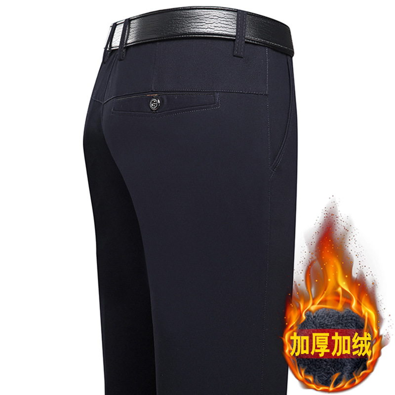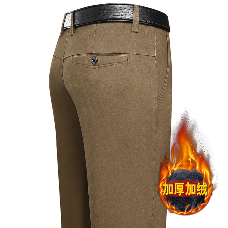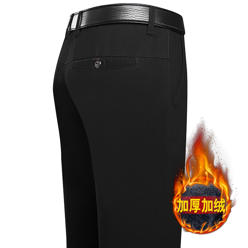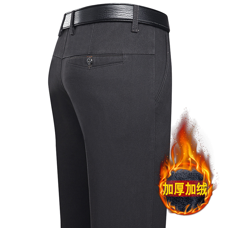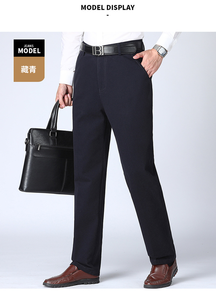가을과 겨울 두꺼운 순면 남성 캐주얼 바지 하이 웨이스트 깊은 가랑이 정장 비즈니스 바지 신상품 기모 남성용 두꺼운 바지