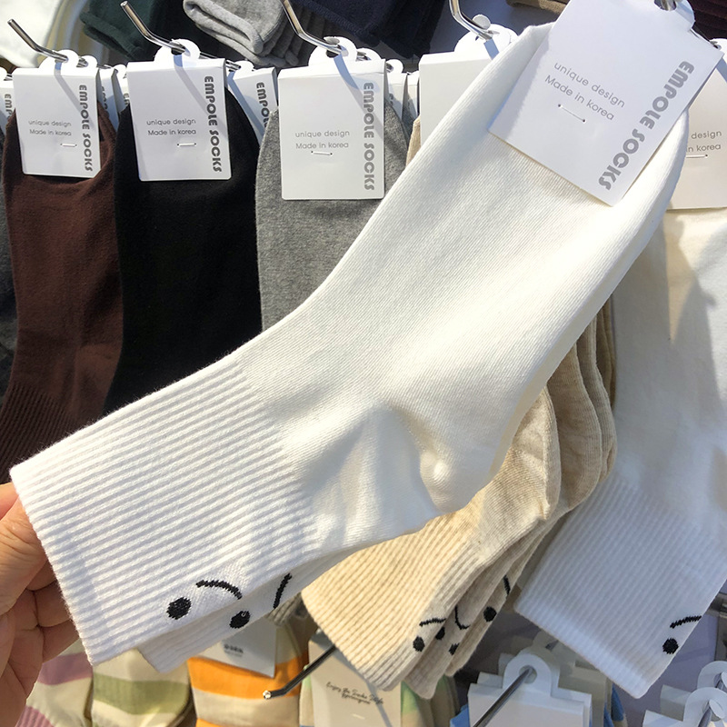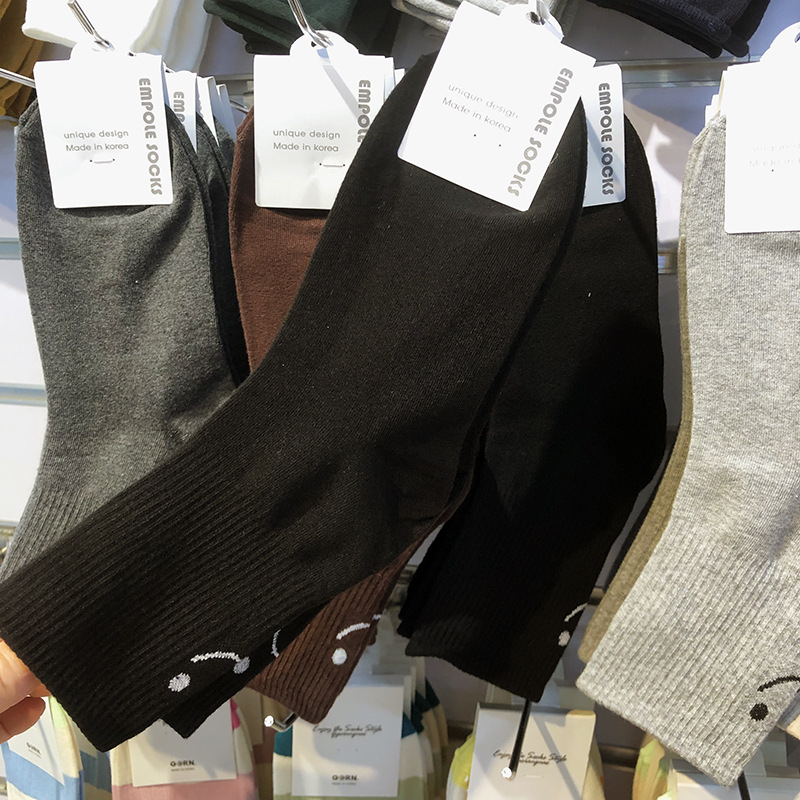 한국 EMPOLE 새로운 면 양말 행복 하 게 웃는 소녀 양말 간단한 스타일 검정과 흰색 회색 단색 중간 양말스토어 가기