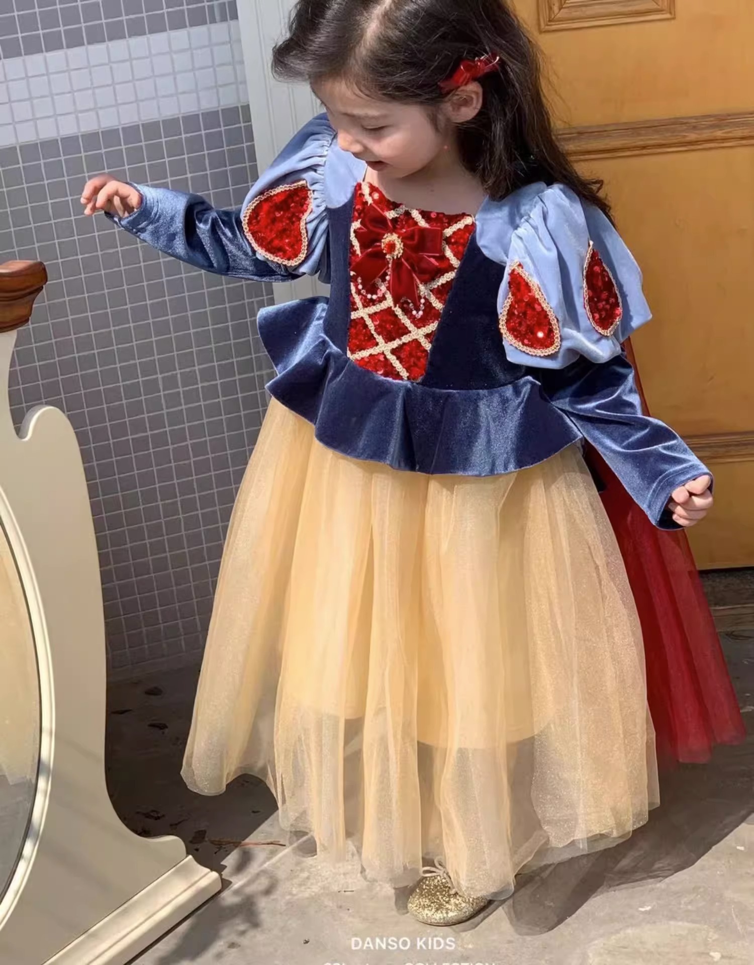 아기 소녀 접시 년 된 Nien 생일 하이 엔드 폰툰 원피스 소녀 백설 공주 원피스 가을 착용 아동복스토어 가기