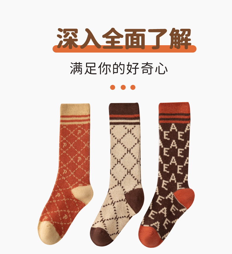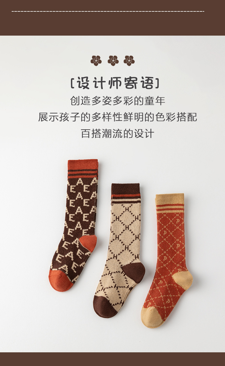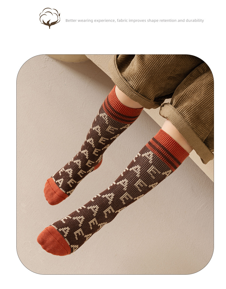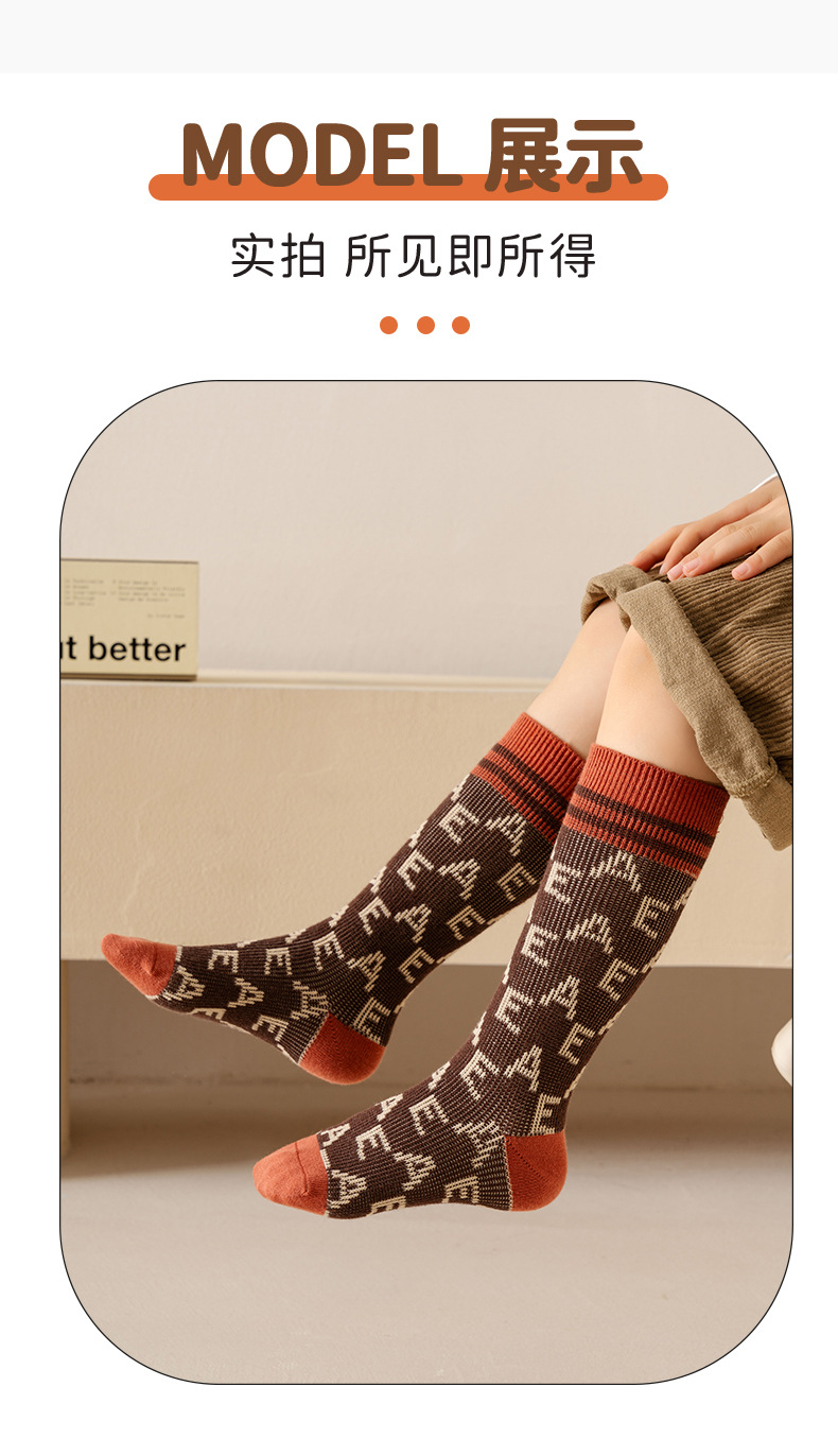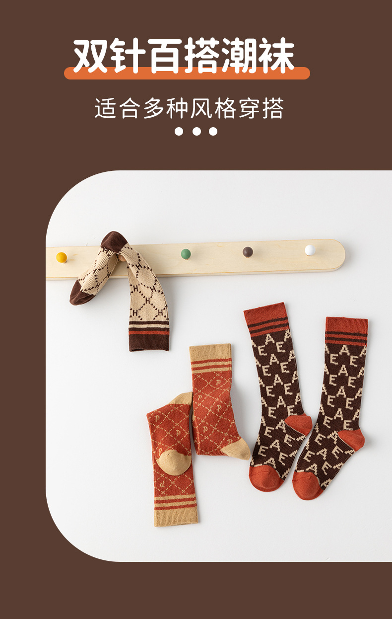이중 바늘 이중 라인 유아용 양말 가을 겨울용 체크무늬 알파벳 패션 롱 양말스토어 가기