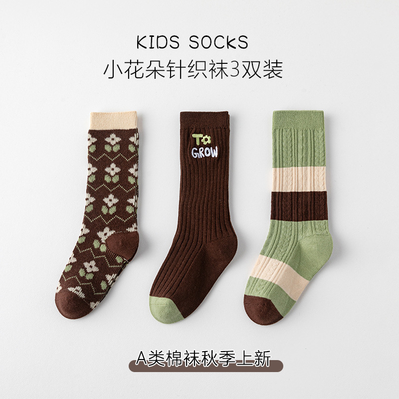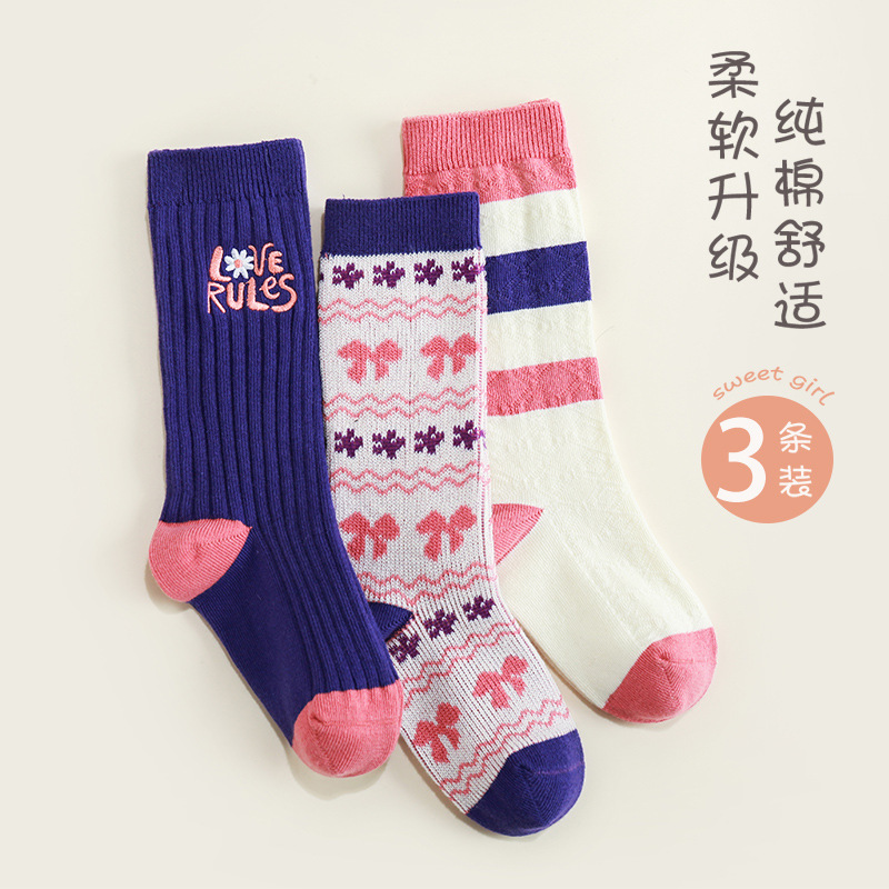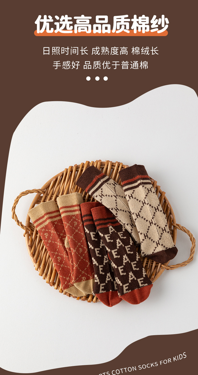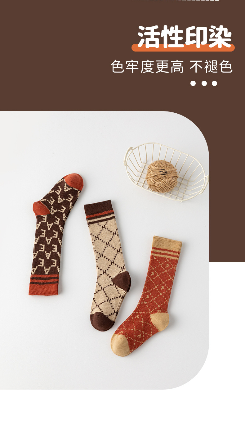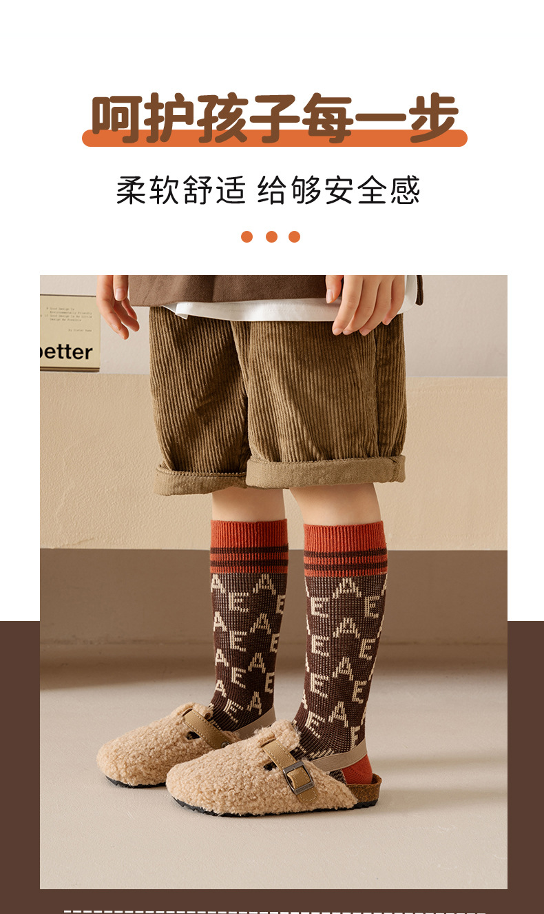 이중 바늘 이중 라인 유아용 양말 가을 겨울용 체크무늬 알파벳 패션 롱 양말스토어 가기