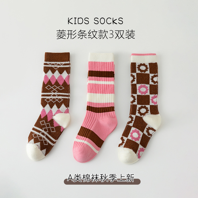 이중 바늘 이중 라인 유아용 양말 가을 겨울용 체크무늬 알파벳 패션 롱 양말