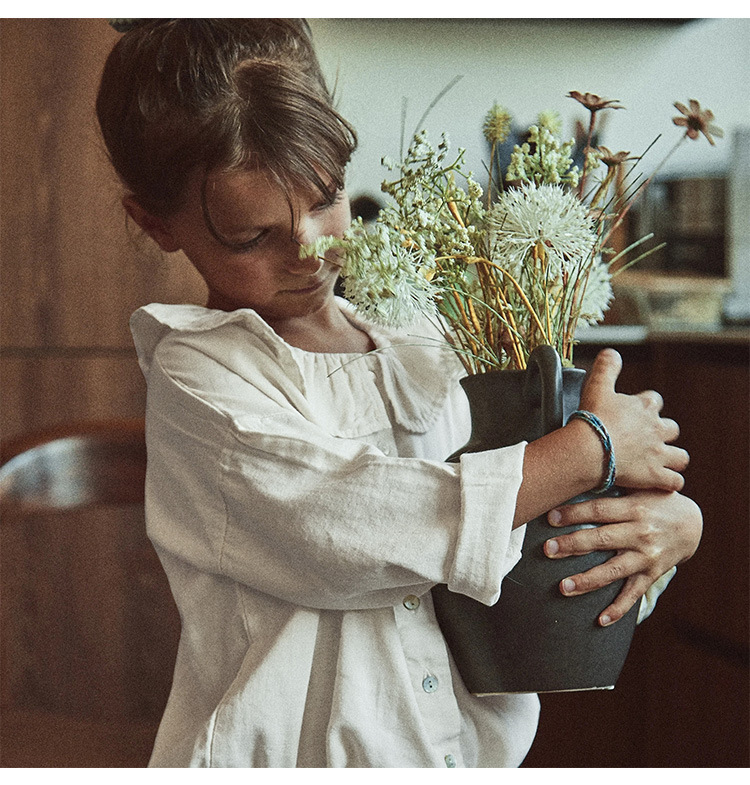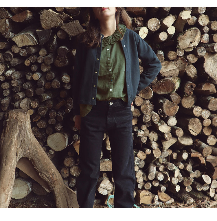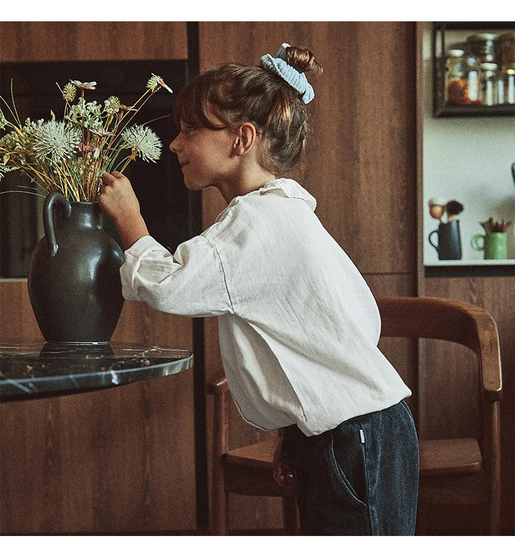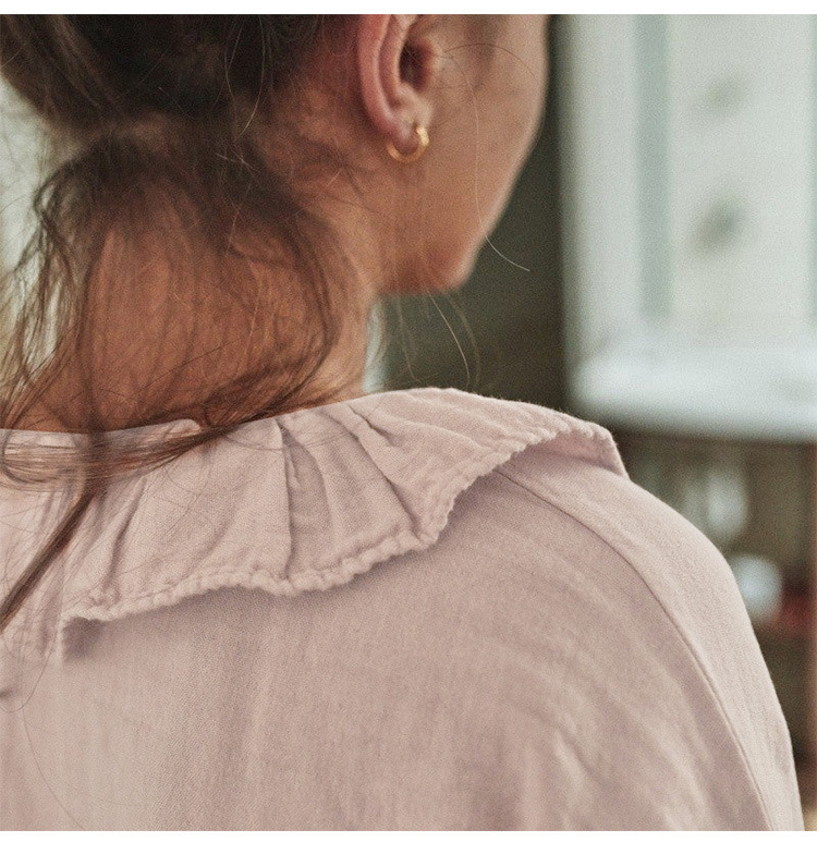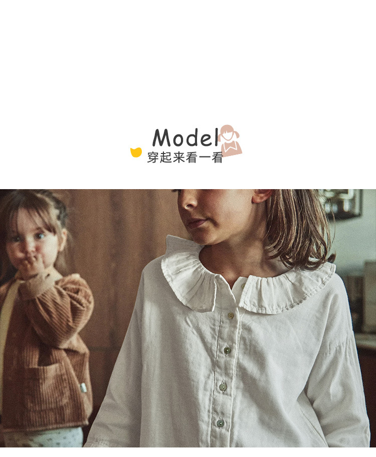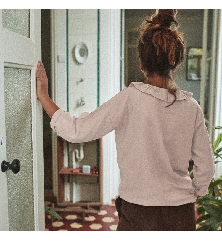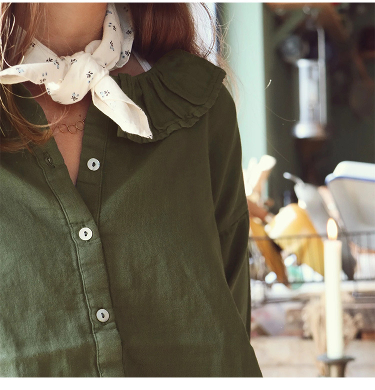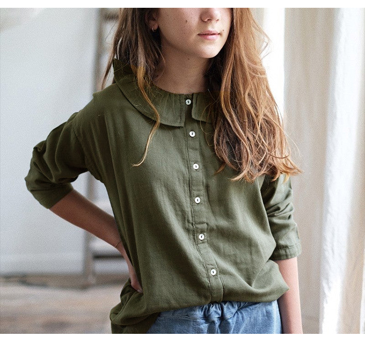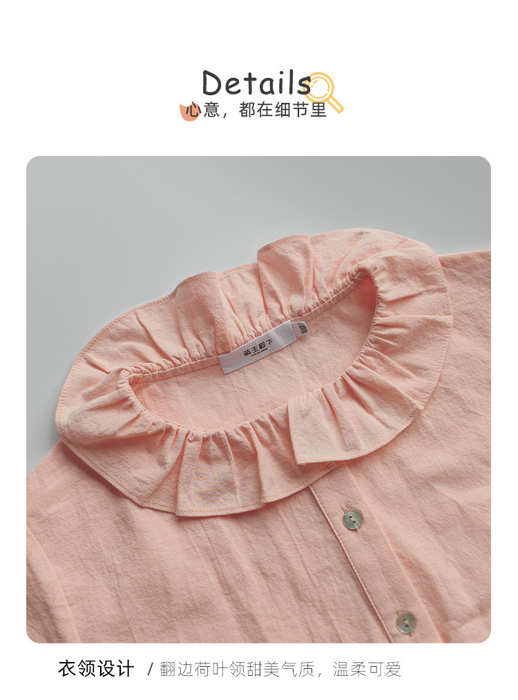 봄 순면 셔츠 귀여운 러플 칼라 디자인 캐주얼 긴 소매 셔츠 카디건 소녀 달콤한 아기 탑스토어 가기