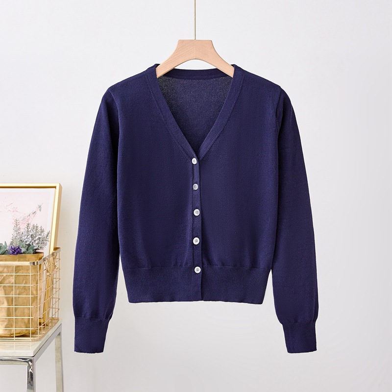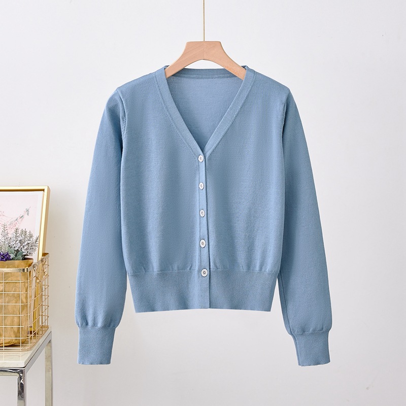 2023 가을 여성의 새로운 단색 스웨터 간단한 게으른 스타일 외부 작은 카디건 V 넥 긴 소매 숄스토어 가기
