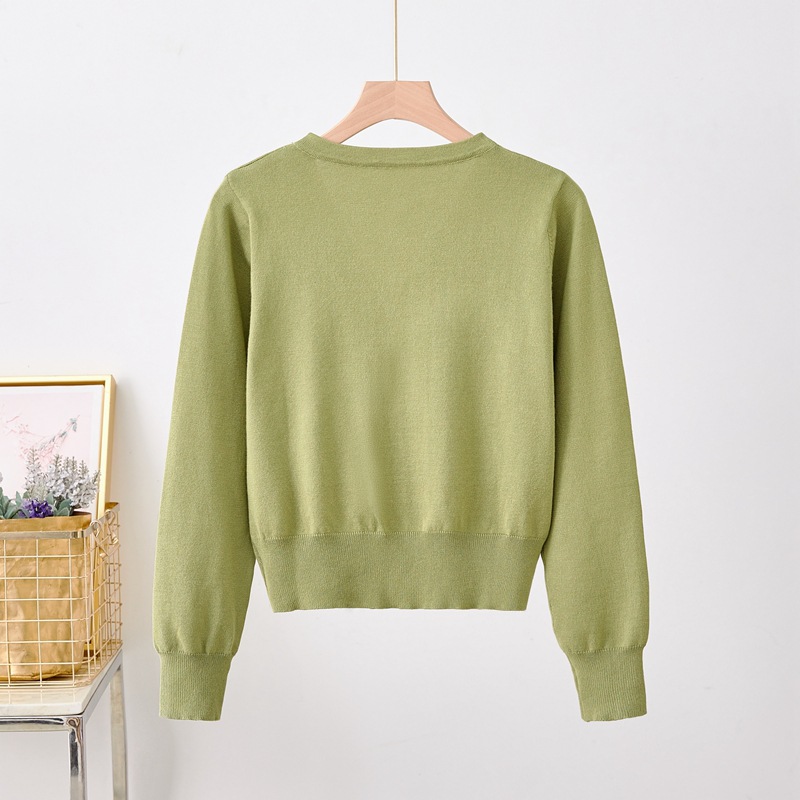 2023 가을 여성의 새로운 단색 스웨터 간단한 게으른 스타일 외부 작은 카디건 V 넥 긴 소매 숄