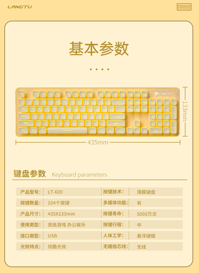 键盘尺寸:435*133*28mm
