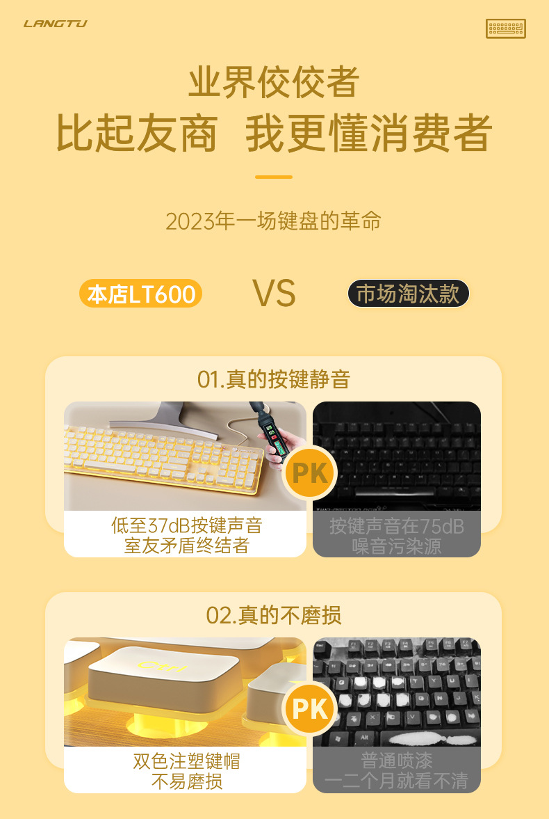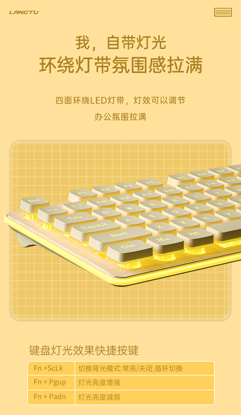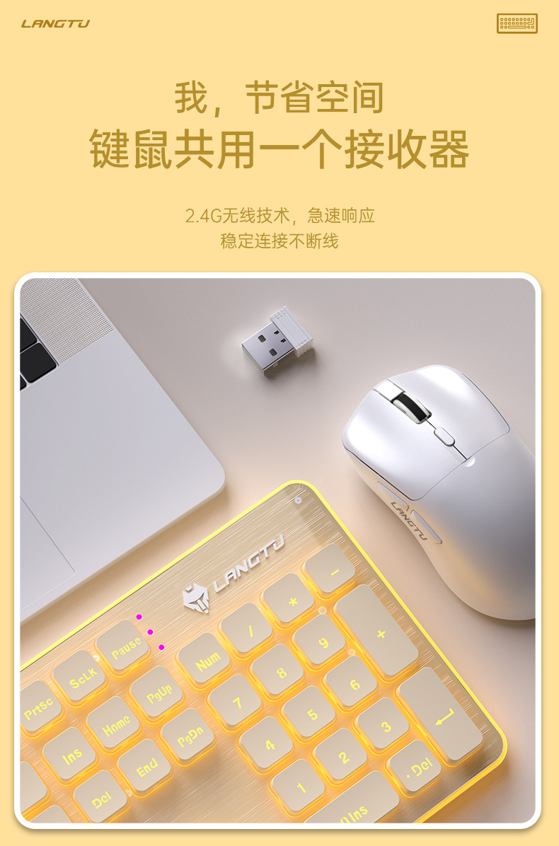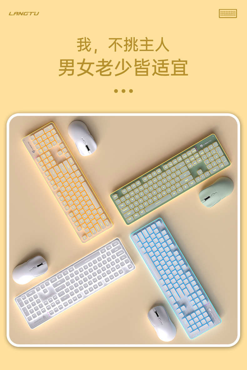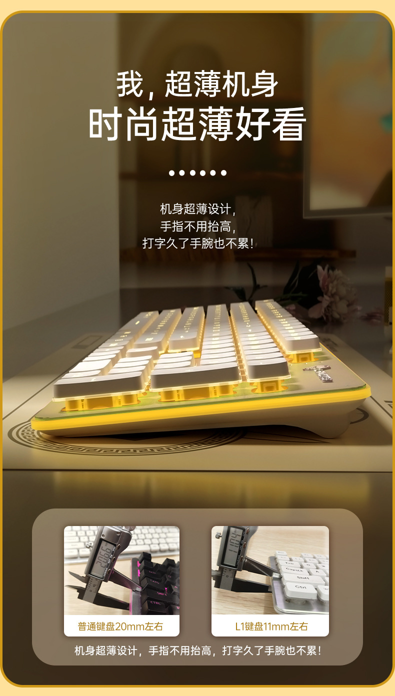 狼途L1电脑办公无线键盘 机械手感静音防水有线键盘