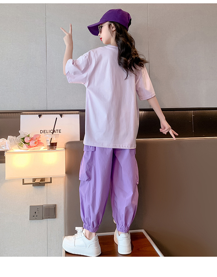 소녀의 세트 유행 바지 여름 2023 새로운 어린이 여름 얇은 얼음 도자기 면 바지 2 종 세트