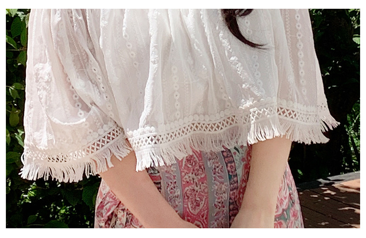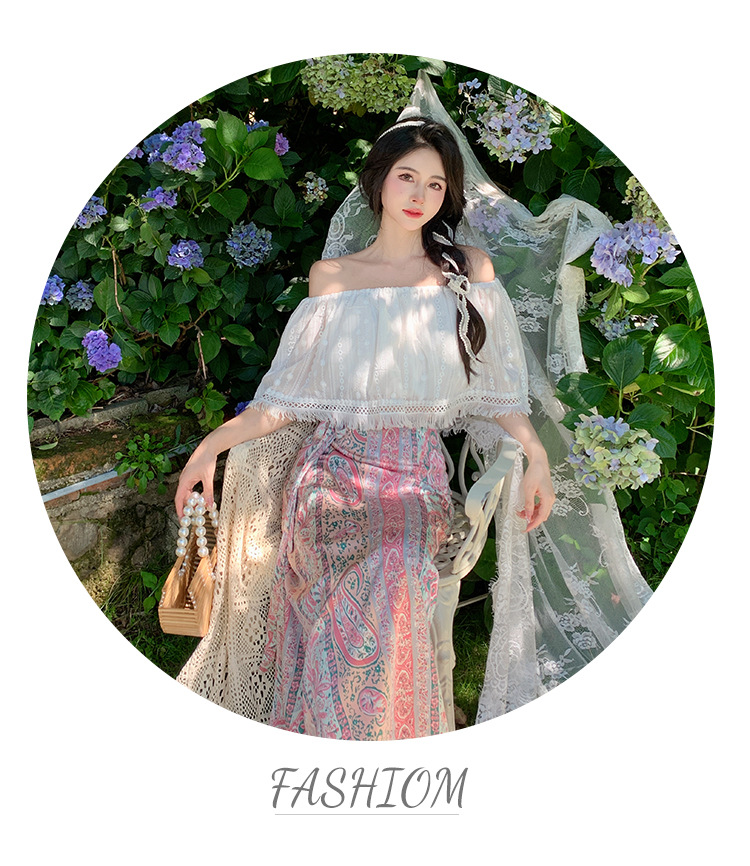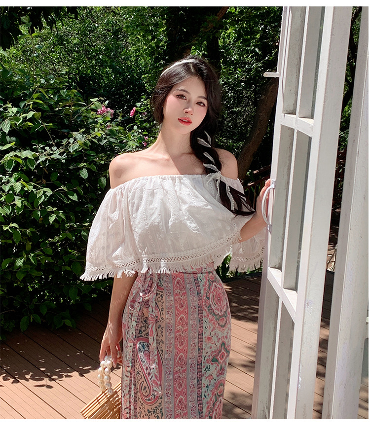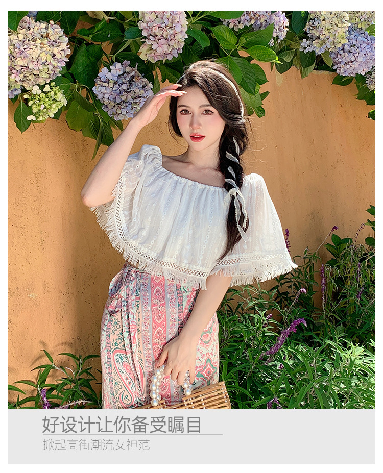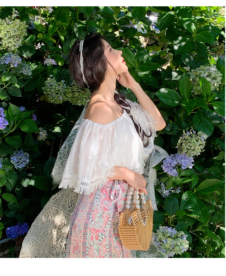프랑스 스타일 오프 숄더 쉬폰 셔츠 여성용 2023 여름 짧은 보헤미안 탑 세련된 세련된 술 셔츠