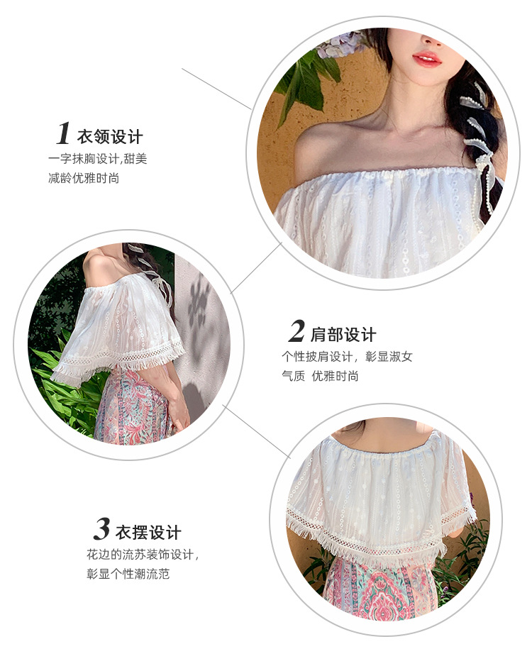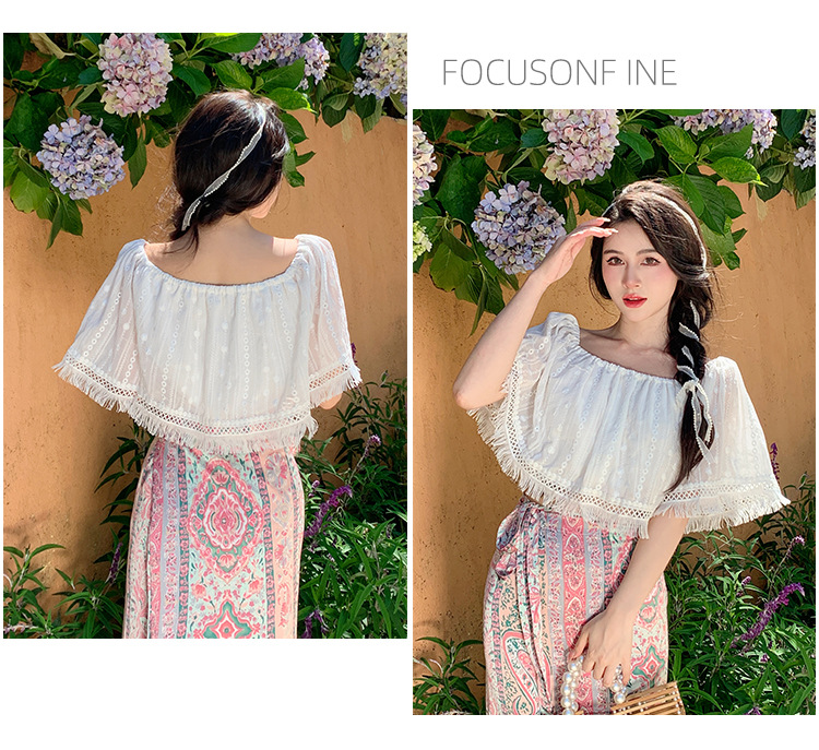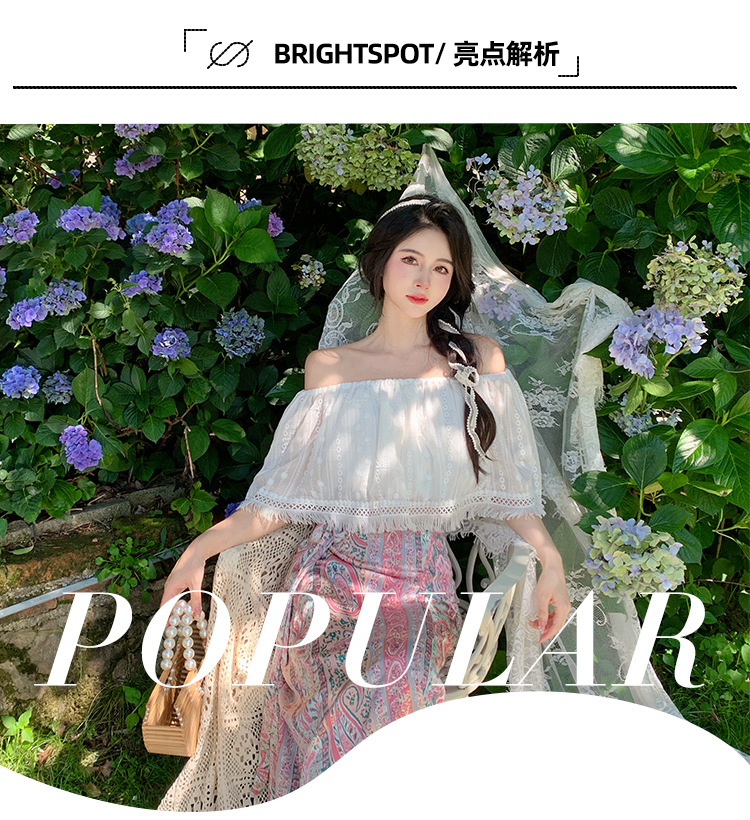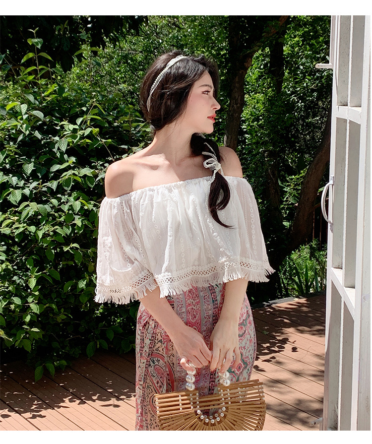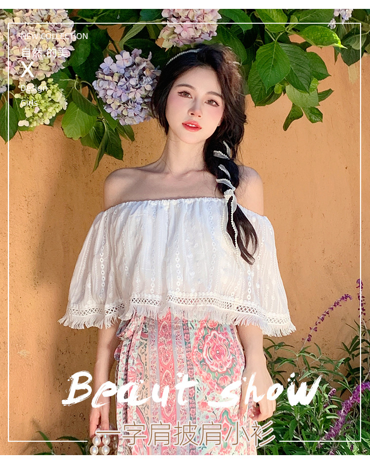 프랑스 스타일 오프 숄더 쉬폰 셔츠 여성용 2023 여름 짧은 보헤미안 탑 세련된 세련된 술 셔츠스토어 가기