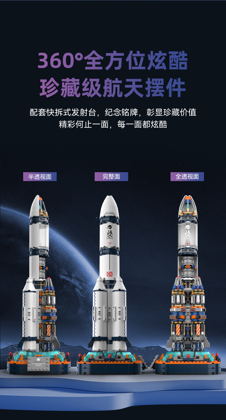 JAKI Jiaqi 빌딩 블록 공간 새벽 V 로켓 모델 작은 입자 어린이 장난감 소년과 소녀 생일 선물스토어 가기